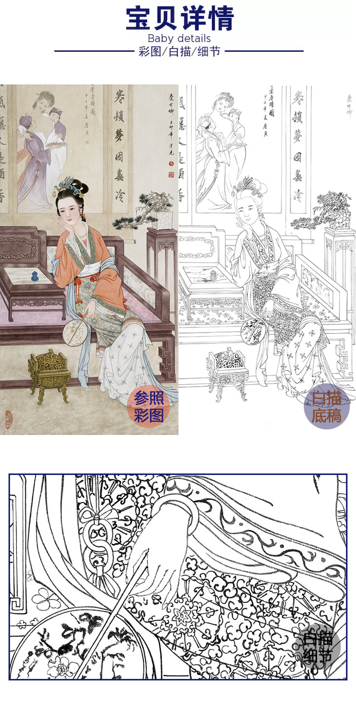 白描底稿-金陵十二钗红楼传统人物秦可卿-JD12
