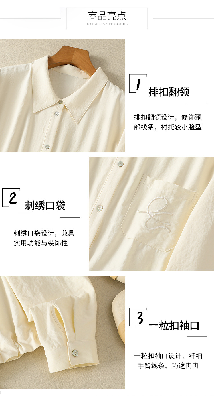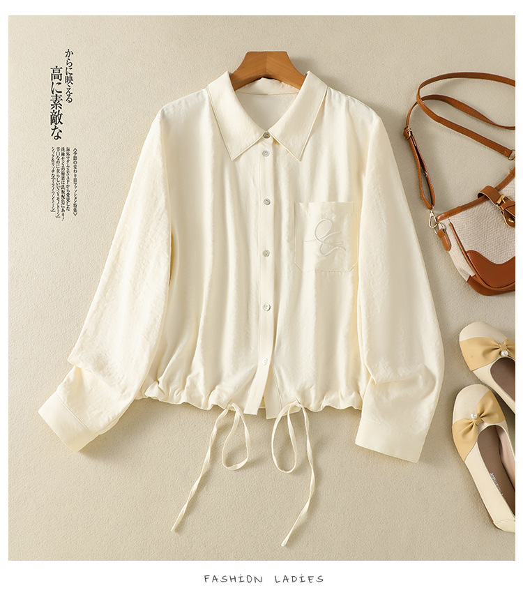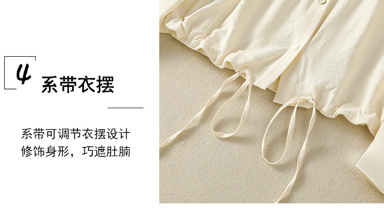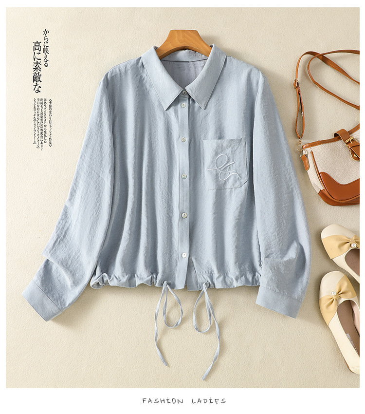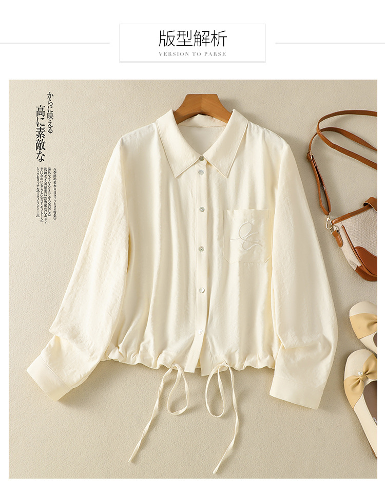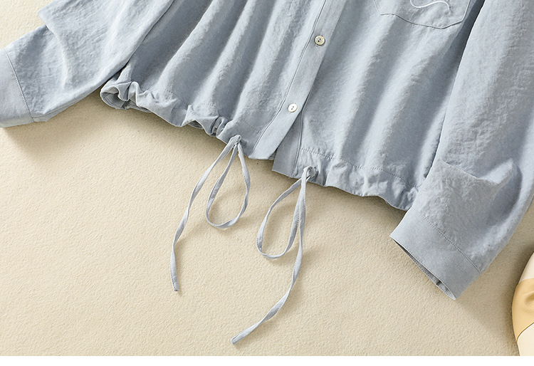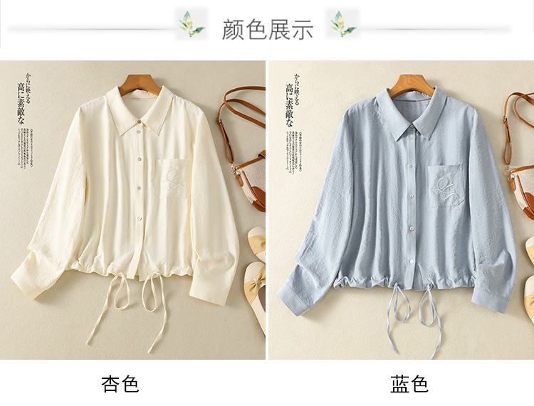 B108-6287秋季大码女装 奶皮衬衫·可调节抽绳宽松刺绣翻领上衣外套女
