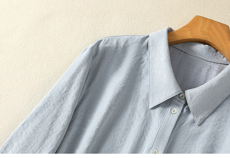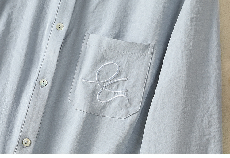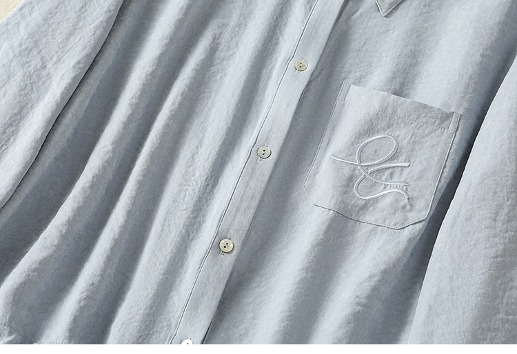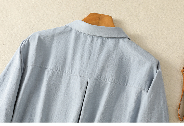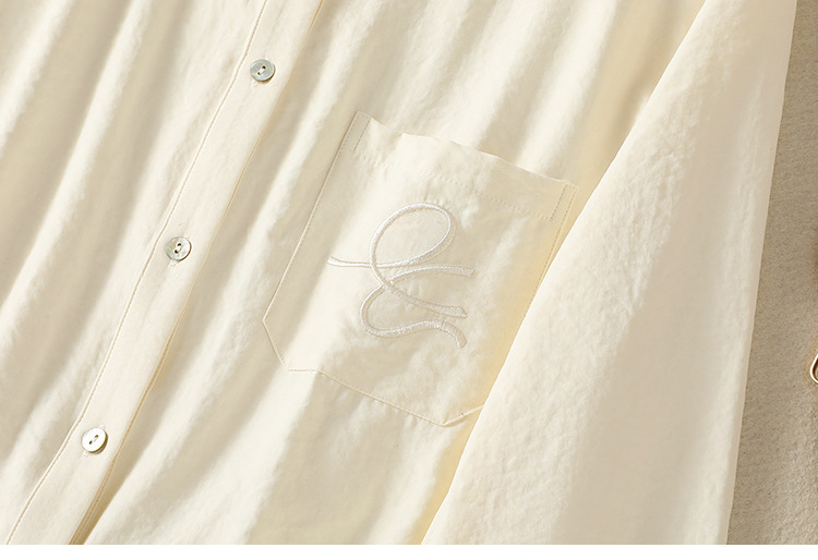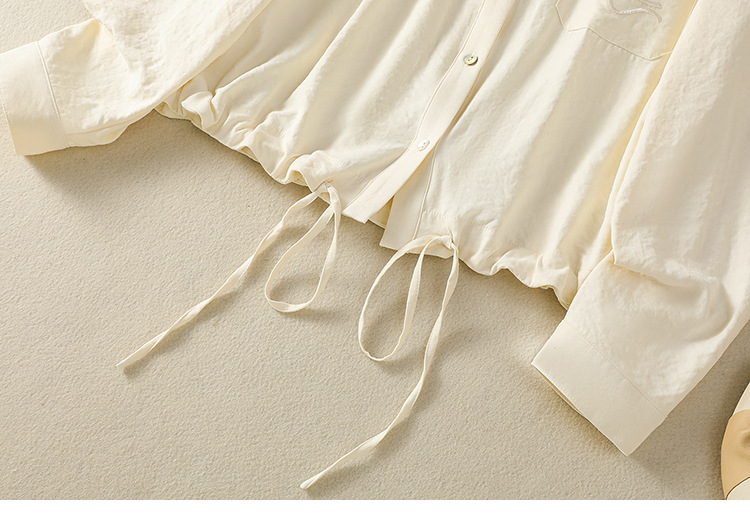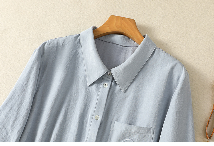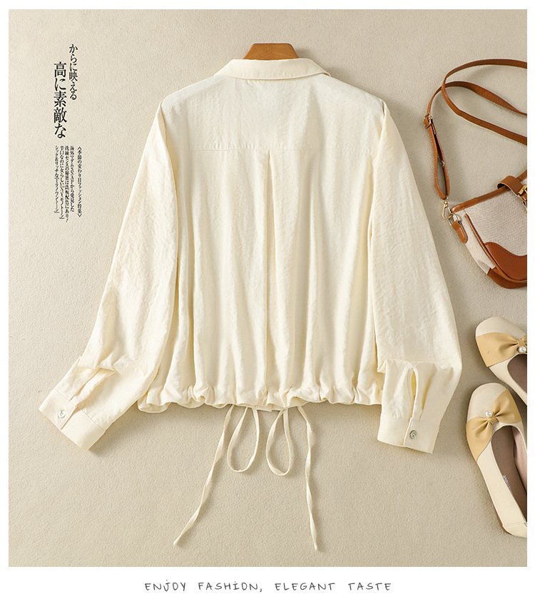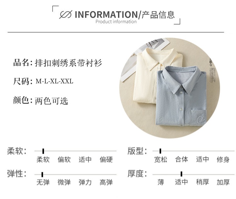 B108-6287秋季大码女装 奶皮衬衫·可调节抽绳宽松刺绣翻领上衣外套女