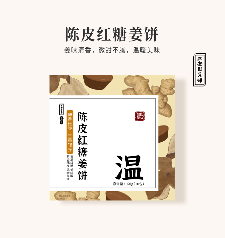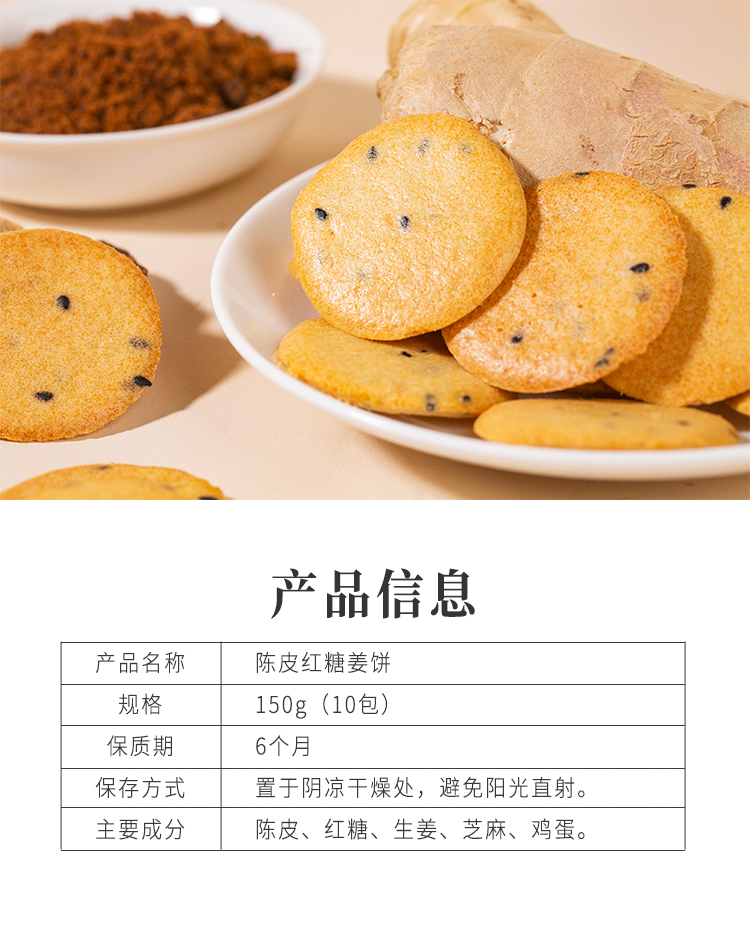 正安 陈皮红糖姜饼 薄香松脆微甜不腻 低温烘焙拒绝上火添加剂 元气温暖驱寒女性经期健康出游茶点零食饼干 红糖姜饼*150克(10包)