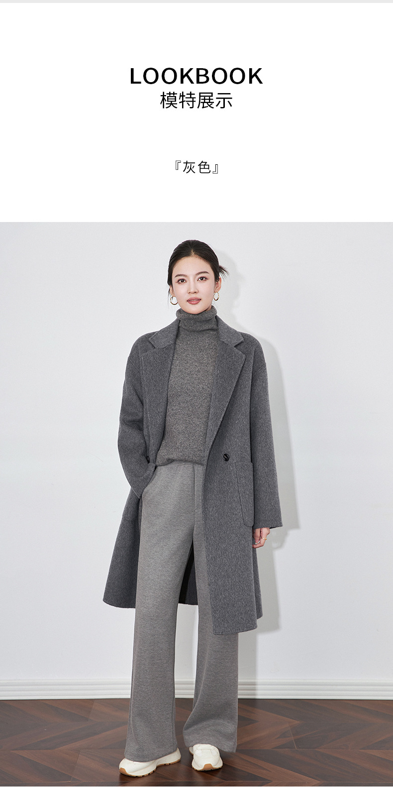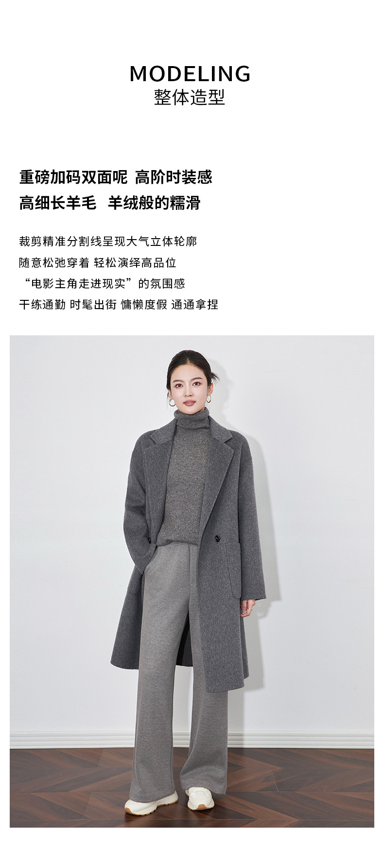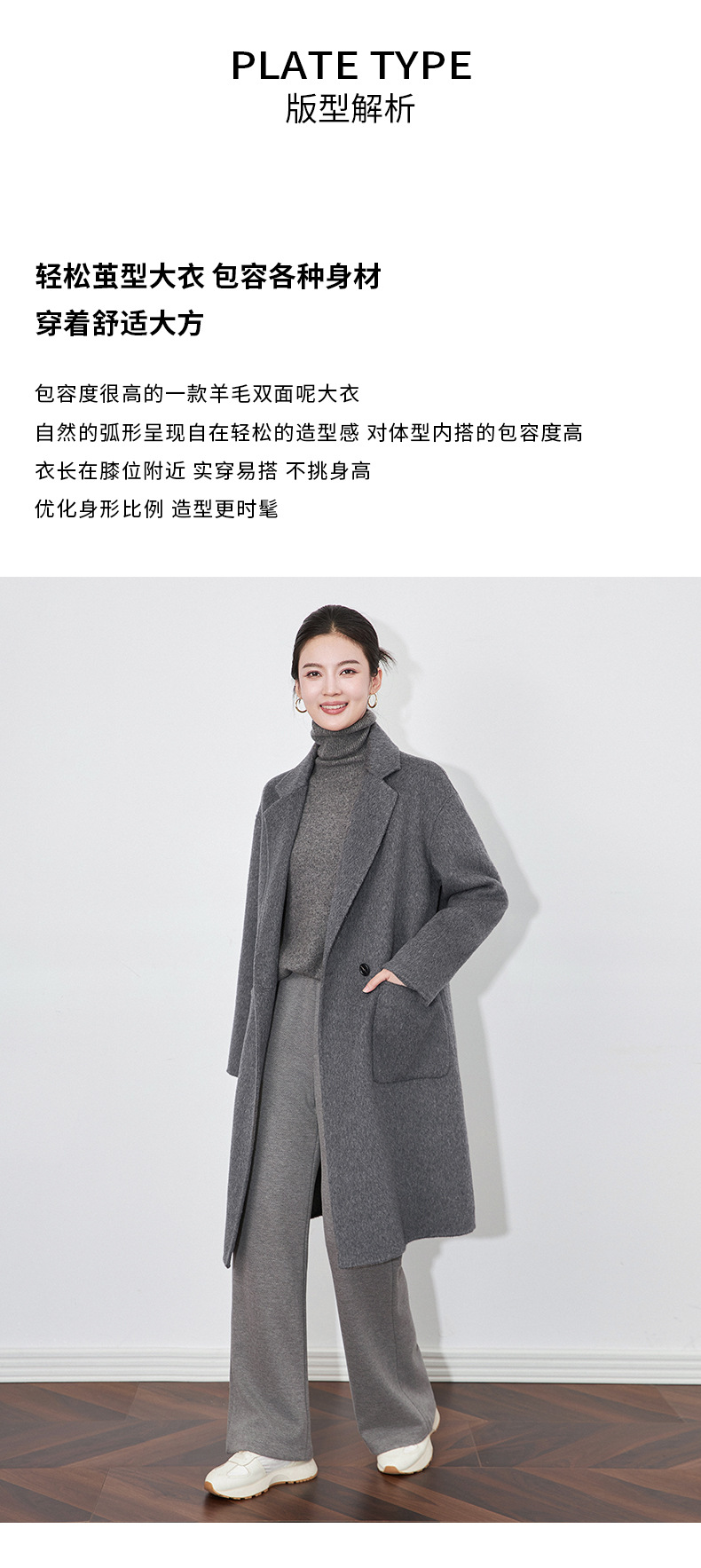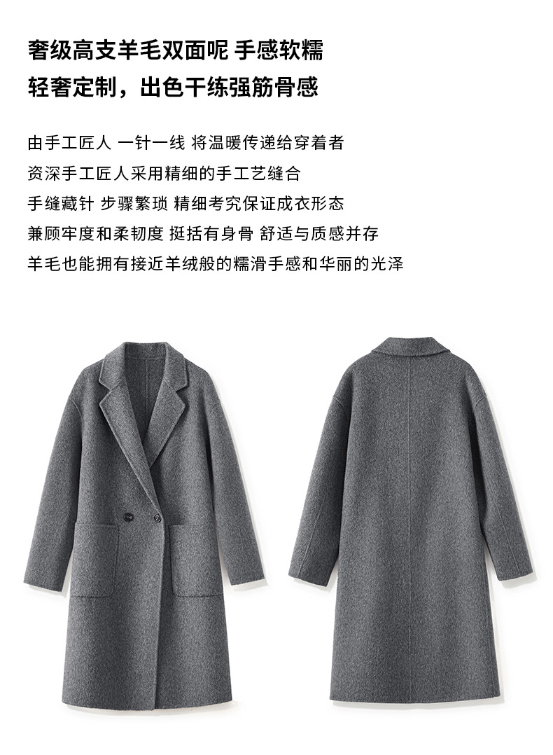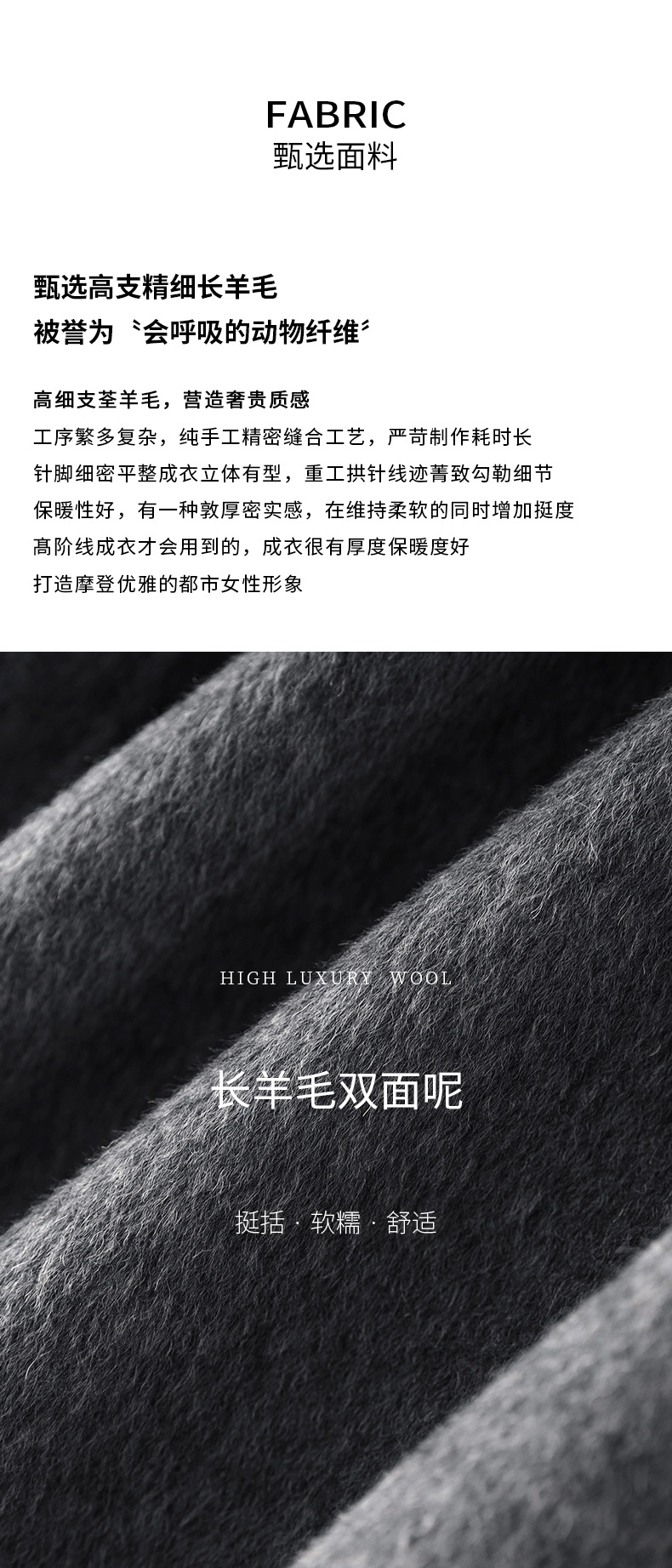 【高货wl】全新升级【铂金会员588/天猫789/差价201】(03116) 洛诗琳精简职场羊毛双面呢外套宽松西装领中长款毛呢大衣