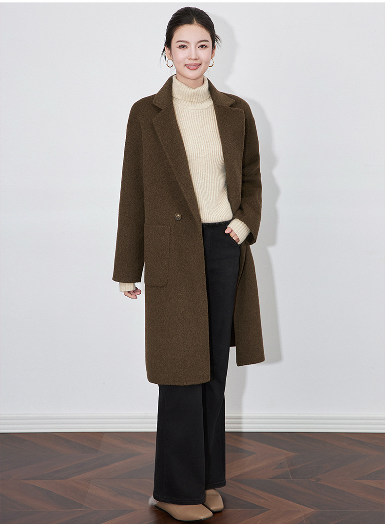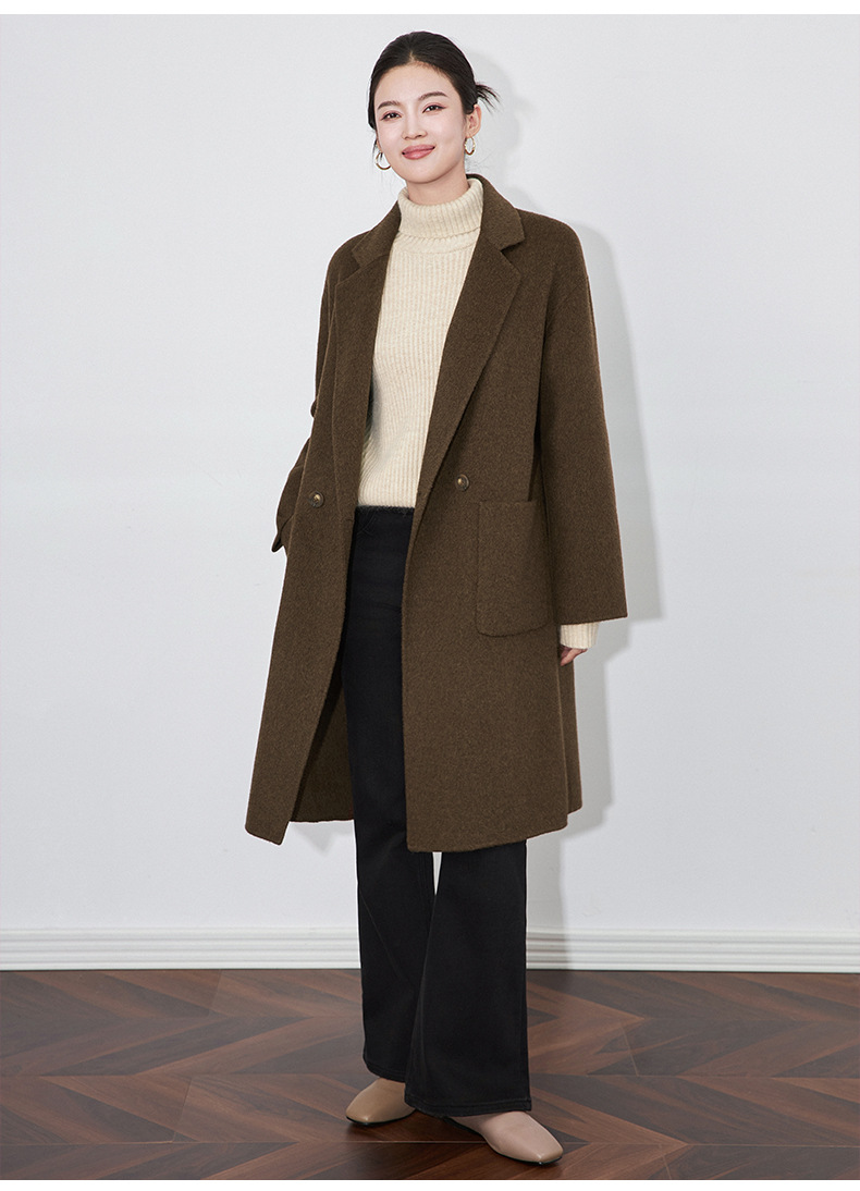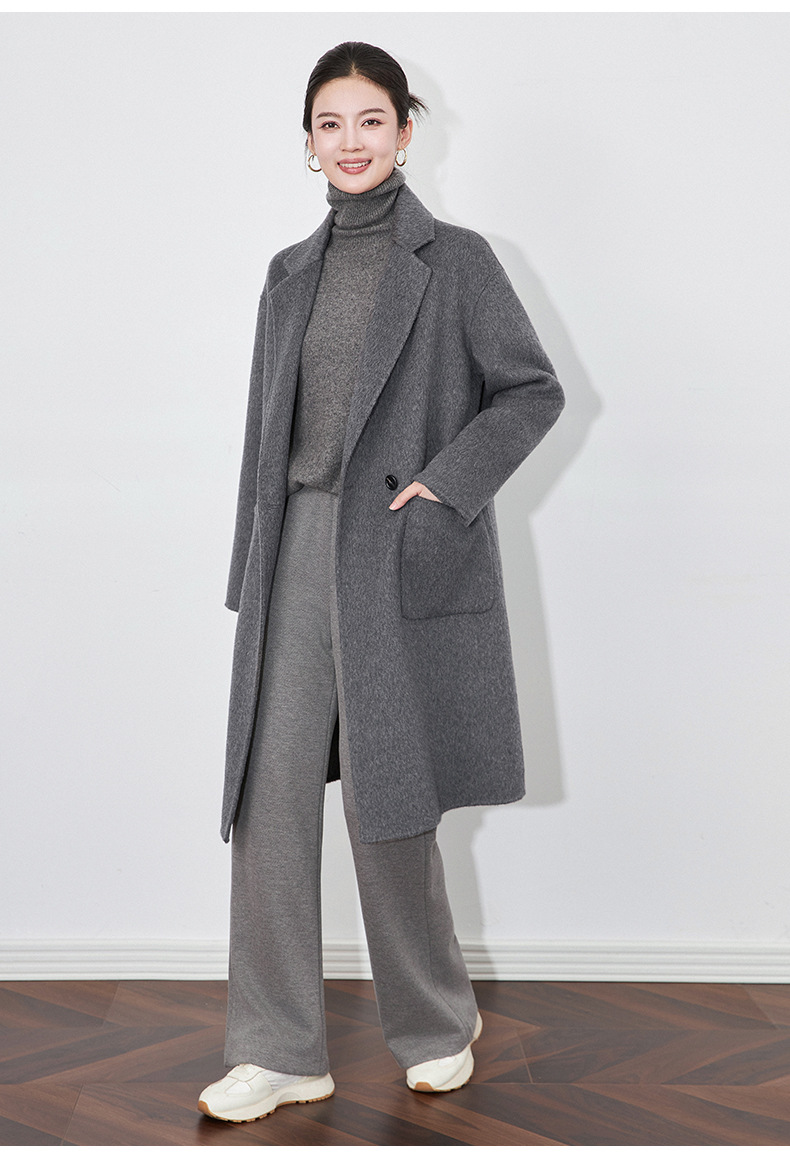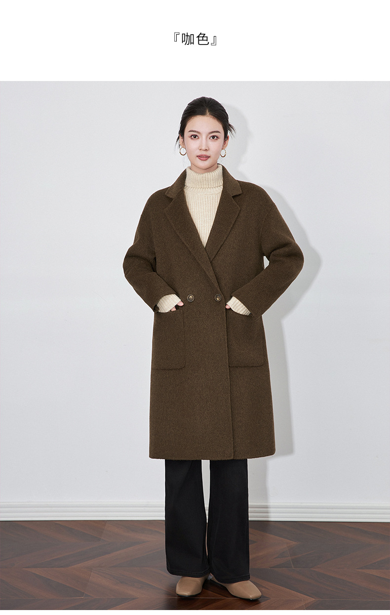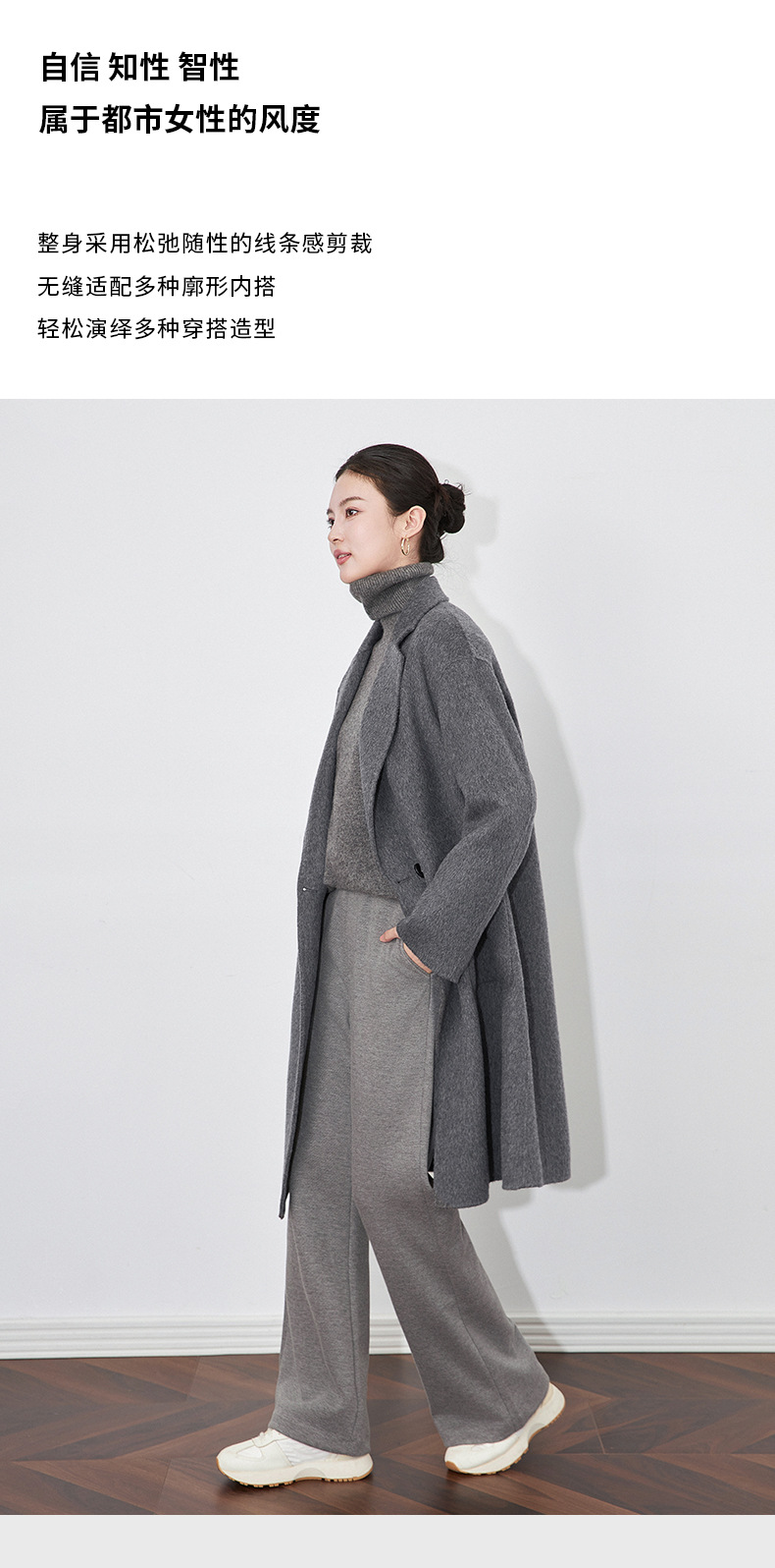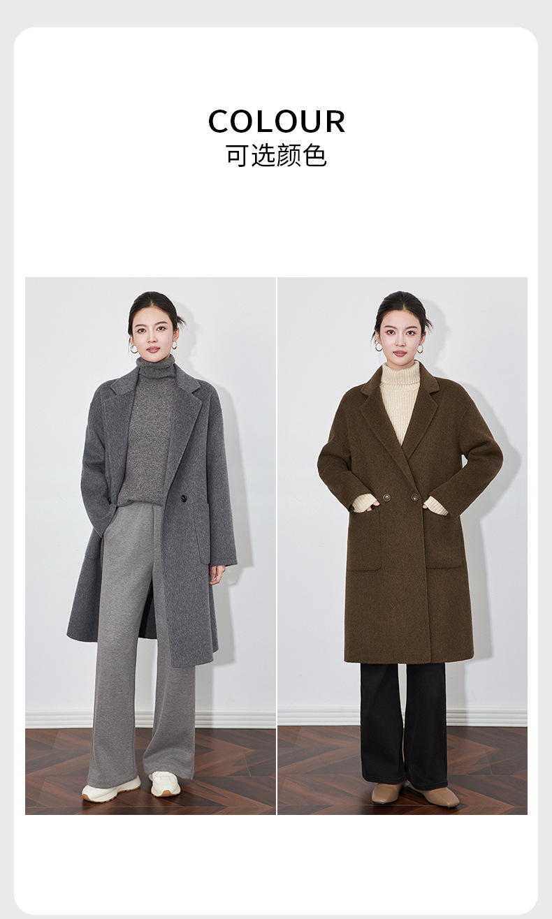 【高货wl】全新升级【铂金会员588/天猫789/差价201】(03116) 洛诗琳精简职场羊毛双面呢外套宽松西装领中长款毛呢大衣