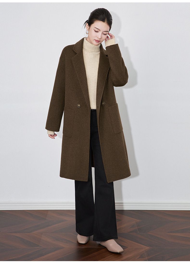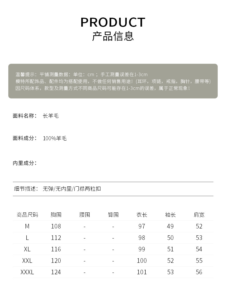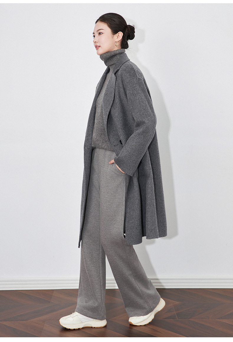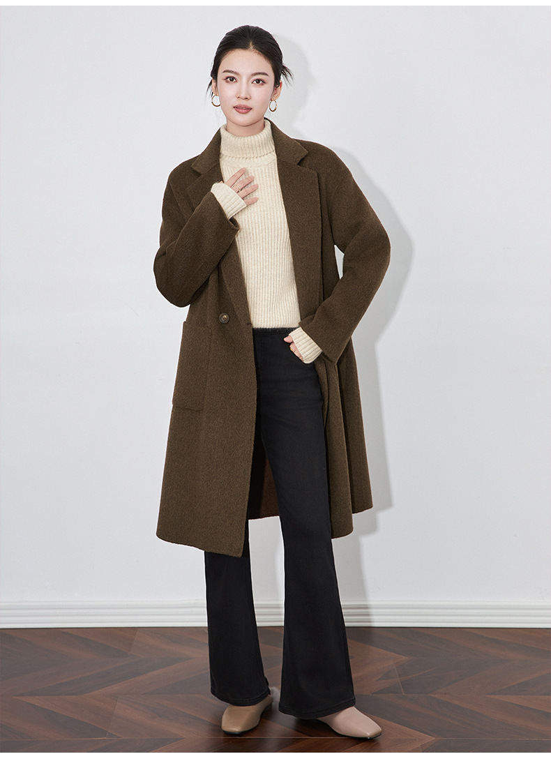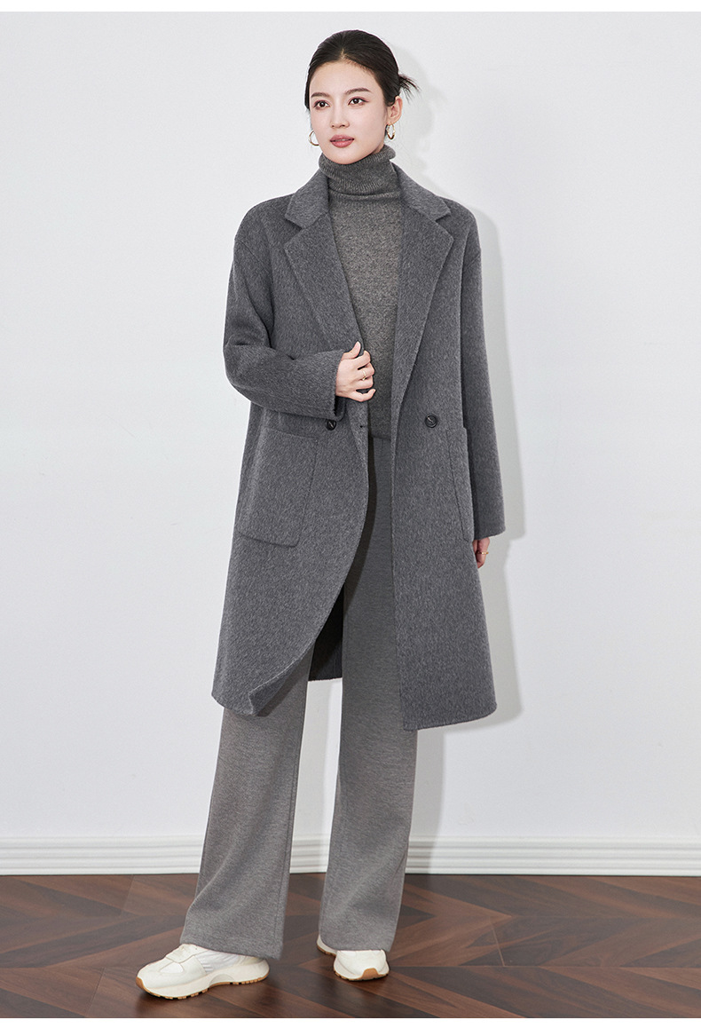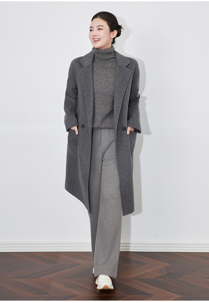 【高货wl】全新升级【铂金会员588/天猫789/差价201】(03116) 洛诗琳精简职场羊毛双面呢外套宽松西装领中长款毛呢大衣