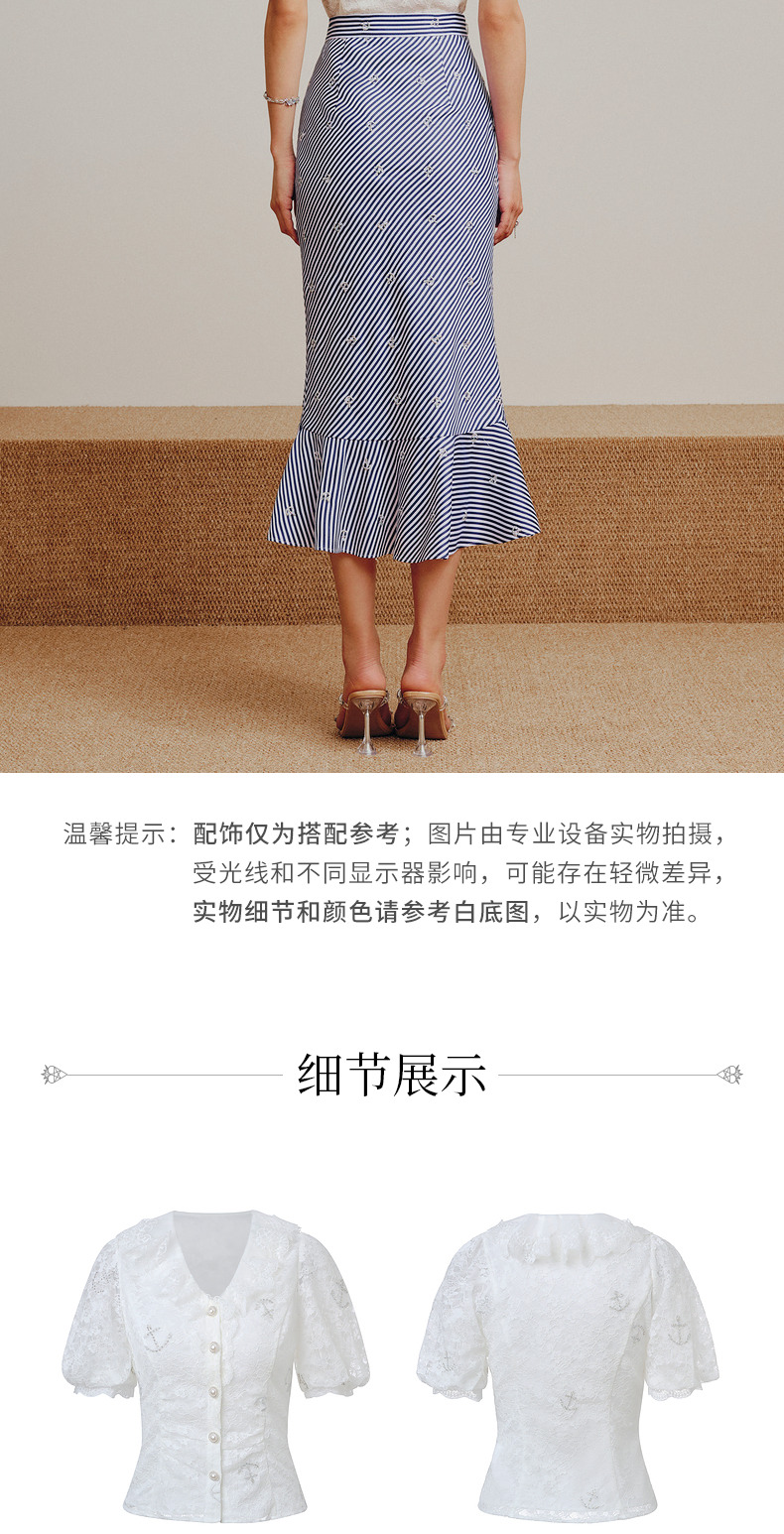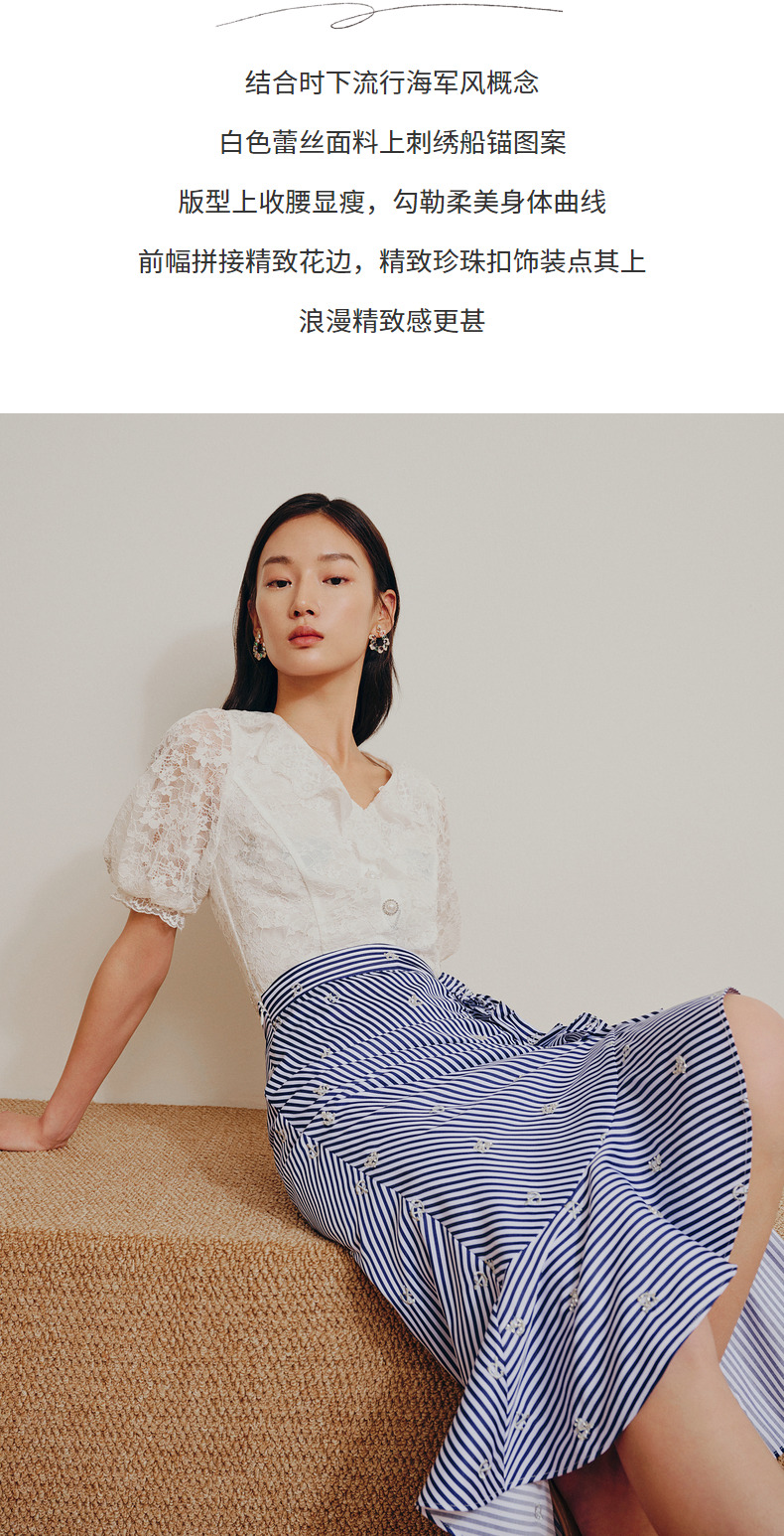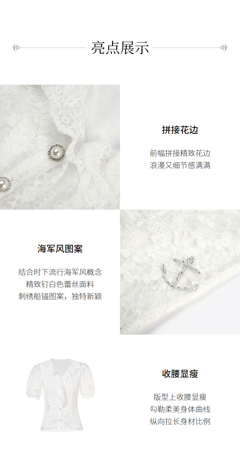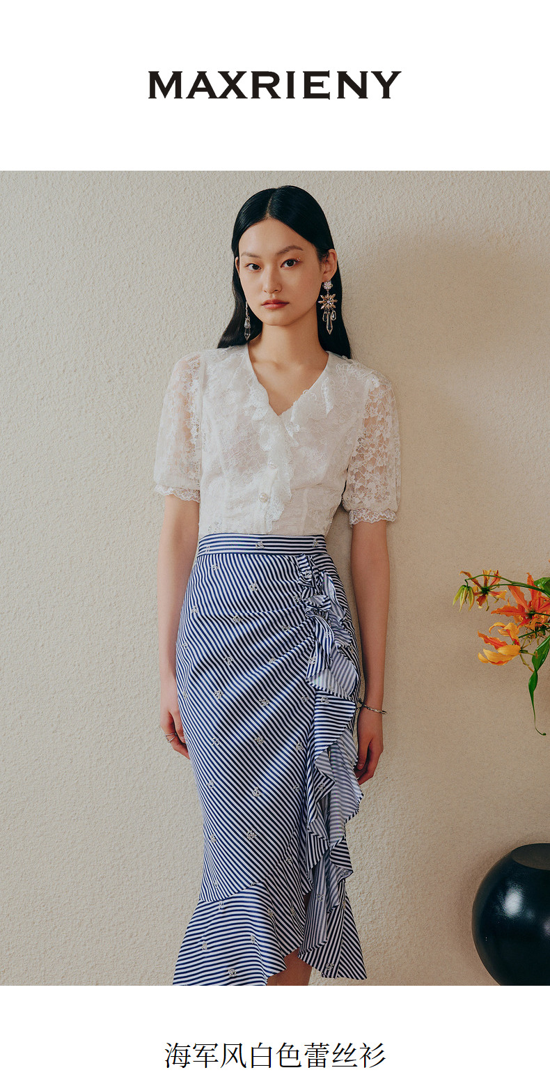 MAXRIENY海军风蕾丝雪纺衫夏季*浪漫感上衣女(货号:MC88TP361)