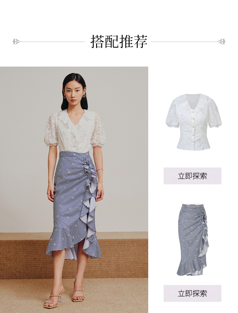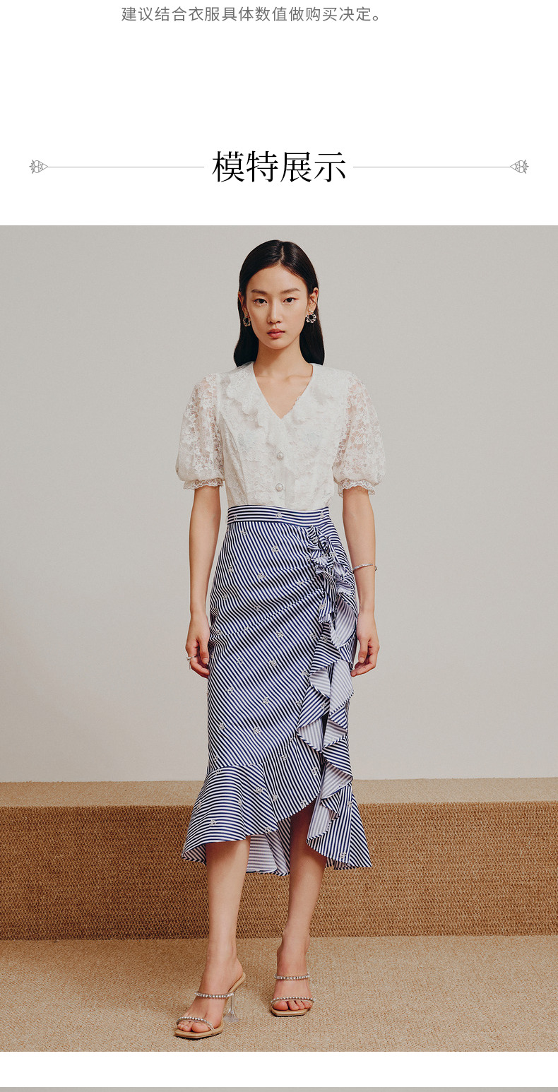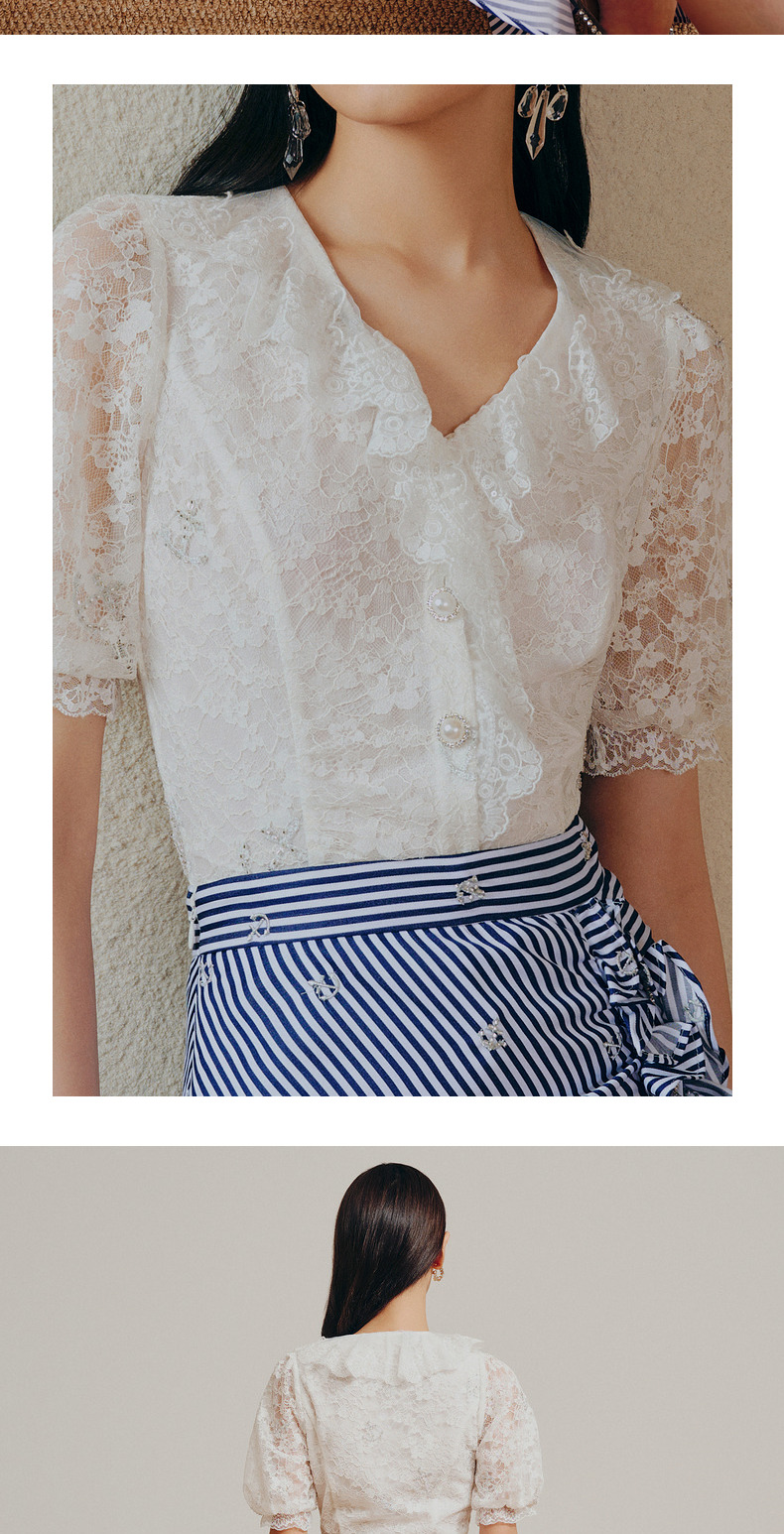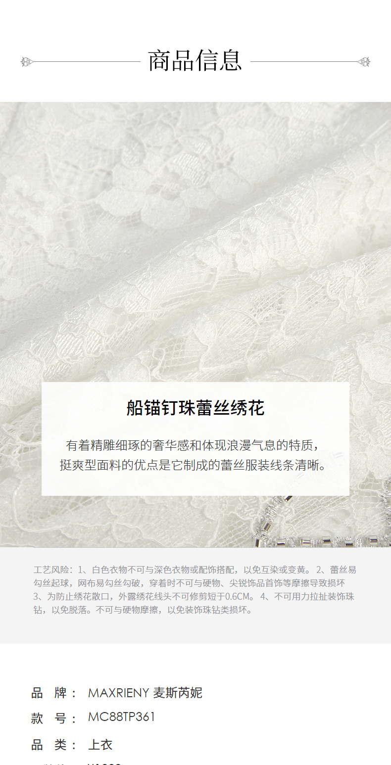 MAXRIENY海军风蕾丝雪纺衫夏季*浪漫感上衣女(货号:MC88TP361)