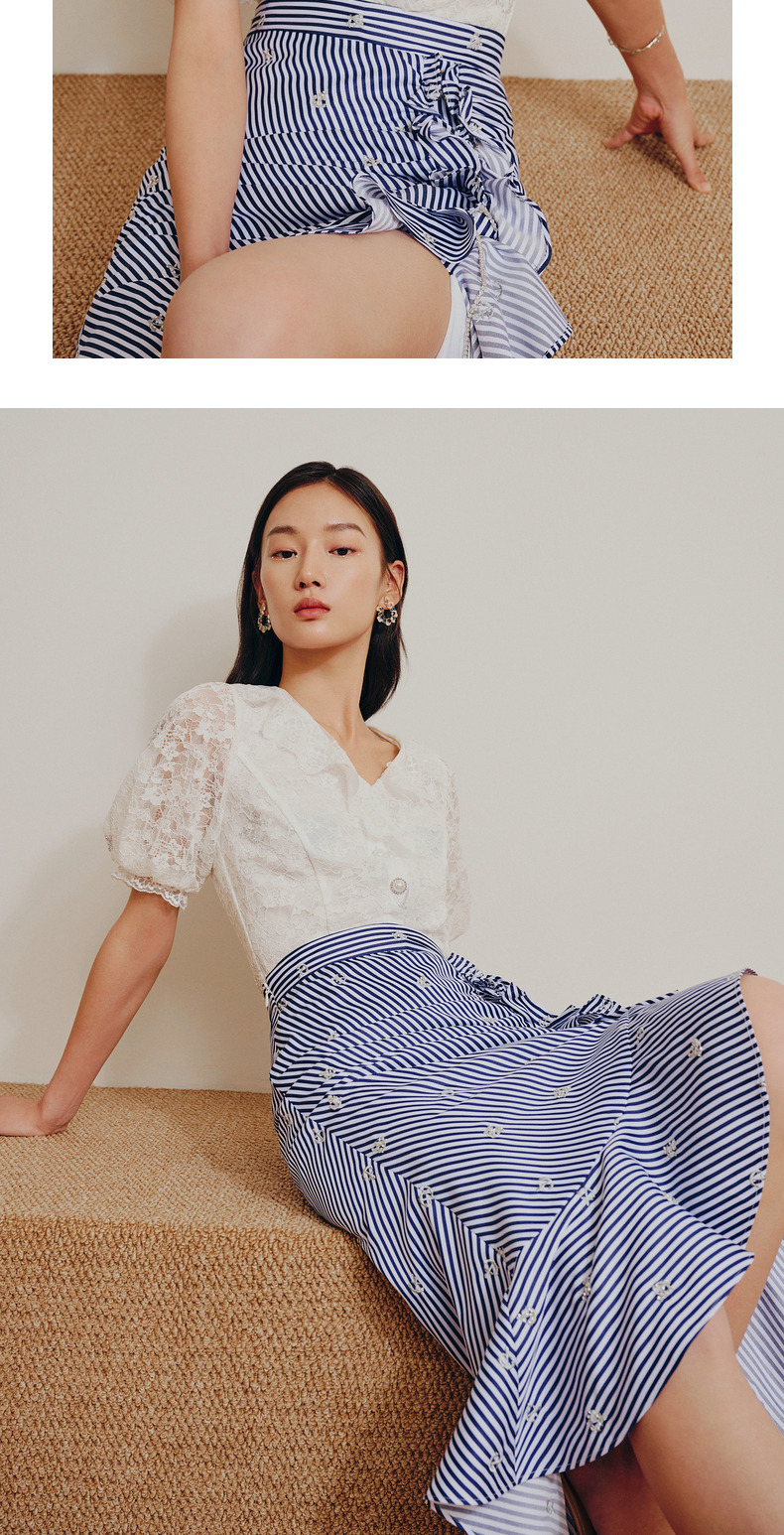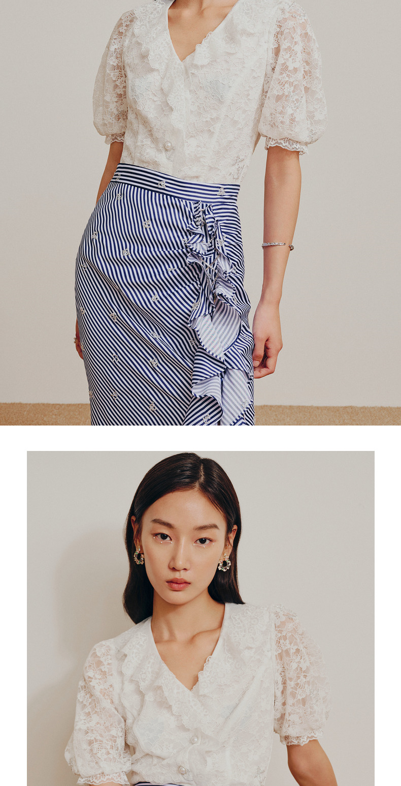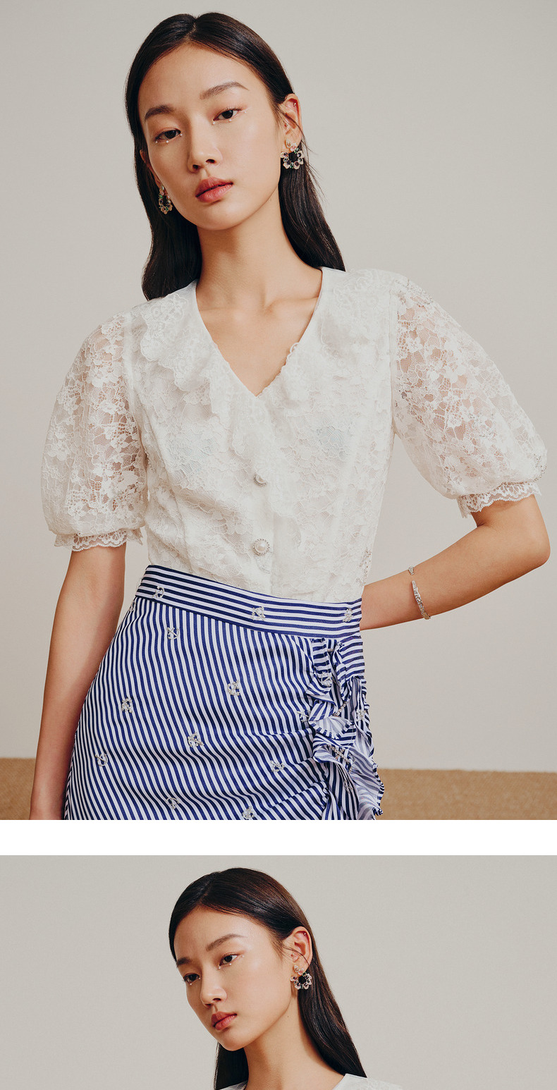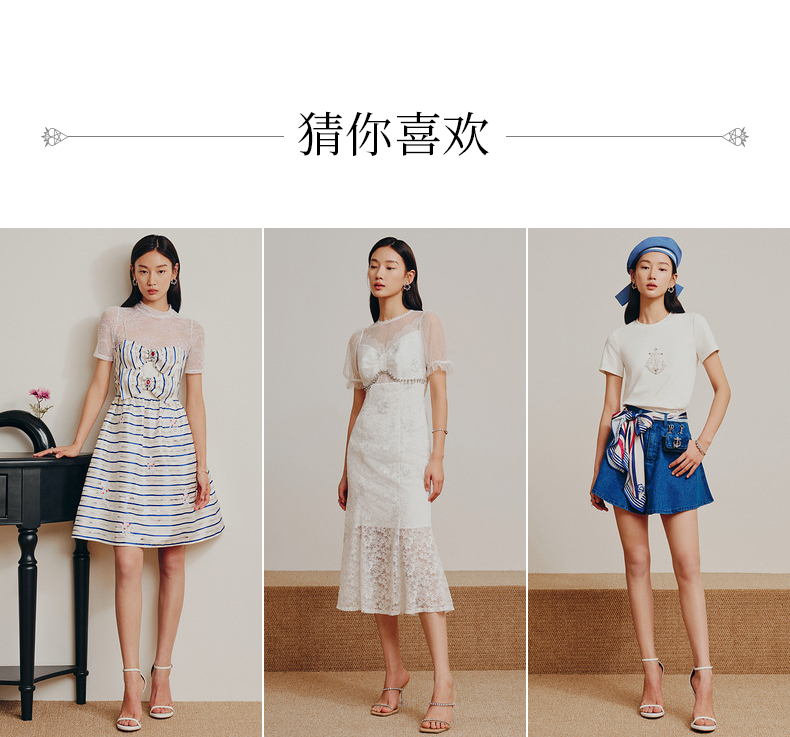 MAXRIENY海军风蕾丝雪纺衫夏季*浪漫感上衣女(货号:MC88TP361)