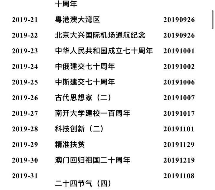 包括2019年发行过的所有邮票