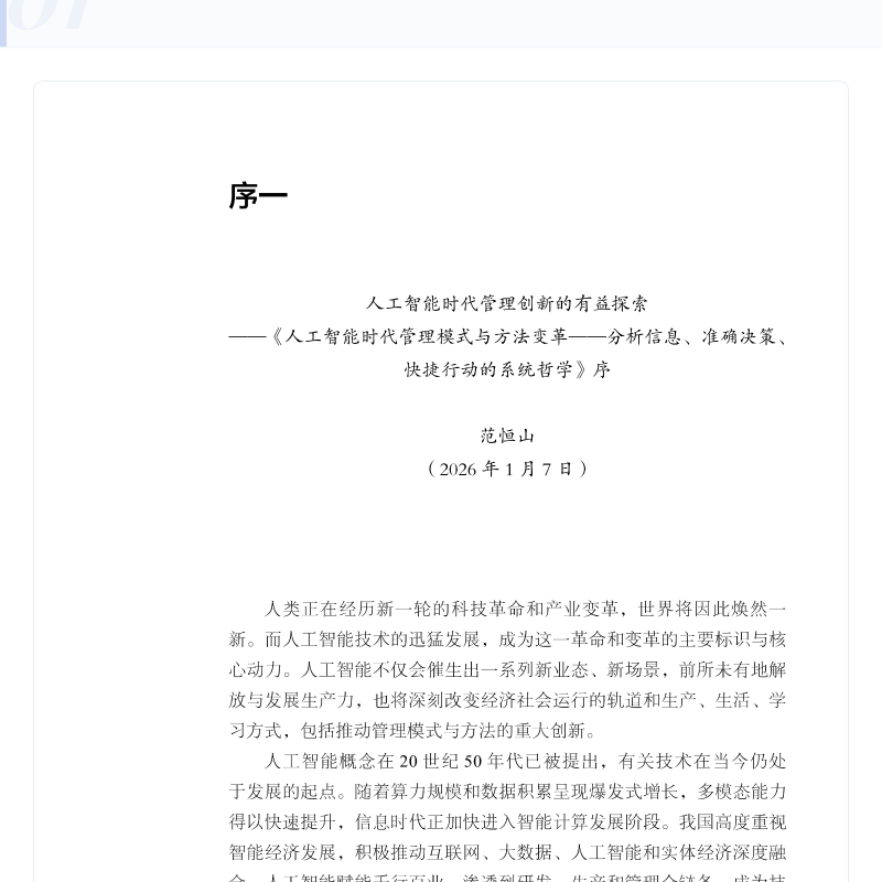 新书首发 | 人工智能时代管理模式与方法变革——分析信息、准确决策、快捷行动的系统哲学(本书预计2026年2月5日发出)
