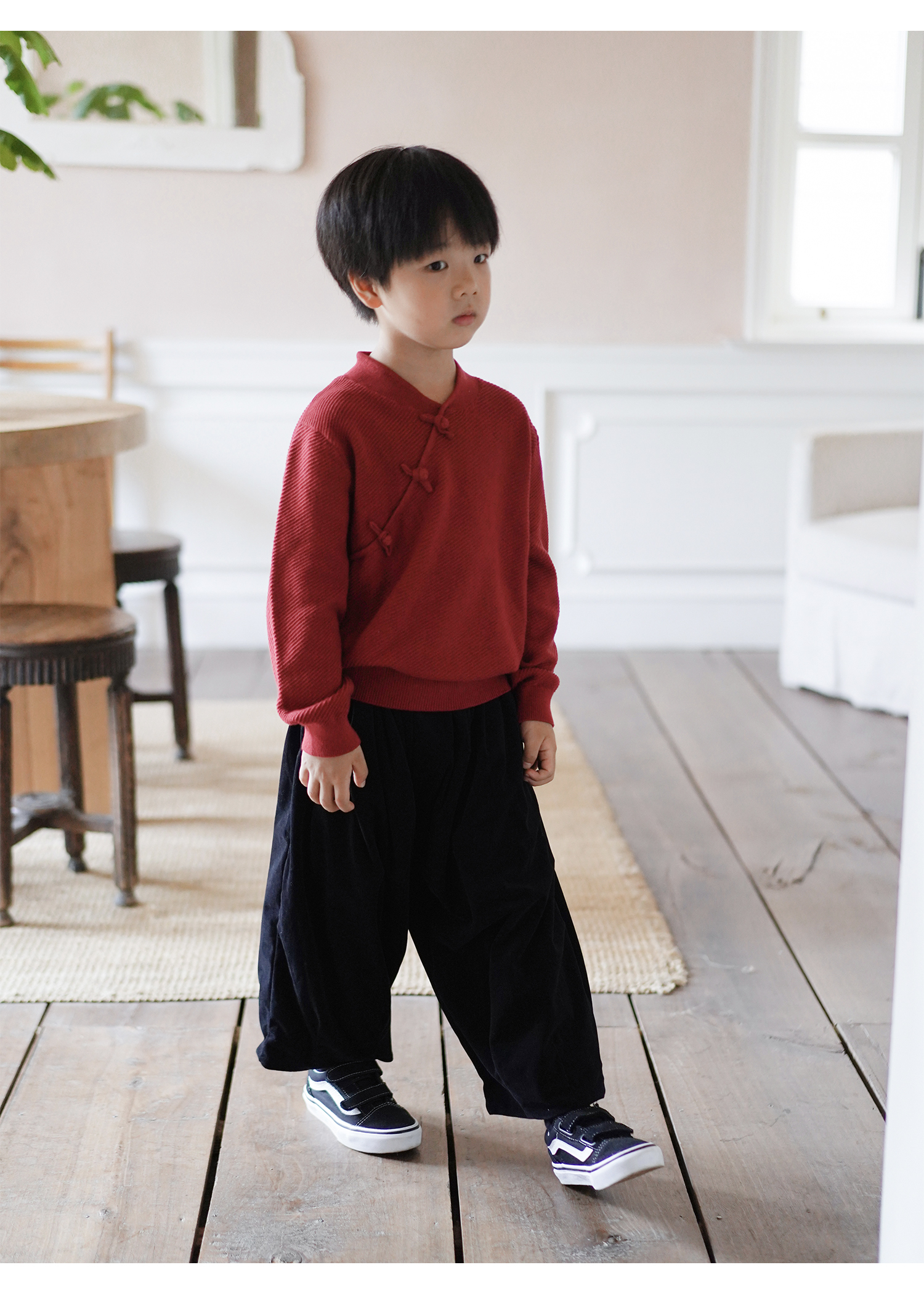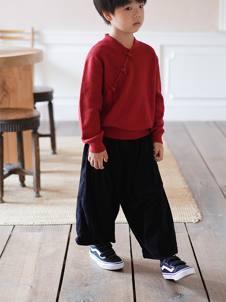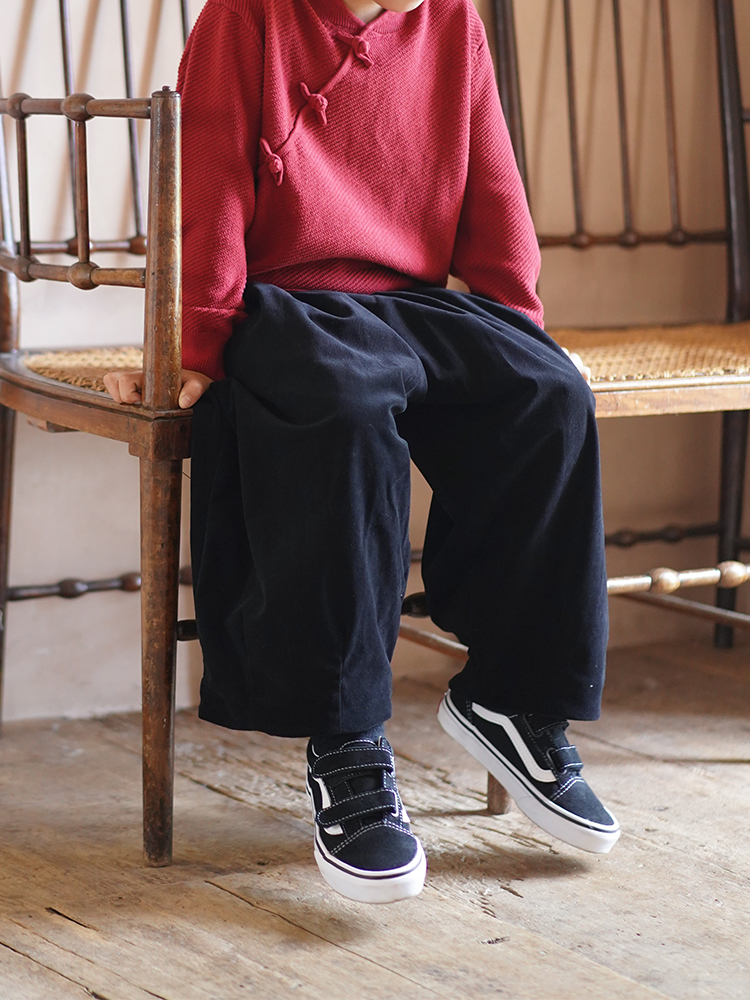 【东济堂衣养】原创中性灯芯绒气球裤男童女童保暖 黑色灯芯绒气球裤