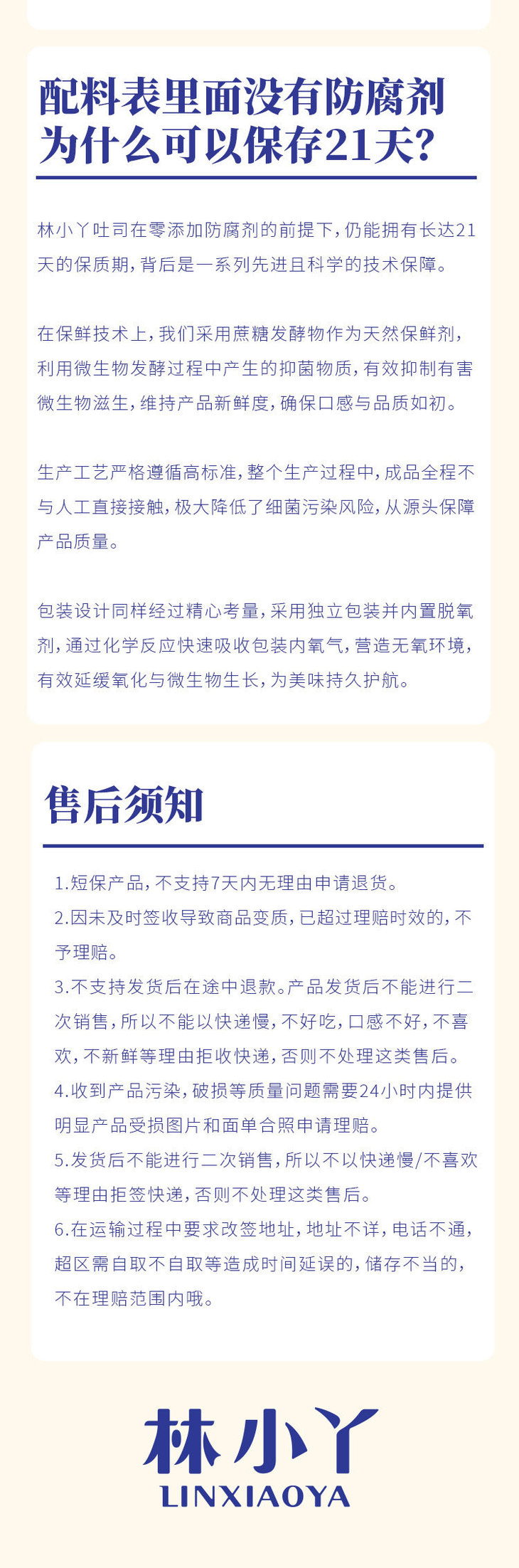 ③短保产品不支持退货退款,收到货后有任何质量问题,在24小时之内拍照联系客服进行售后理赔(提供快递单+包装箱+坏果图),售后方式按比例赔付(赔付金额=付款金额/产品总个数*坏果个数)。感谢您的信任,祝您购物愉快!