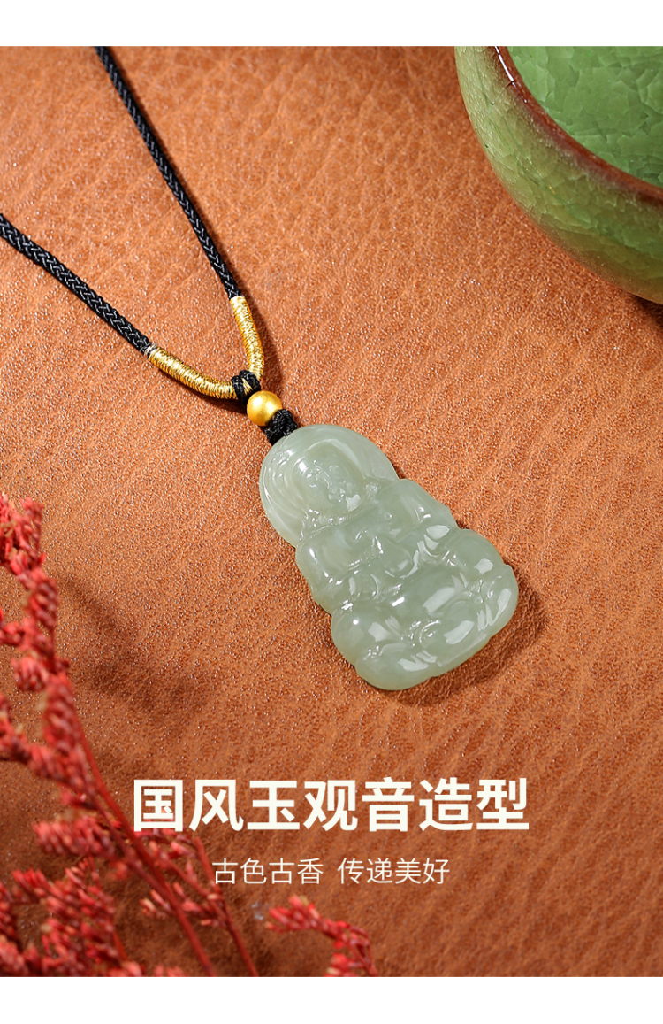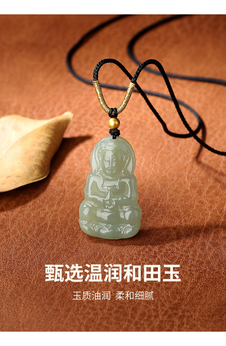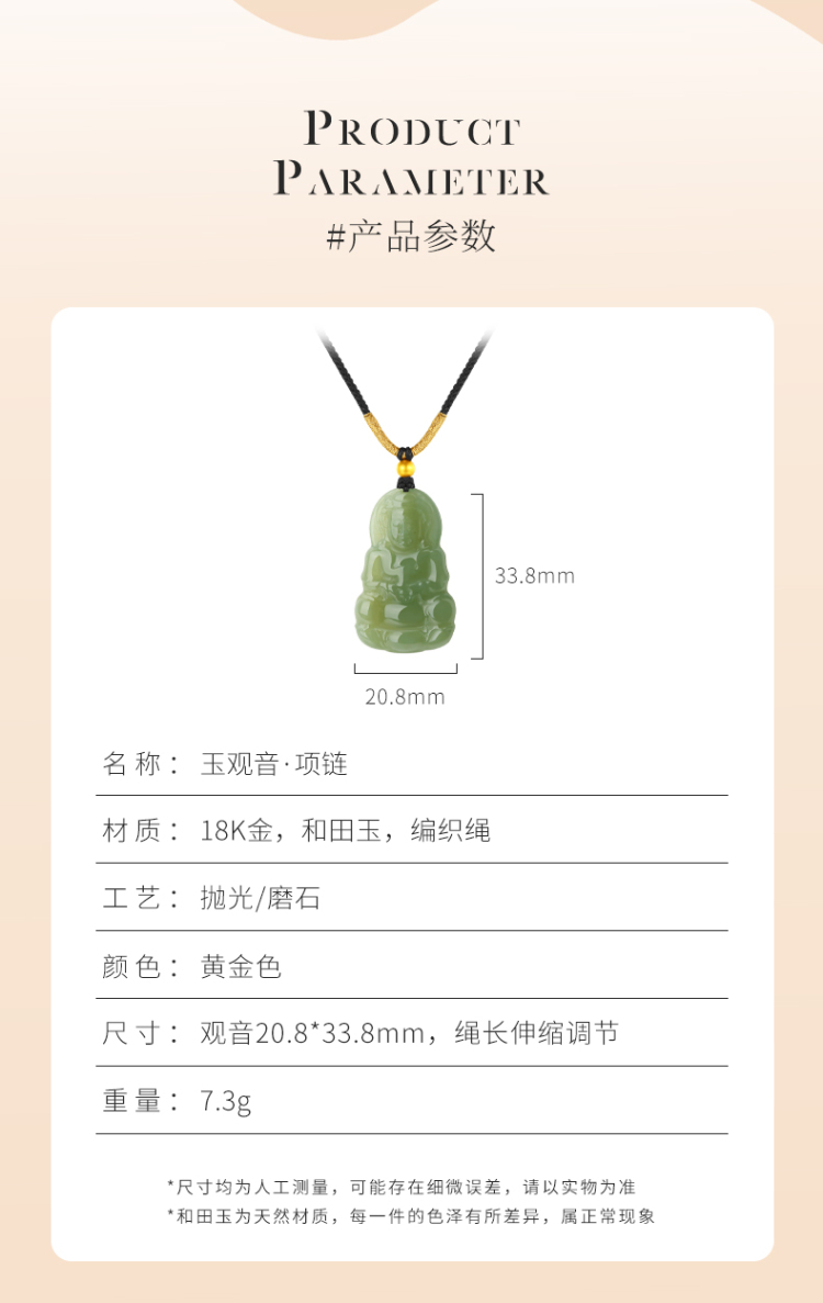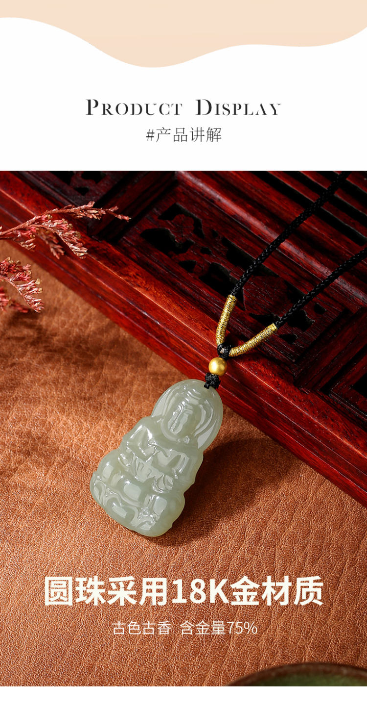 Winy18K金和田玉吊坠配证书吉祥平安送男友生日礼物