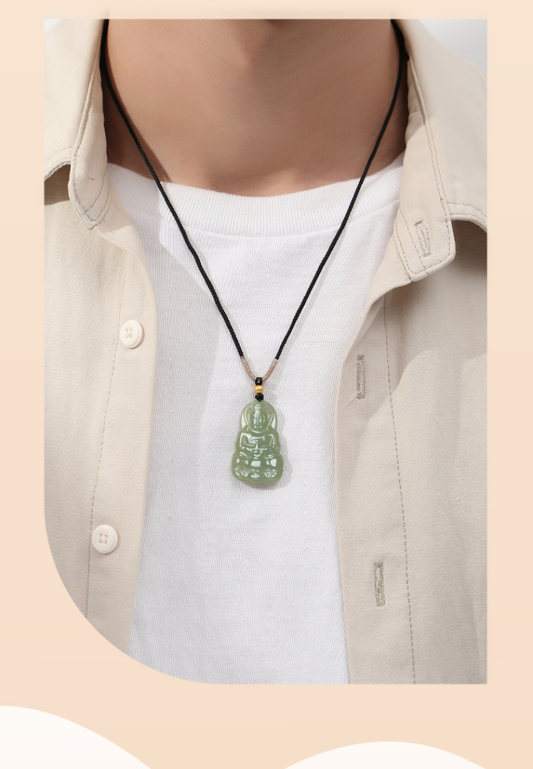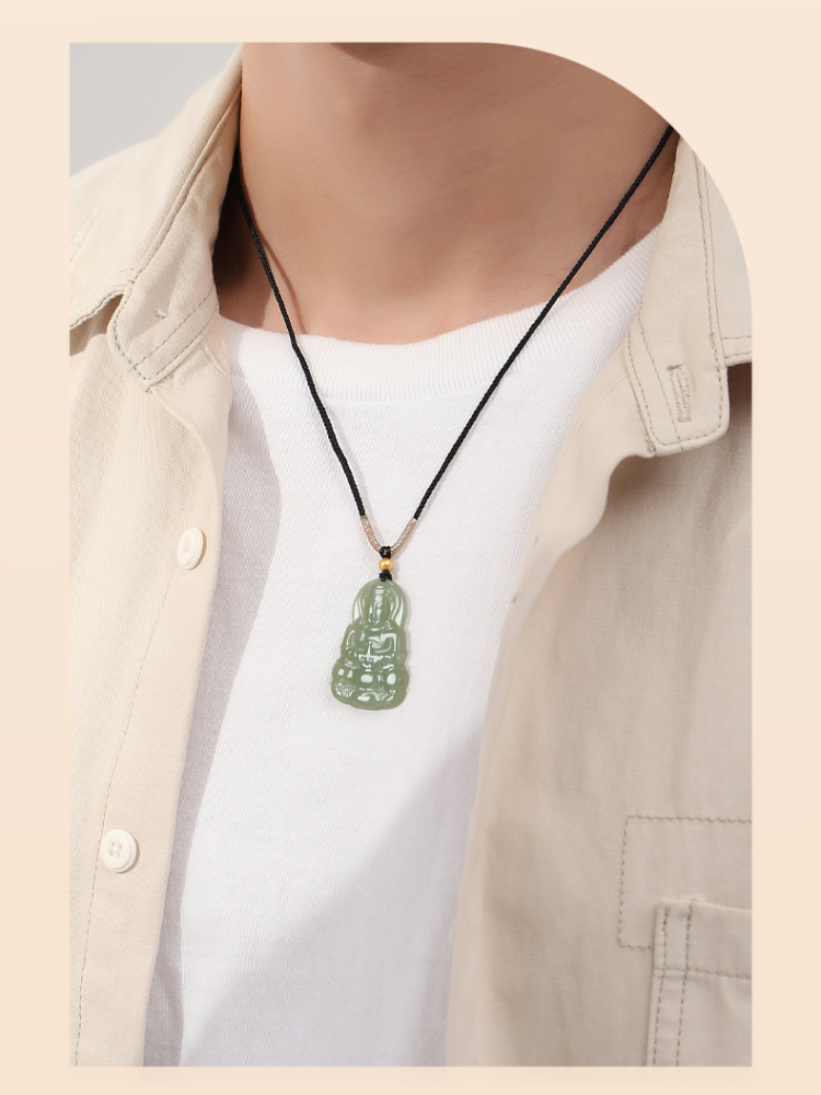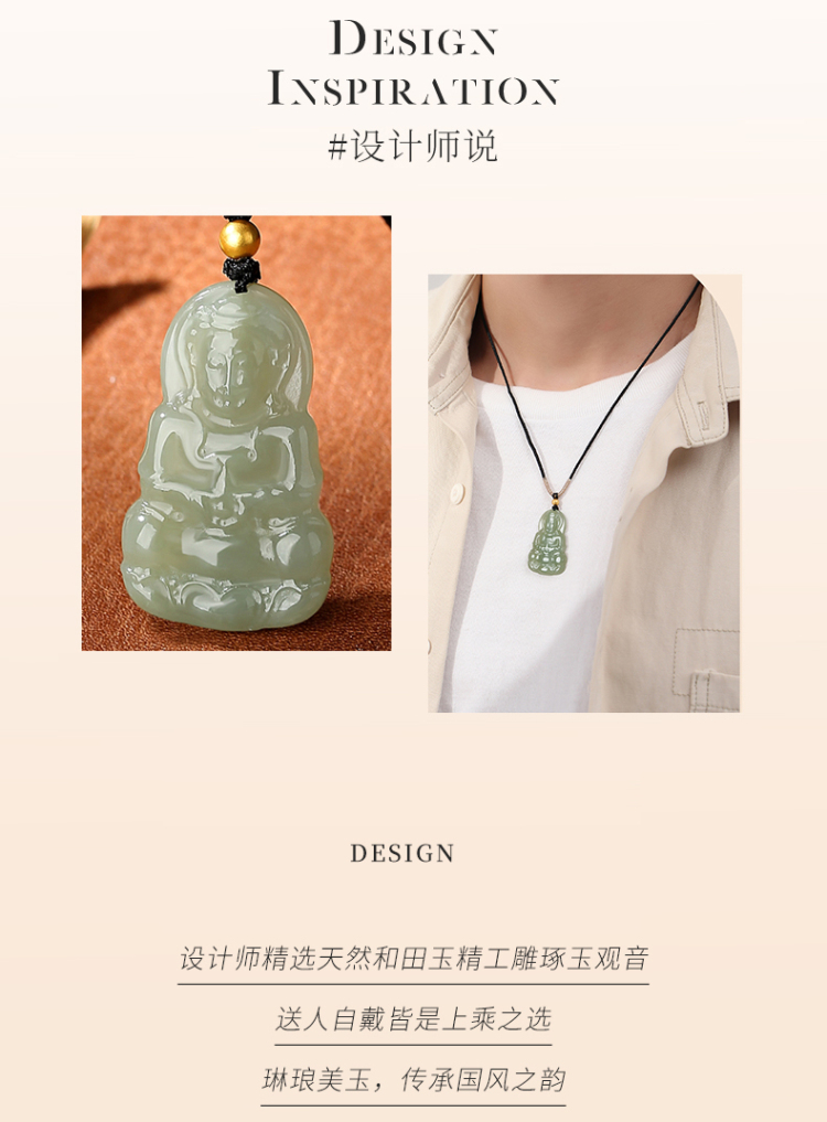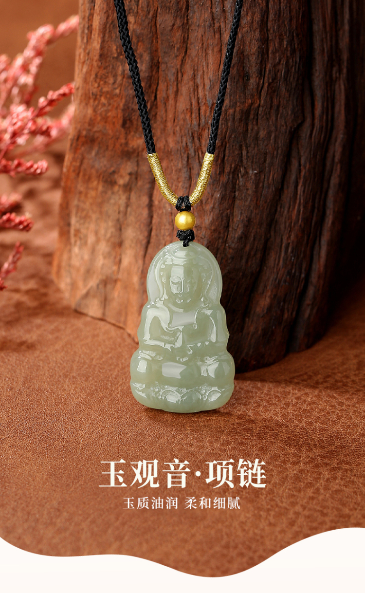 Winy18K金和田玉吊坠配证书吉祥平安送男友生日礼物