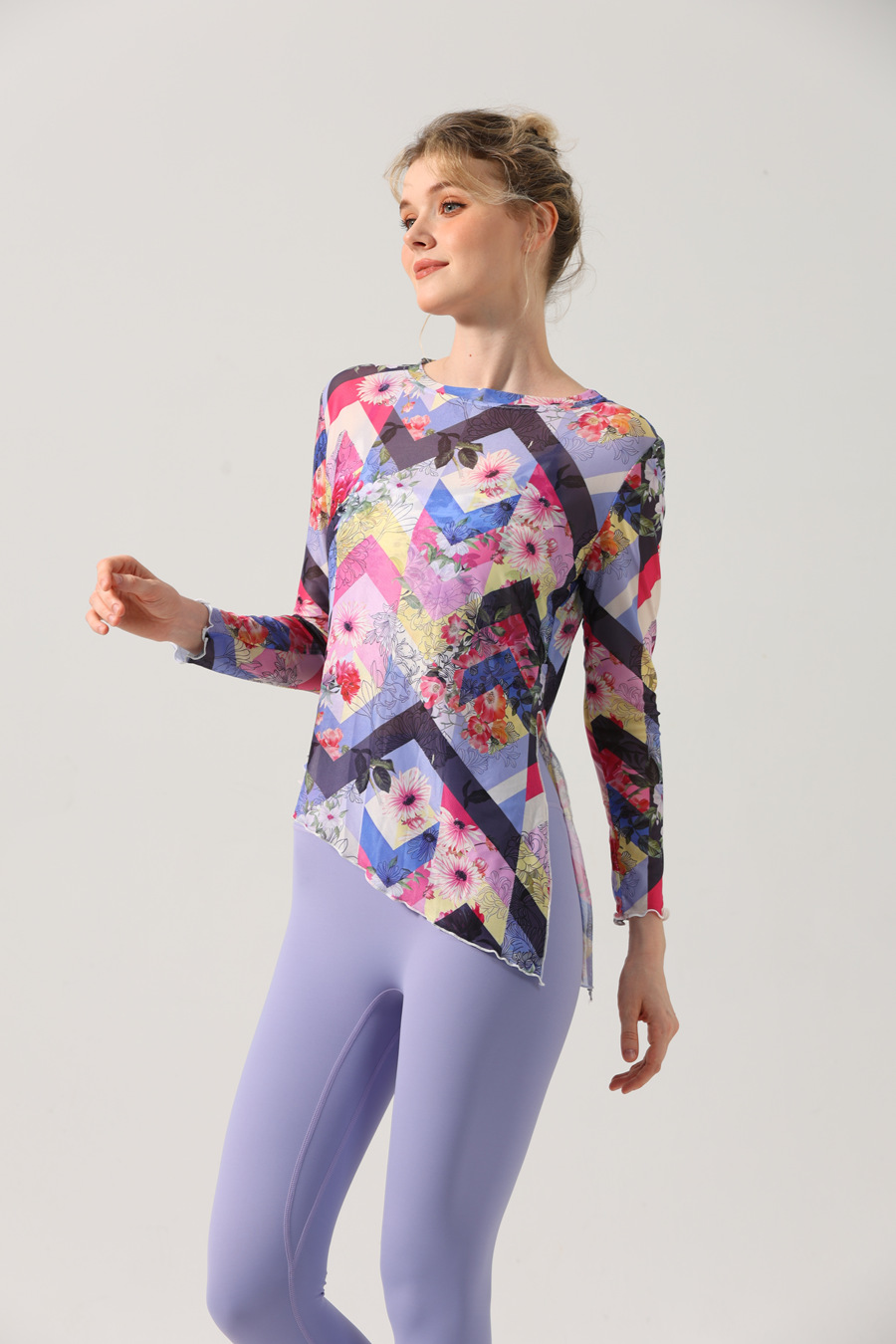 【126元任选2件】跃牌【漫西】系列 新款复古网纱上衣瑜伽服防晒显瘦速干罩衫健身衣长袖运动扎染透气Y250