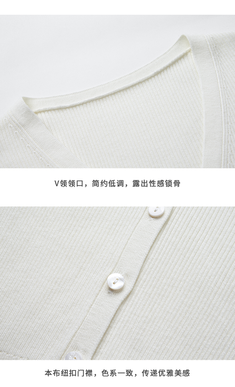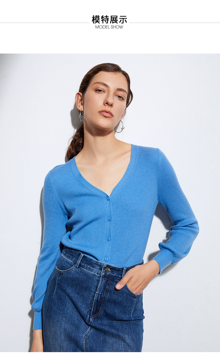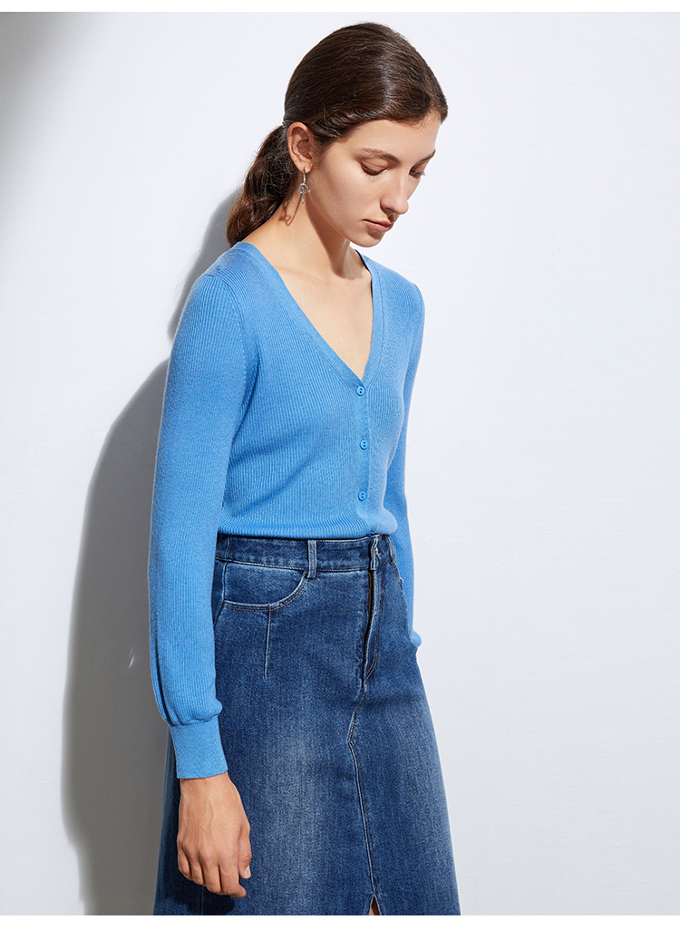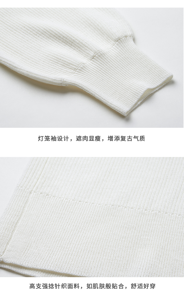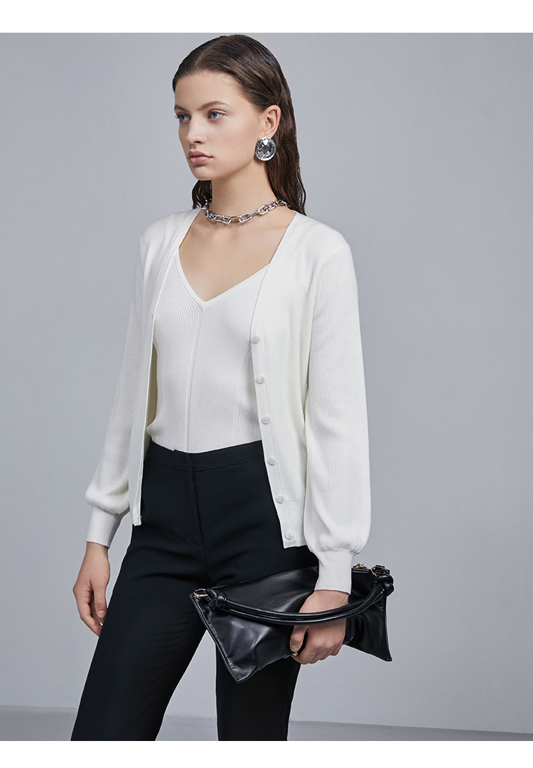 VIMAGE纬漫纪秋款气质V领灯笼袖修身简约百搭针织开衫女VA2101101