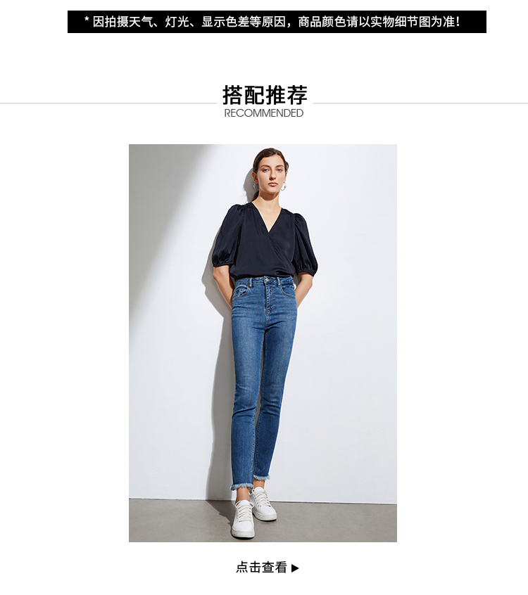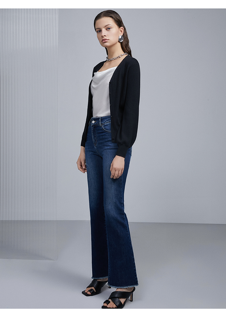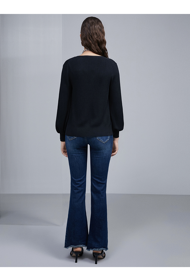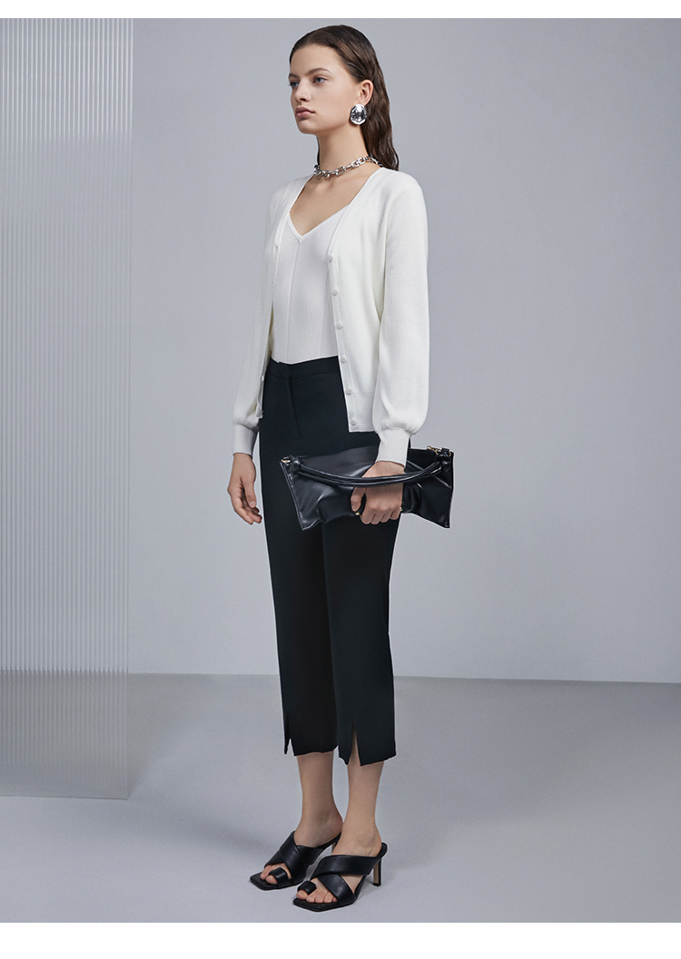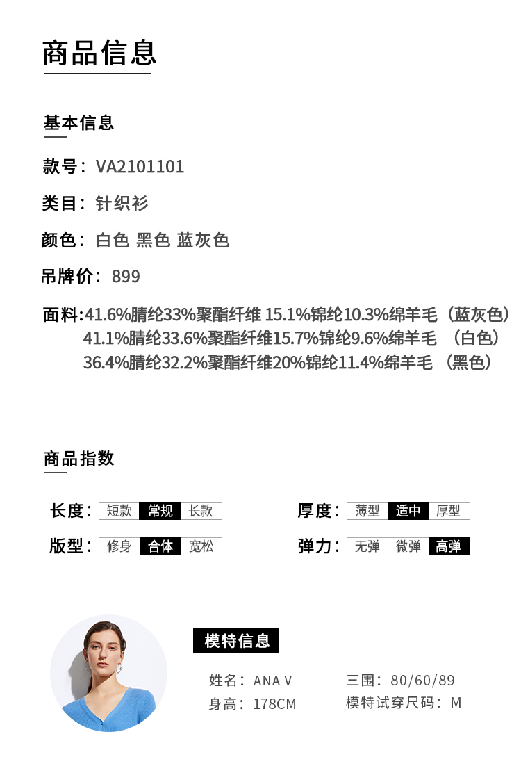 VIMAGE纬漫纪秋款气质V领灯笼袖修身简约百搭针织开衫女VA2101101