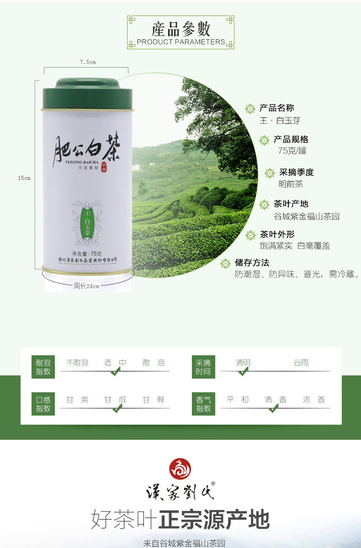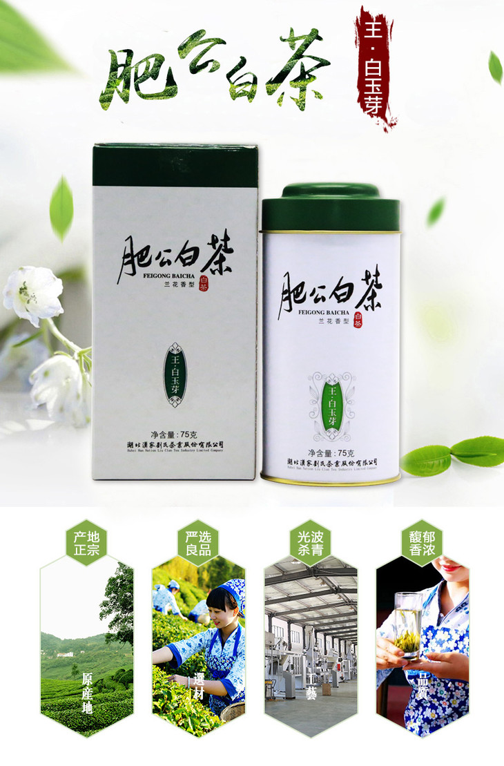 汉家刘氏 王白玉芽白茶 茶叶 明前白茶 铁罐精装 白毫银针 75g 包邮