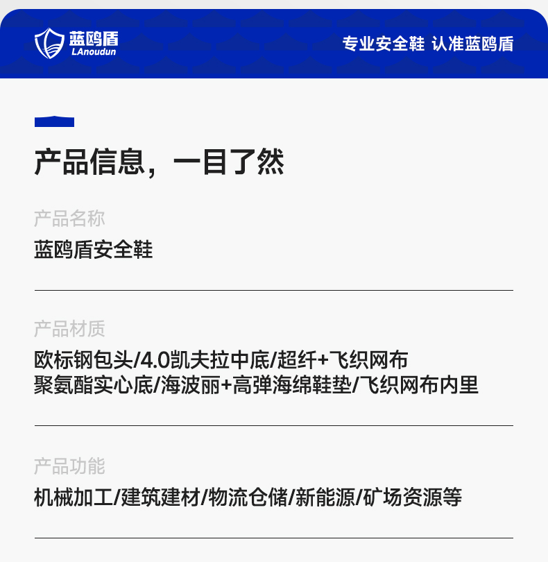 蓝鸥盾新款安全鞋防砸防刺4.0凯夫拉四季款耐磨实心底低帮