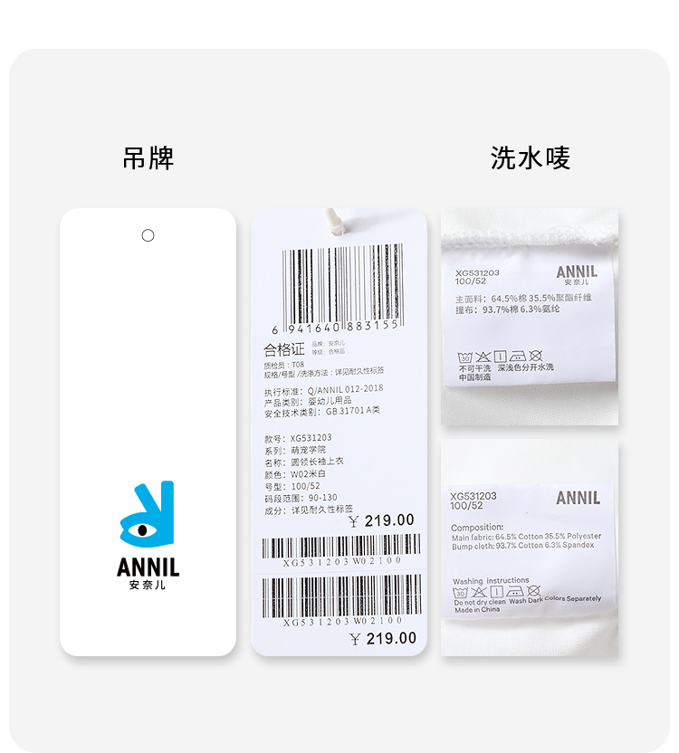 【实体店同款】女童圆领长袖上衣秋季新款安奈儿童装XG531203