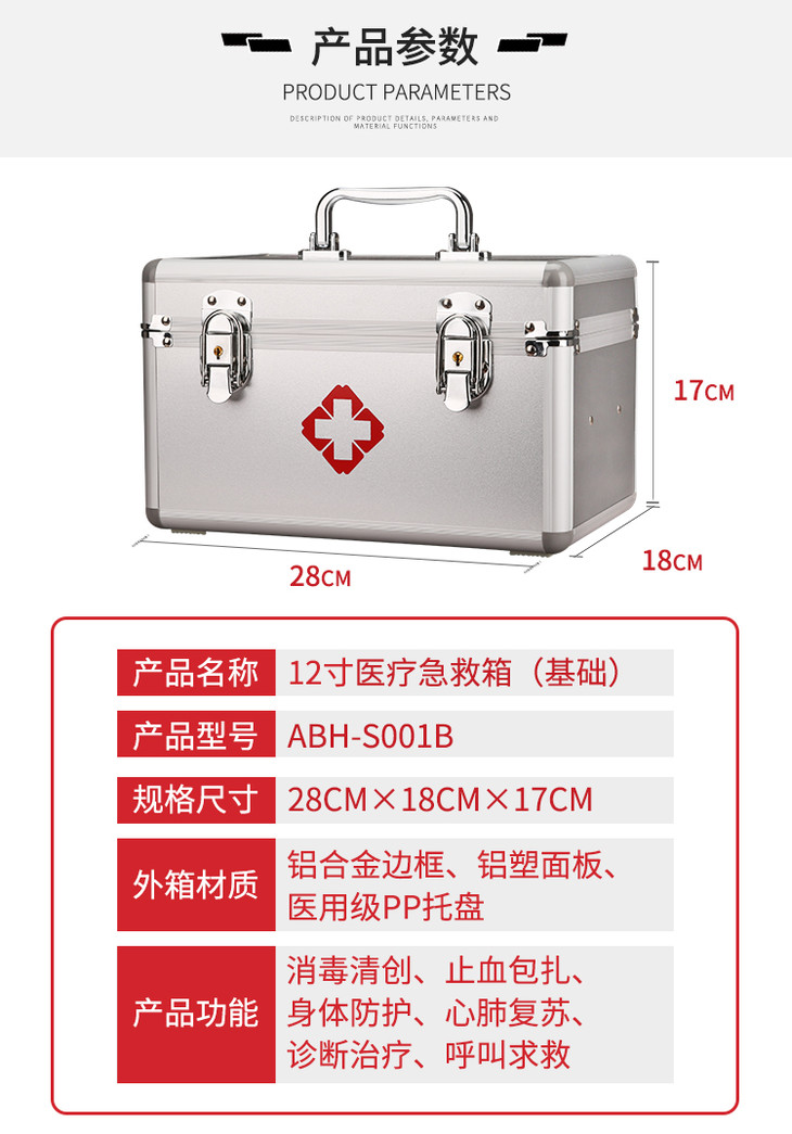 【包邮到家】爱倍护12寸医疗急救箱(基础)ABH-S001B(消毒清创 止血包扎 急救防护等诊断治疗工具)