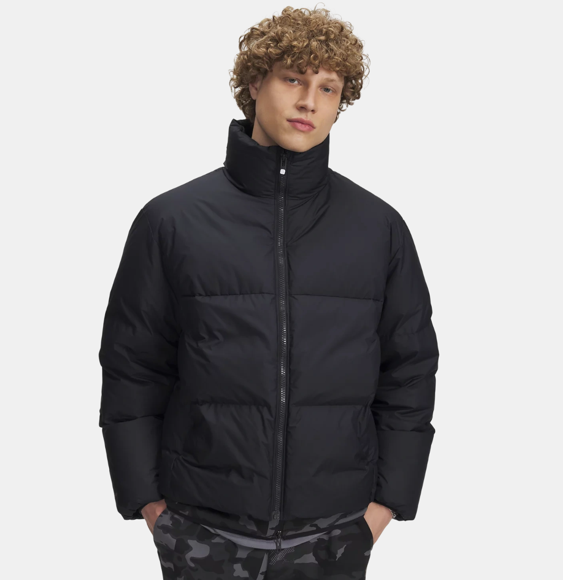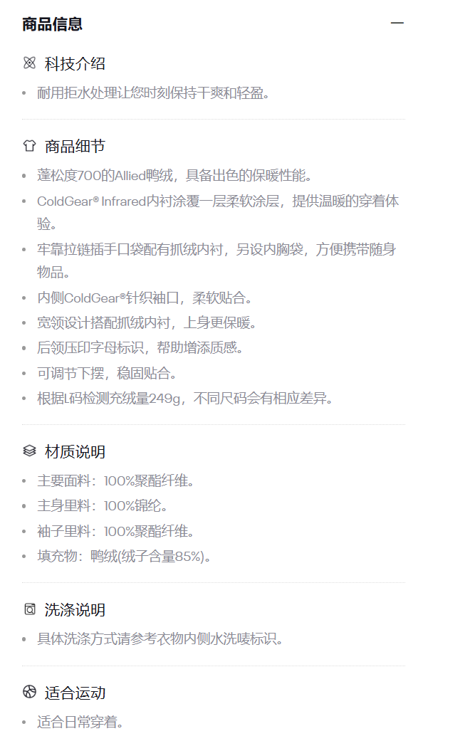 安德玛男子UA Limitless热冬系列700蓬压纹短款鸭绒羽绒服6008826-001