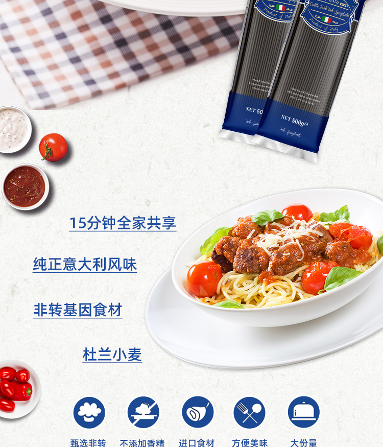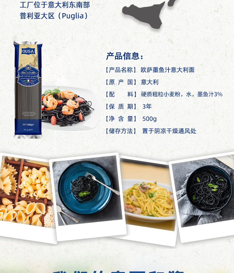 欧萨 意大利进口 墨鱼汁意大利面 500g