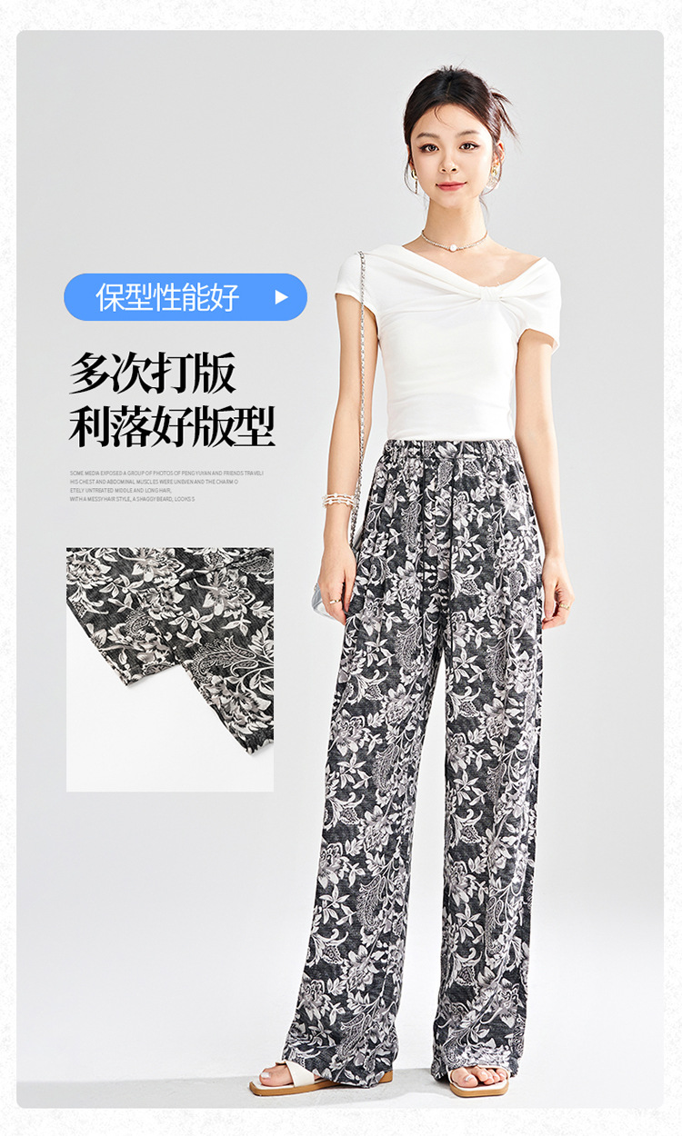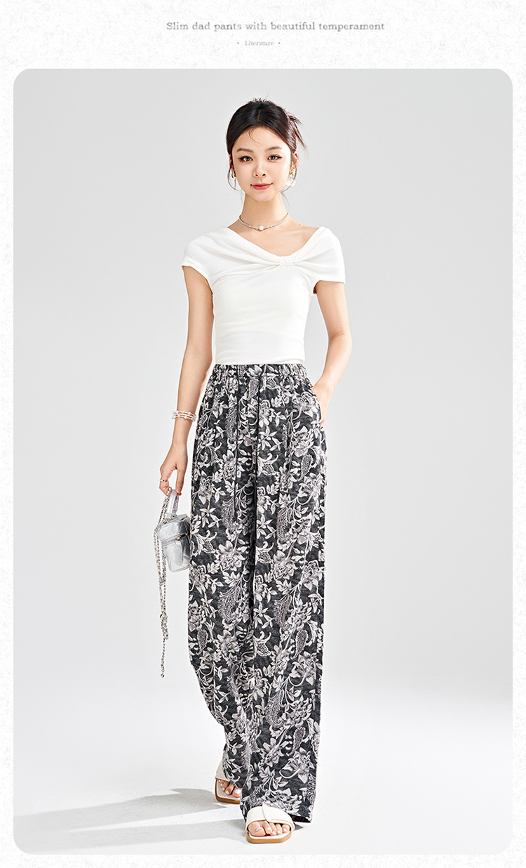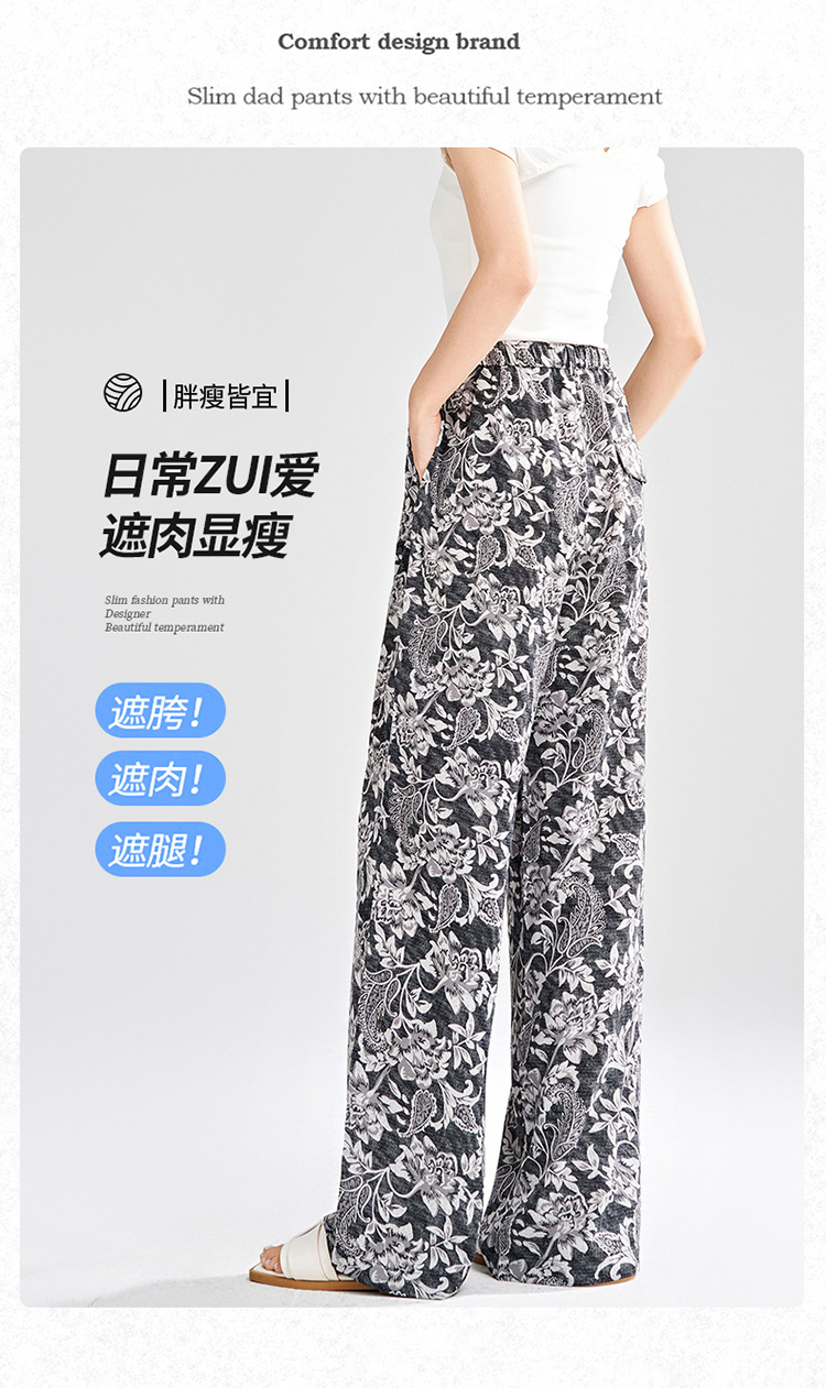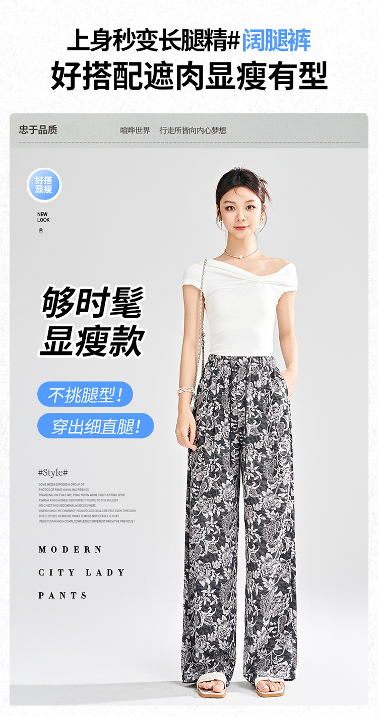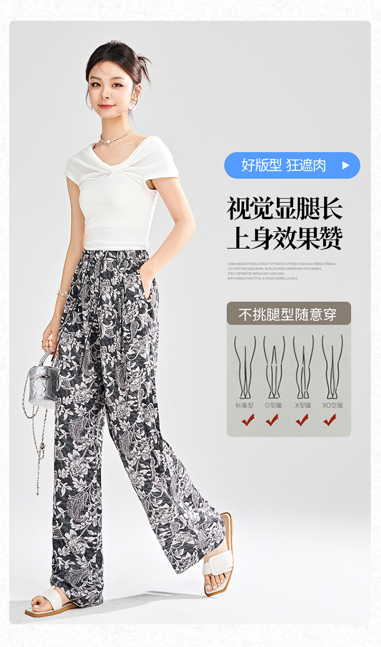 MYX-KDFY-S1962-L印花薄款透气宽松休闲阔腿长裤2025年夏款松紧腰垂坠感显瘦直筒裤
