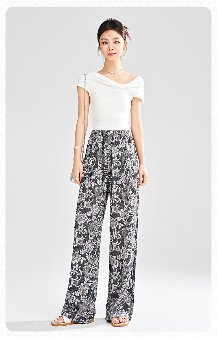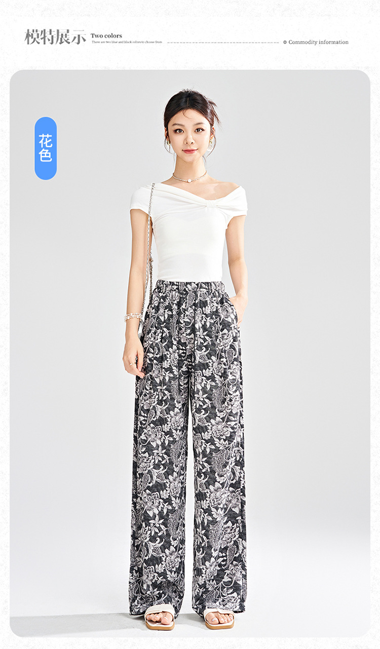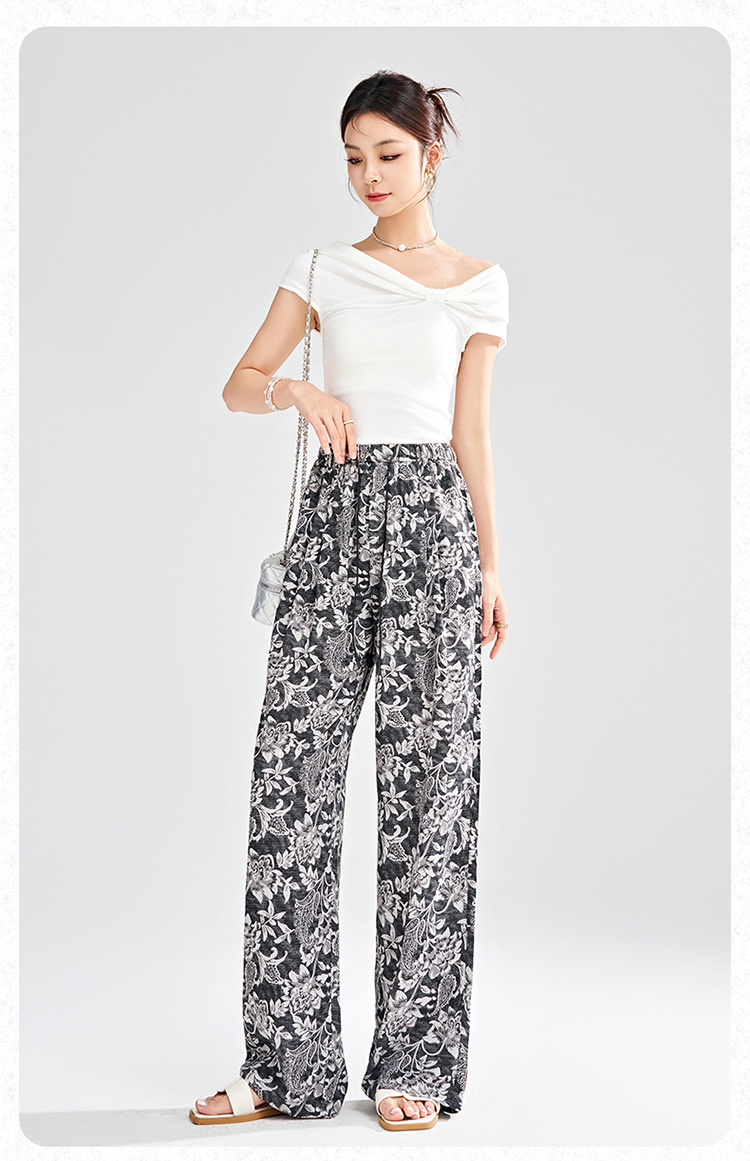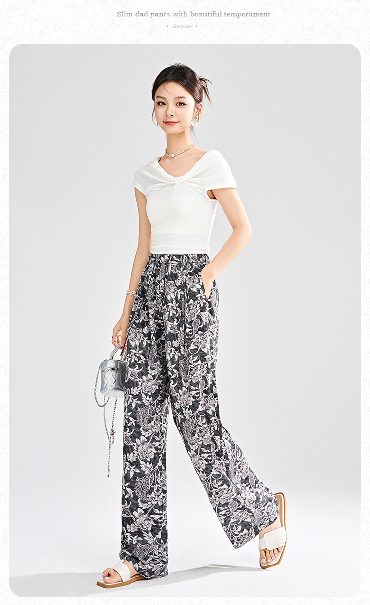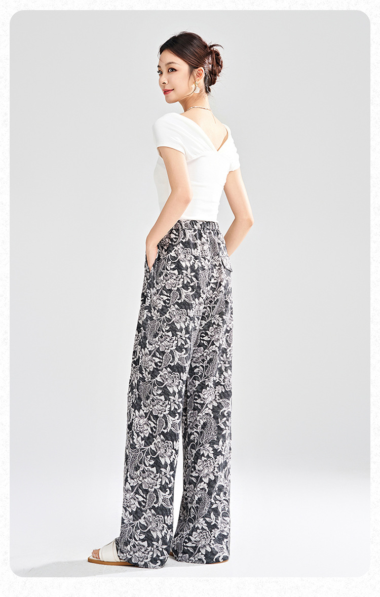 MYX-KDFY-S1962-L印花薄款透气宽松休闲阔腿长裤2025年夏款松紧腰垂坠感显瘦直筒裤