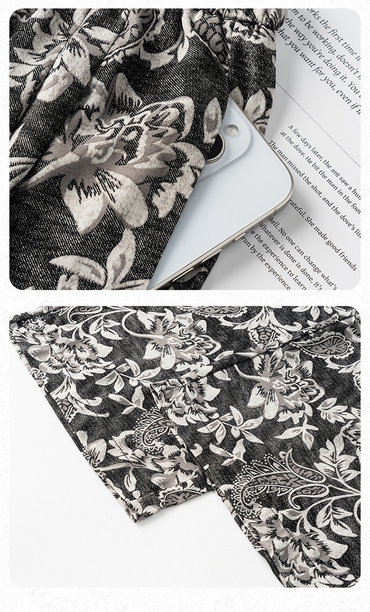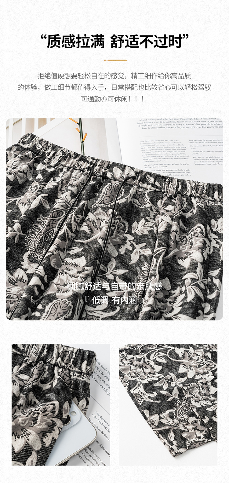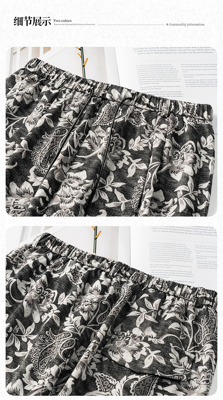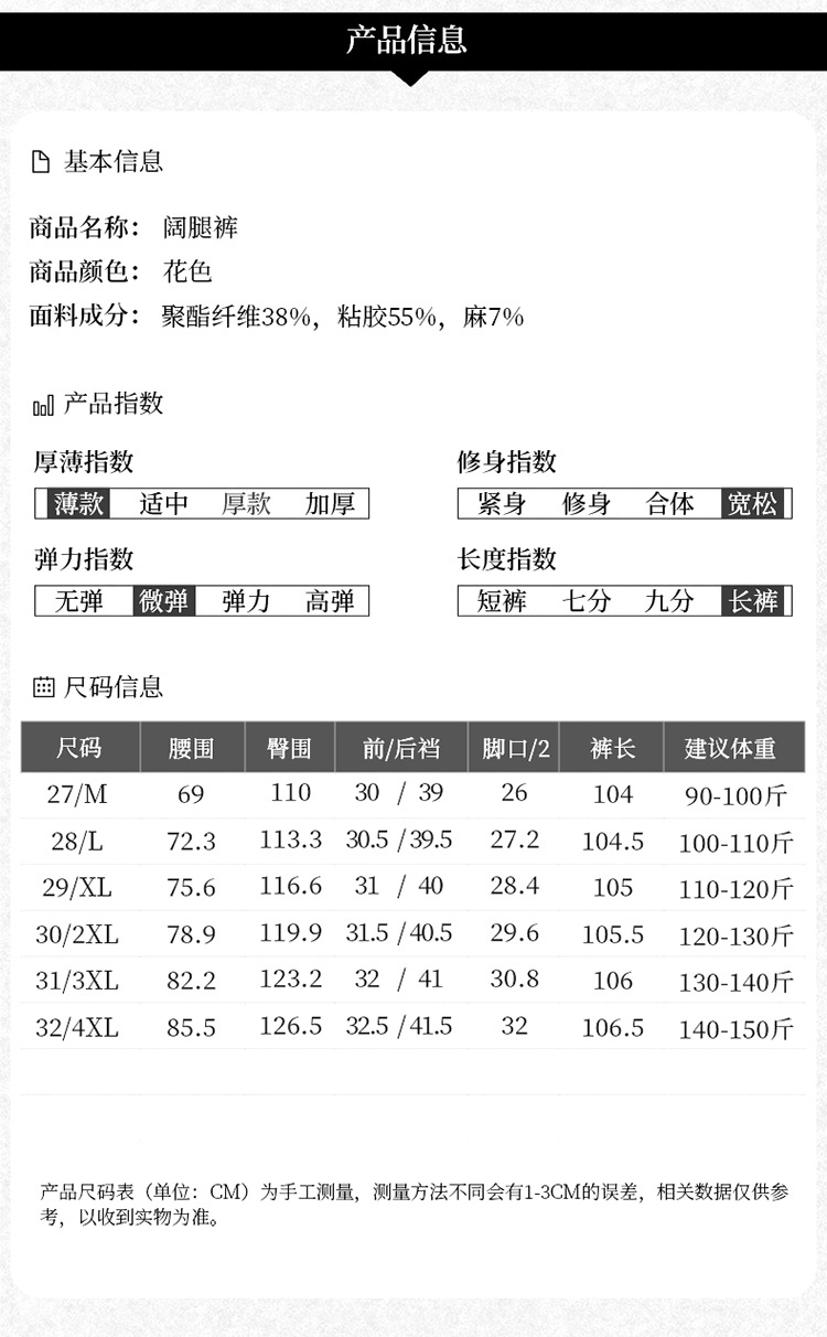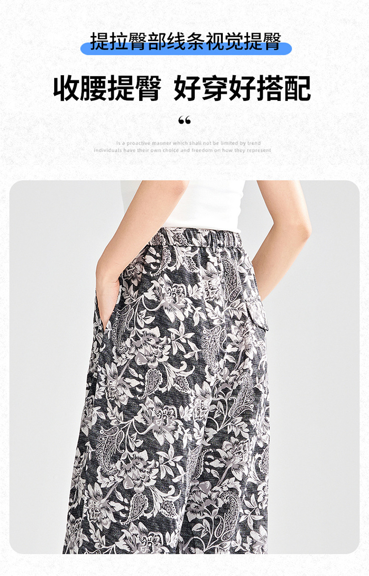 MYX-KDFY-S1962-L印花薄款透气宽松休闲阔腿长裤2025年夏款松紧腰垂坠感显瘦直筒裤