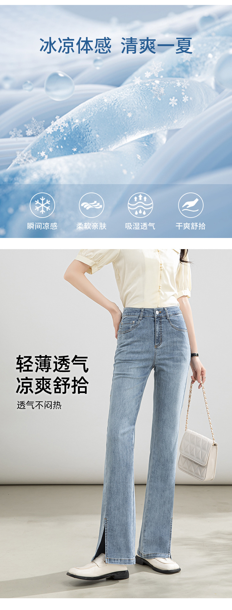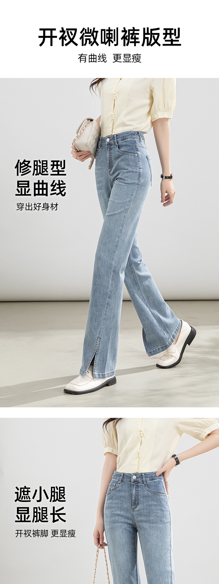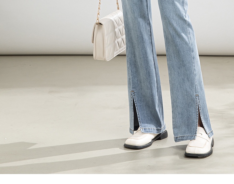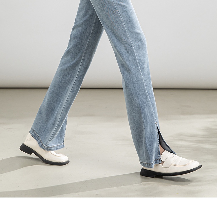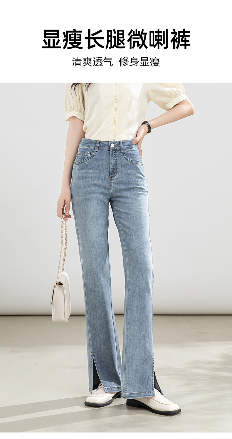 「自」全新升级【铂金会员146/天猫199/差价53】(02746)洛诗琳高腰开叉牛仔裤2025夏季新款薄款直筒喇叭裤女