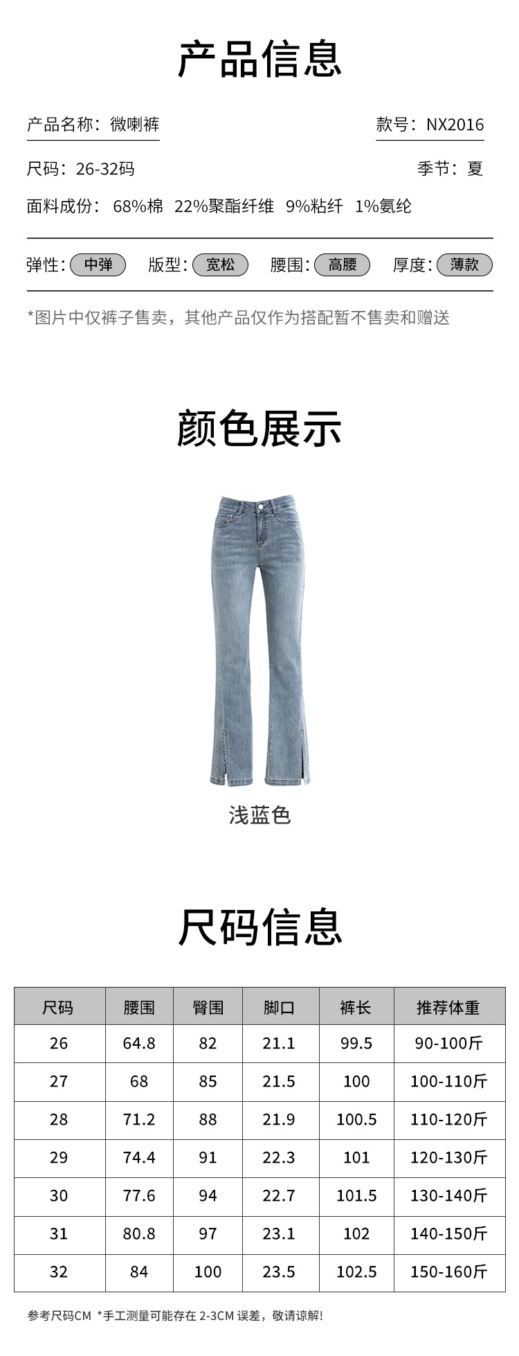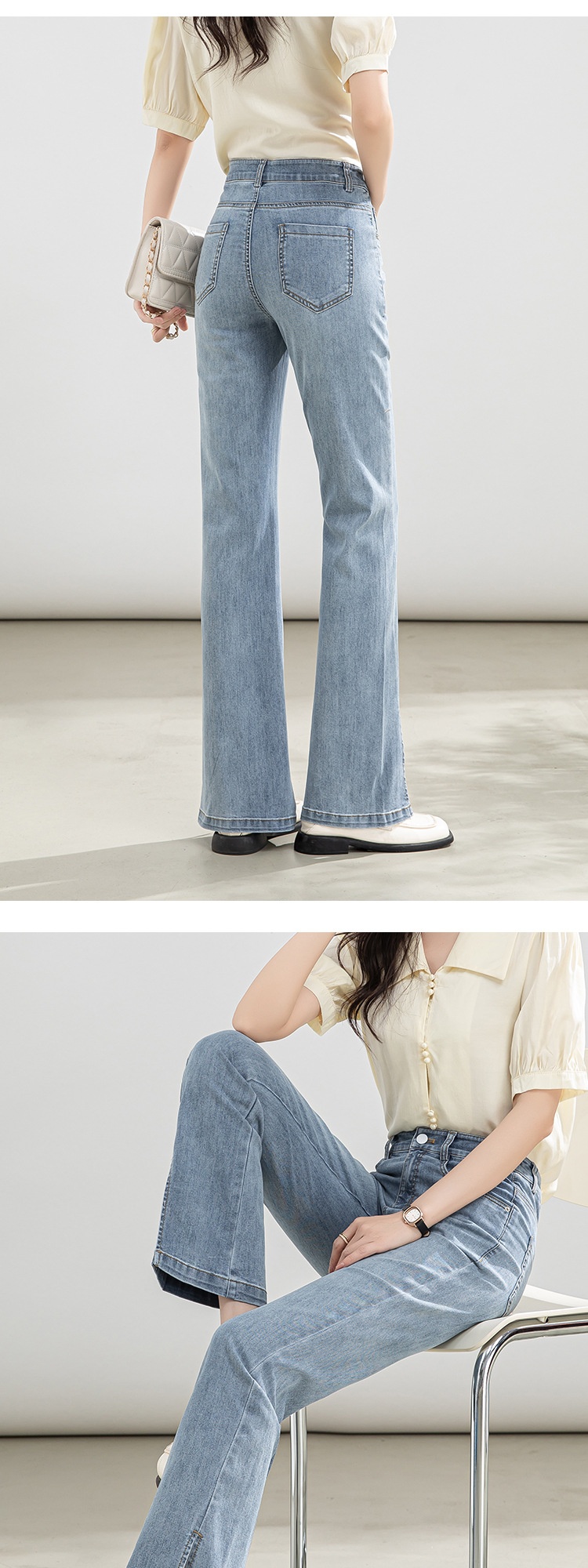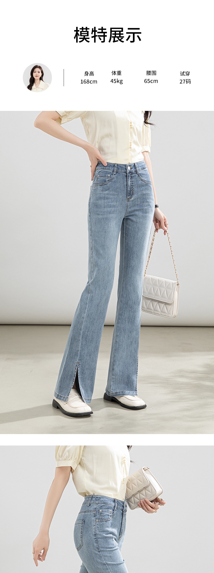 「自」全新升级【铂金会员146/天猫199/差价53】(02746)洛诗琳高腰开叉牛仔裤2025夏季新款薄款直筒喇叭裤女
