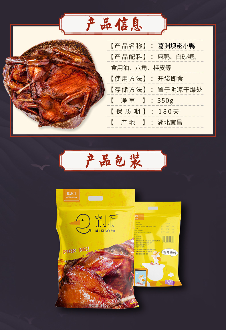 【葛洲坝】休闲卤制小零食 密小鸭 350g/袋 即食 香辣味
