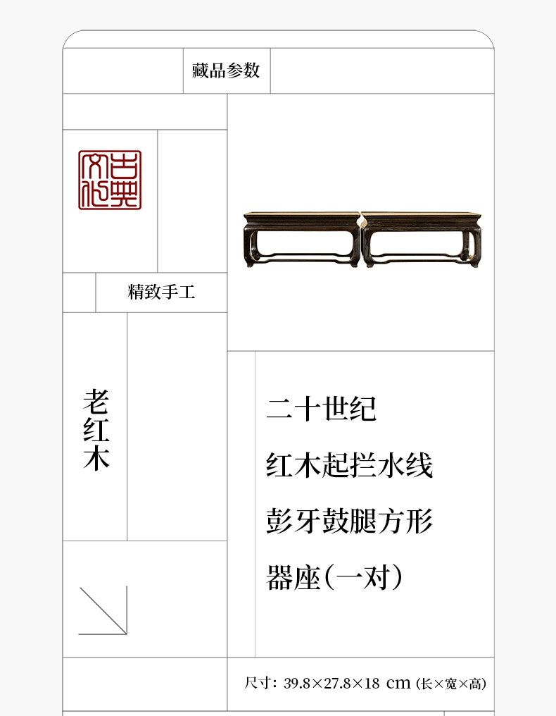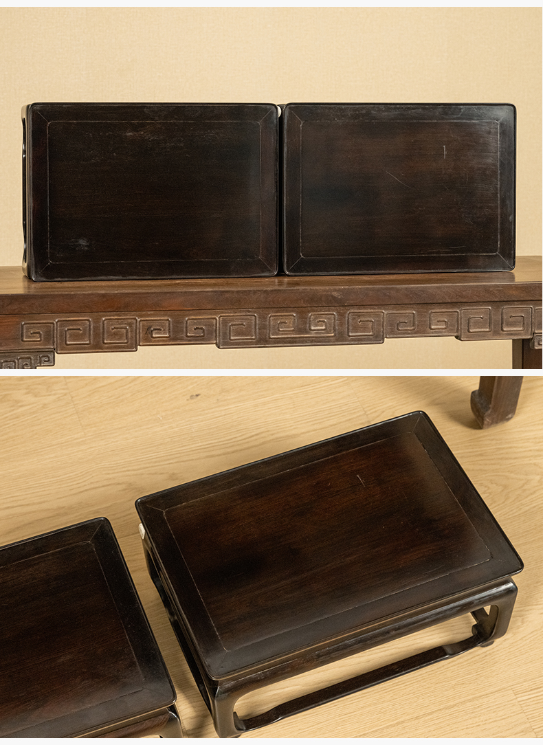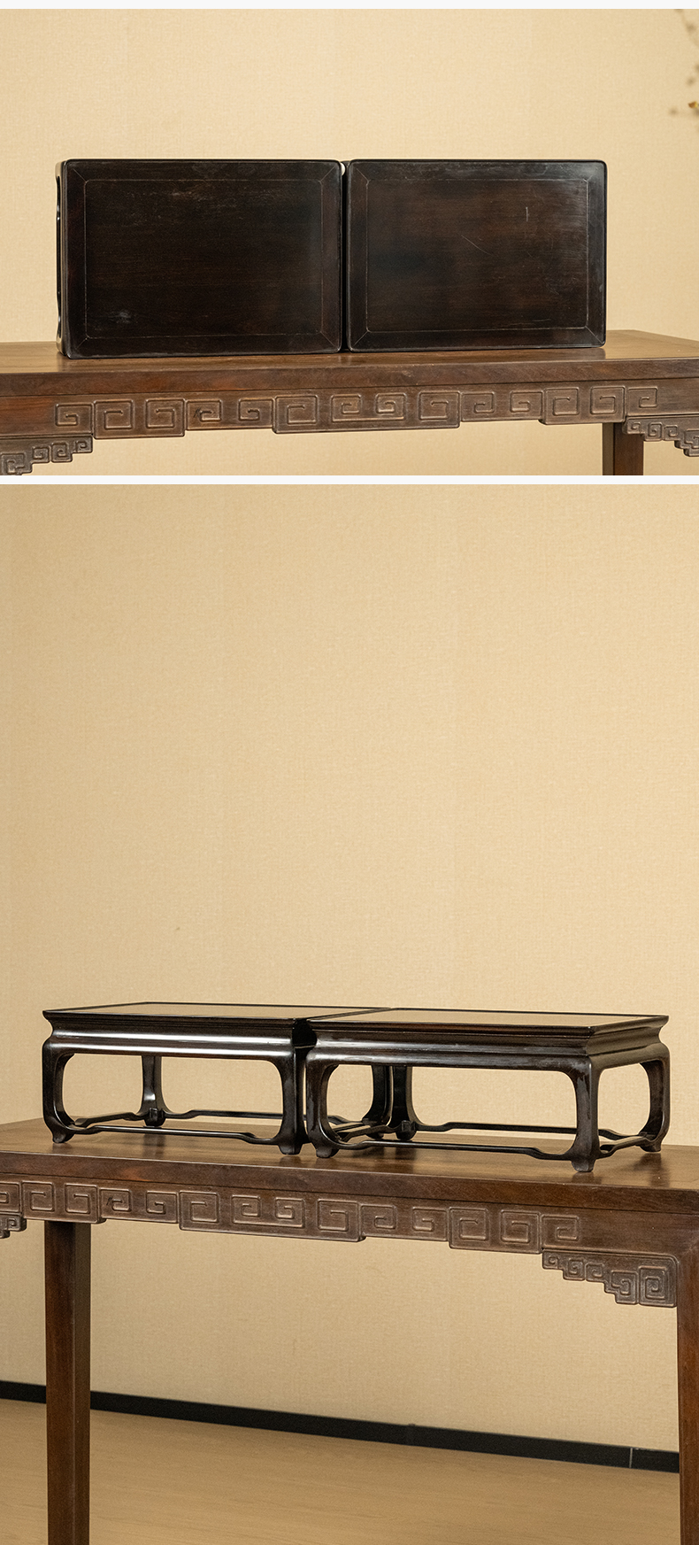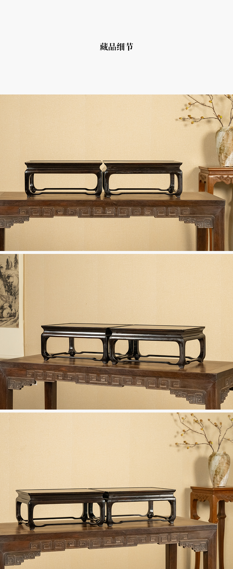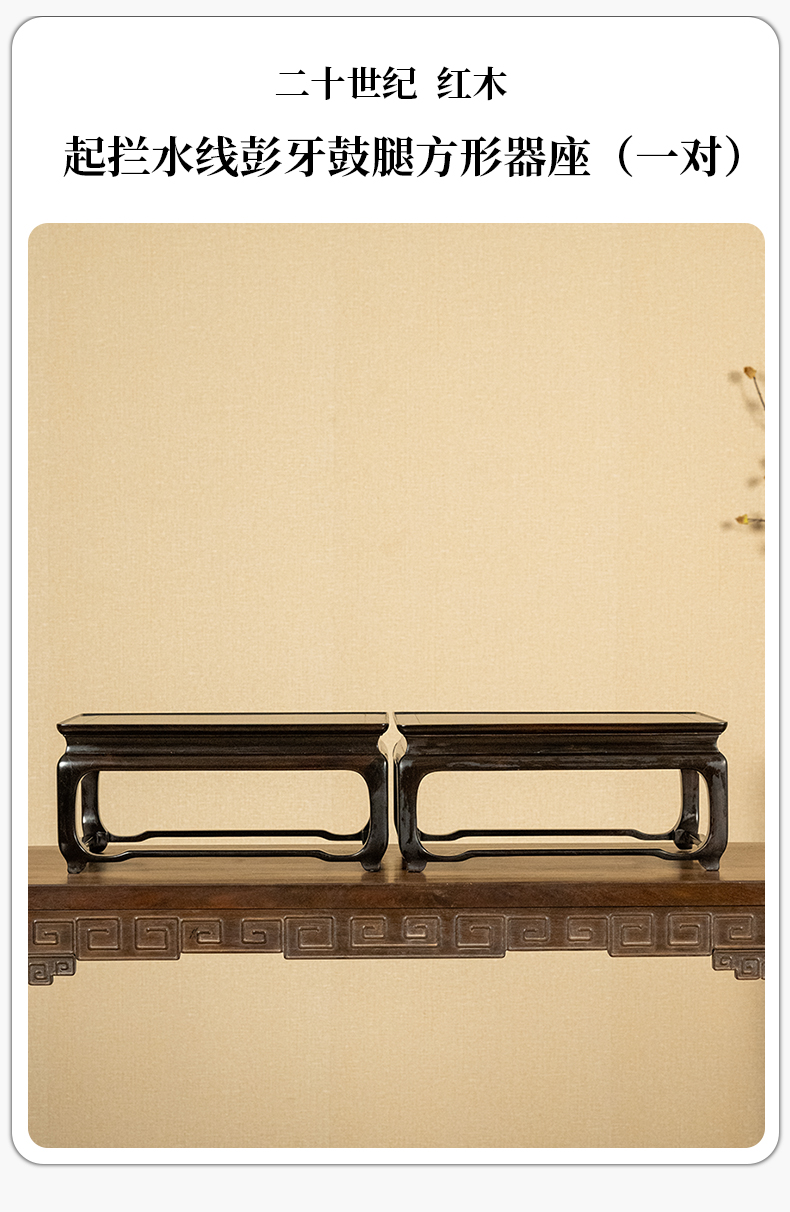 二十世纪 红木起拦水线彭牙鼓腿方形器座(一对)
