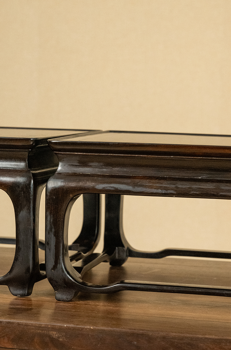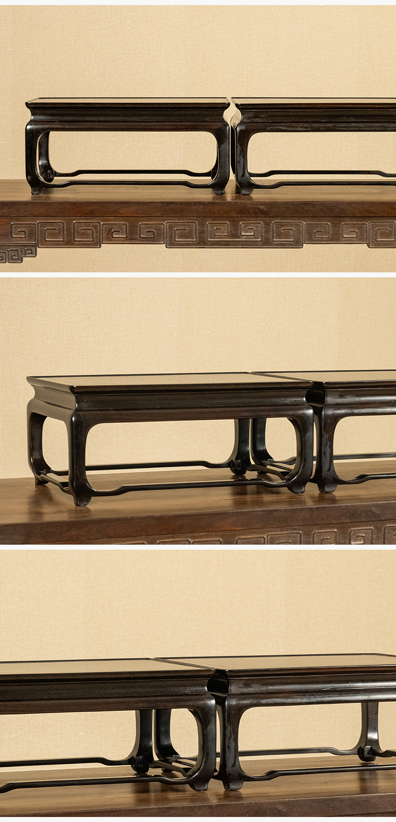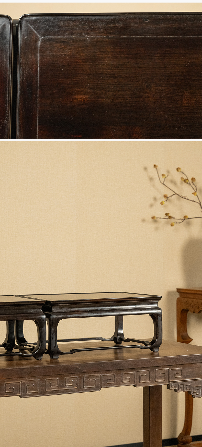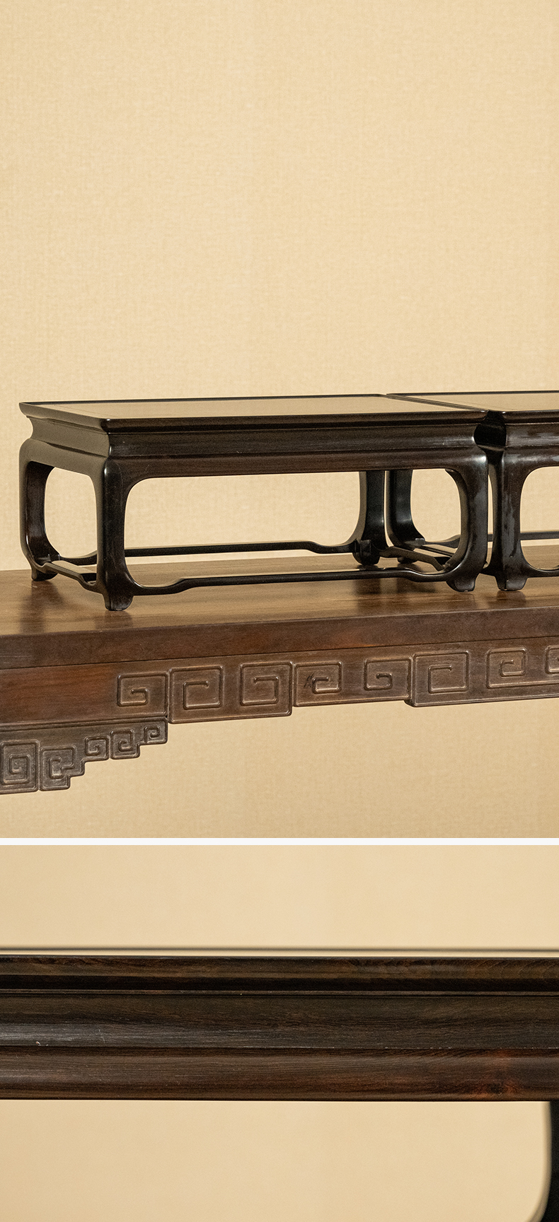 二十世纪 红木起拦水线彭牙鼓腿方形器座(一对)