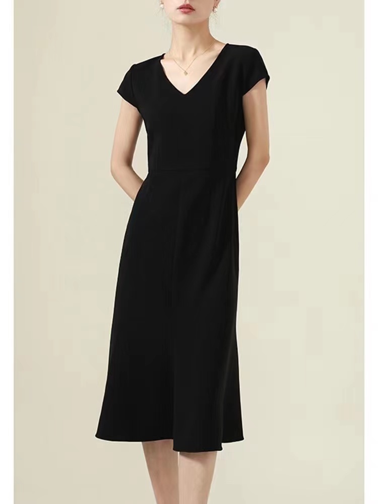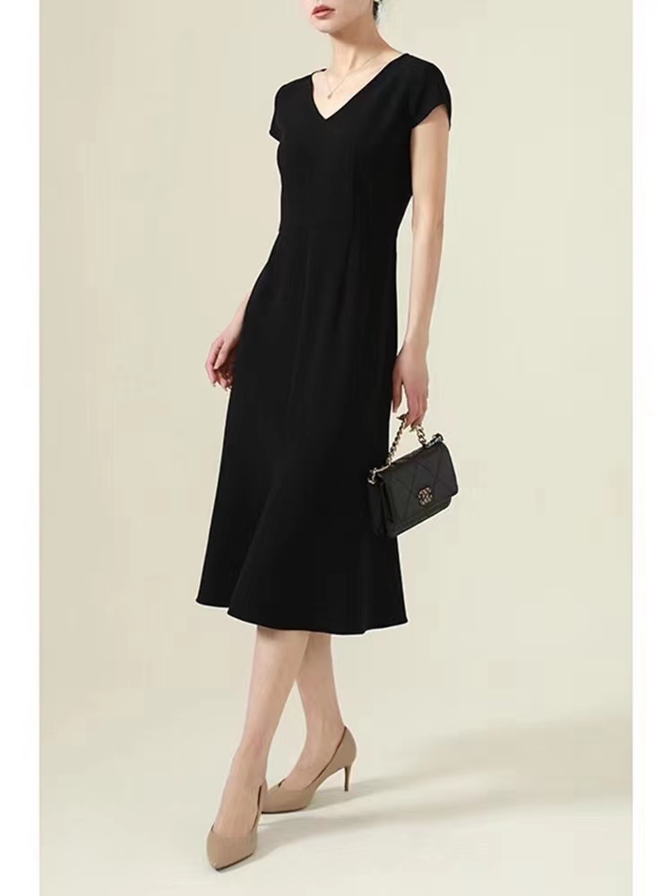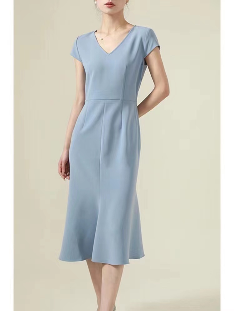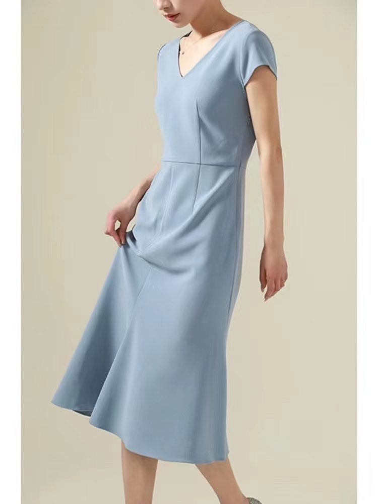 【à perles】三醋酸V领修身鱼尾连衣裙,优雅小女人【3-5个工作日】