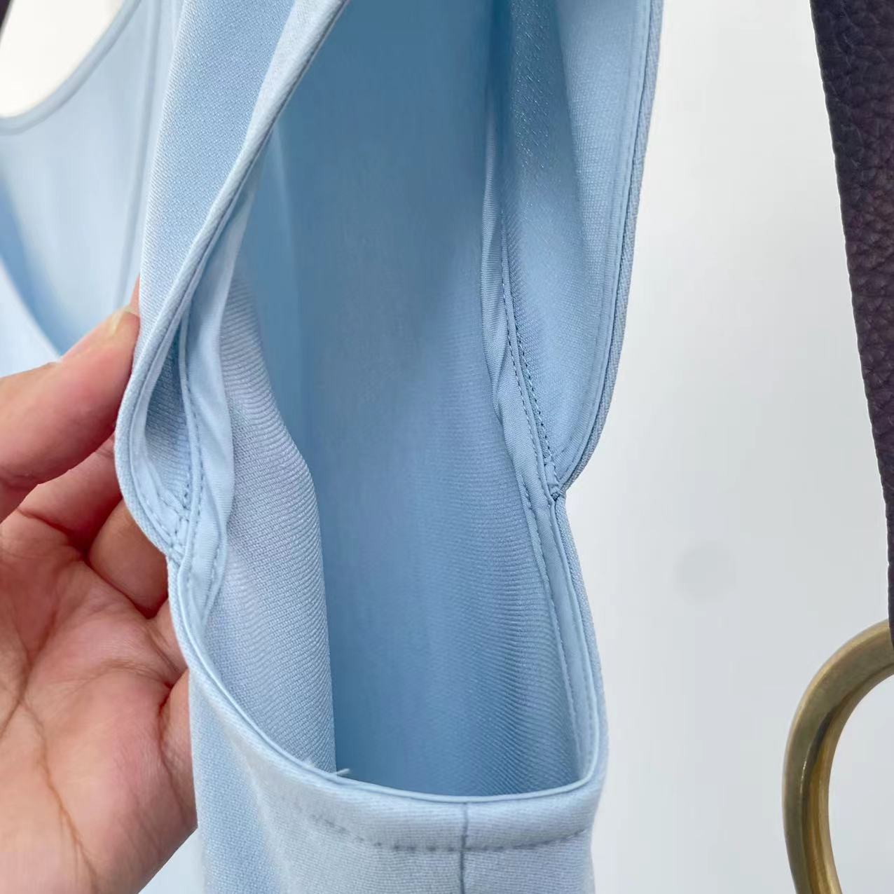 有蓝色和黑色两个颜色,蓝色是很清新的蓝色,像天空一样,湛蓝湛蓝的,就是夏天的颜色了,有黑色裙子的姐妹们推荐入手蓝色哦!黑色就是气场十足啦,也更显瘦!