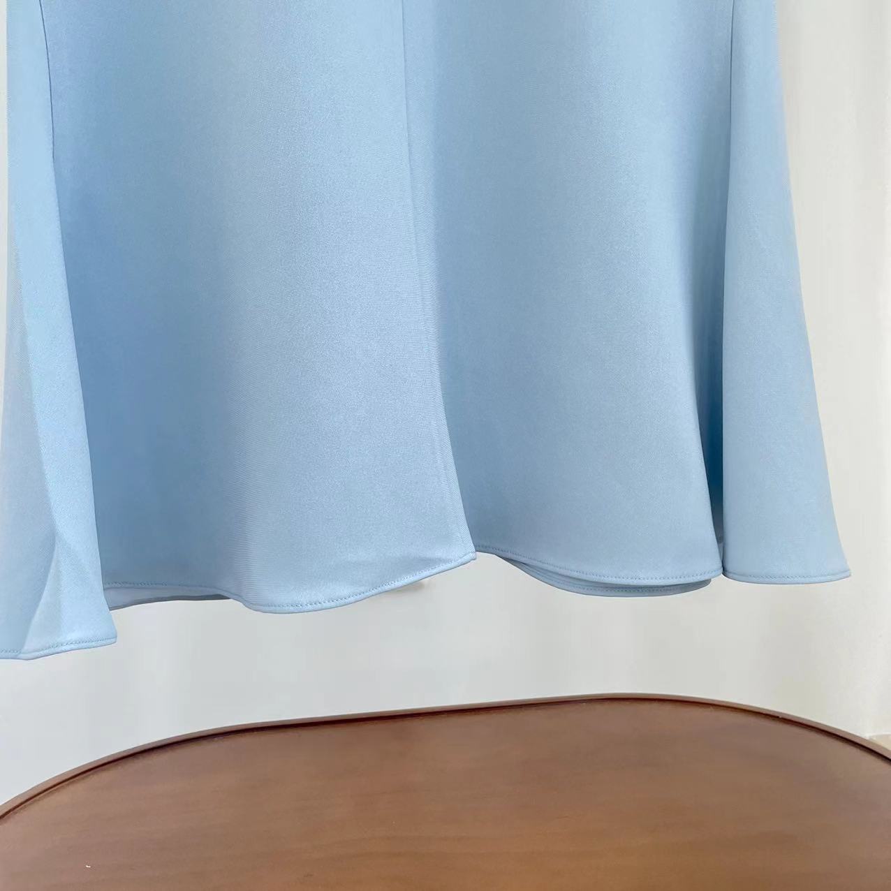相对小香风醋酸外套的筋骨挺阔感,这条裙子面料就比较薄一点,这样才能让裙子更加飘逸,轻盈。