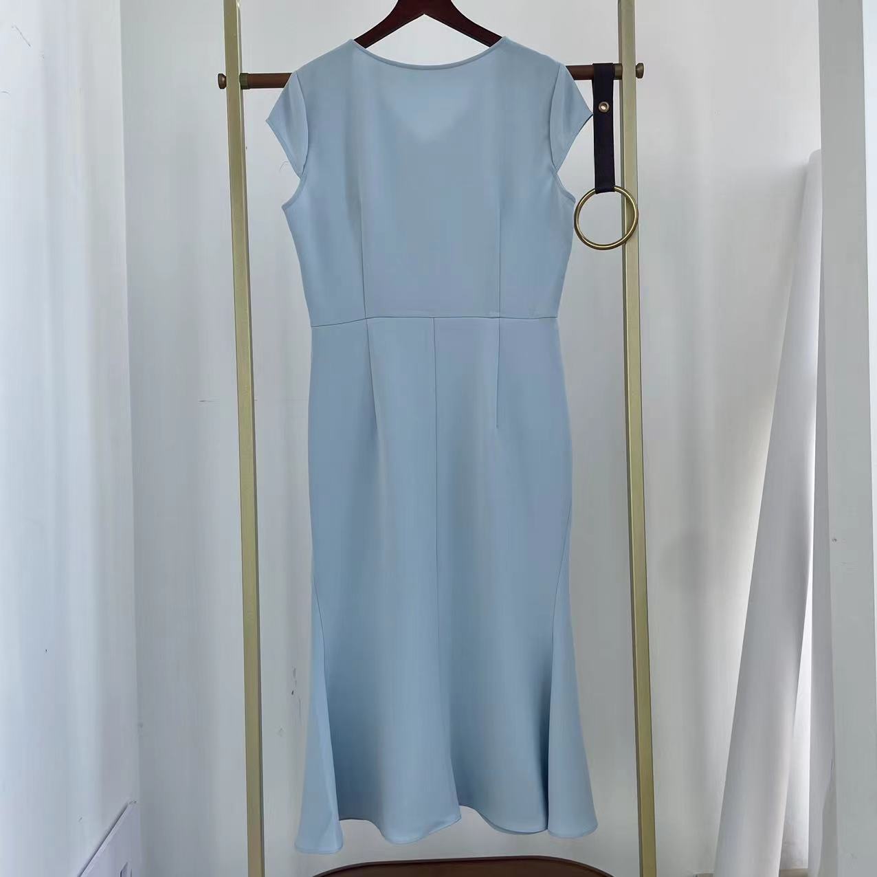 飘逸优雅的醋酸鱼尾连衣裙,最近我们上了好几款醋酸面料,相比真丝,很好打理但又不失高级感。V领不会很低,保守的姐妹们可以放心入,整体是修身版型,裙摆是散开的鱼尾造型,搭配一双高跟鞋,气质小女人的感觉就来拉!