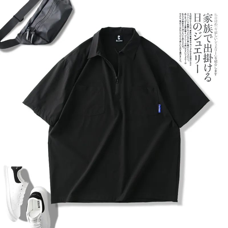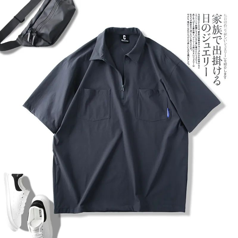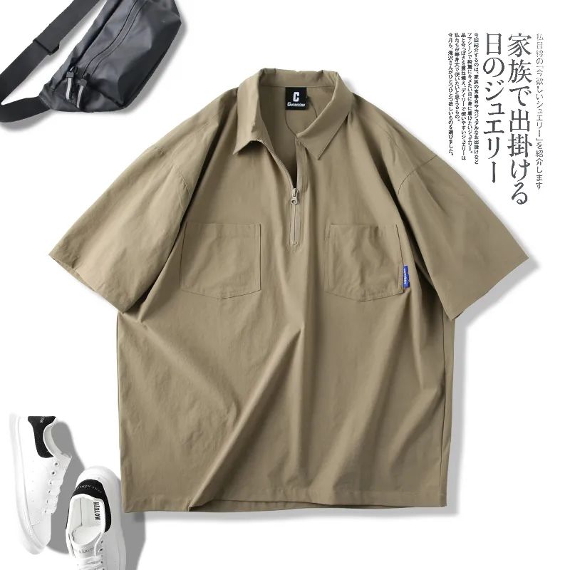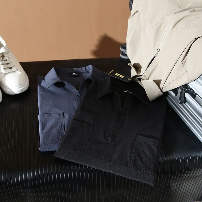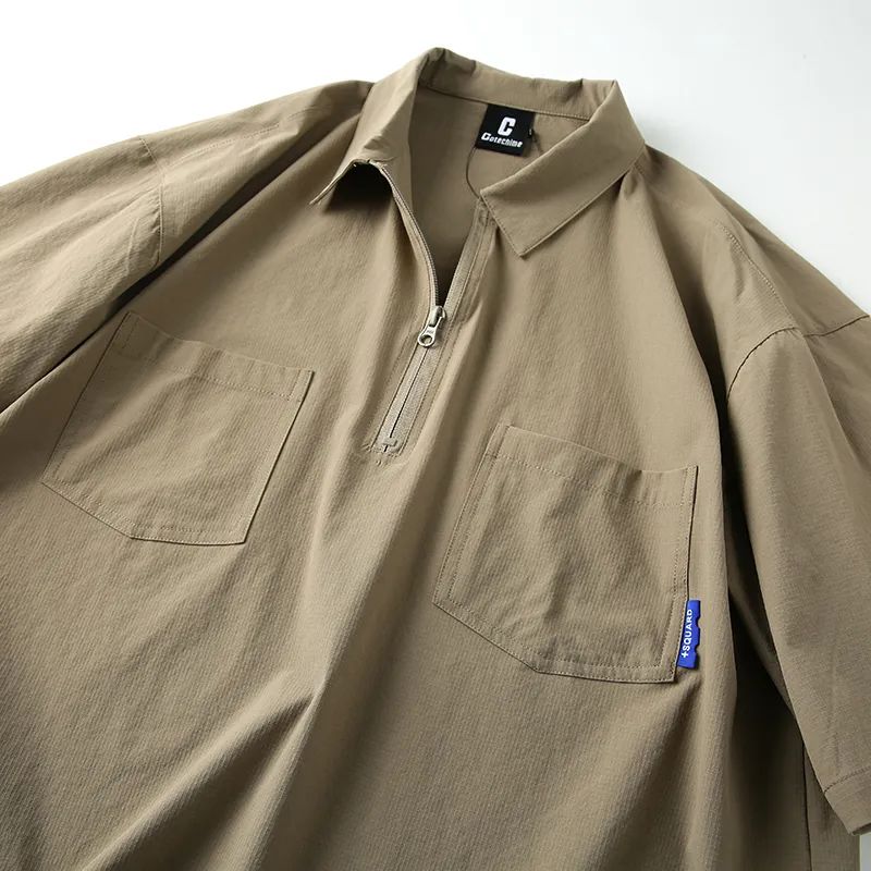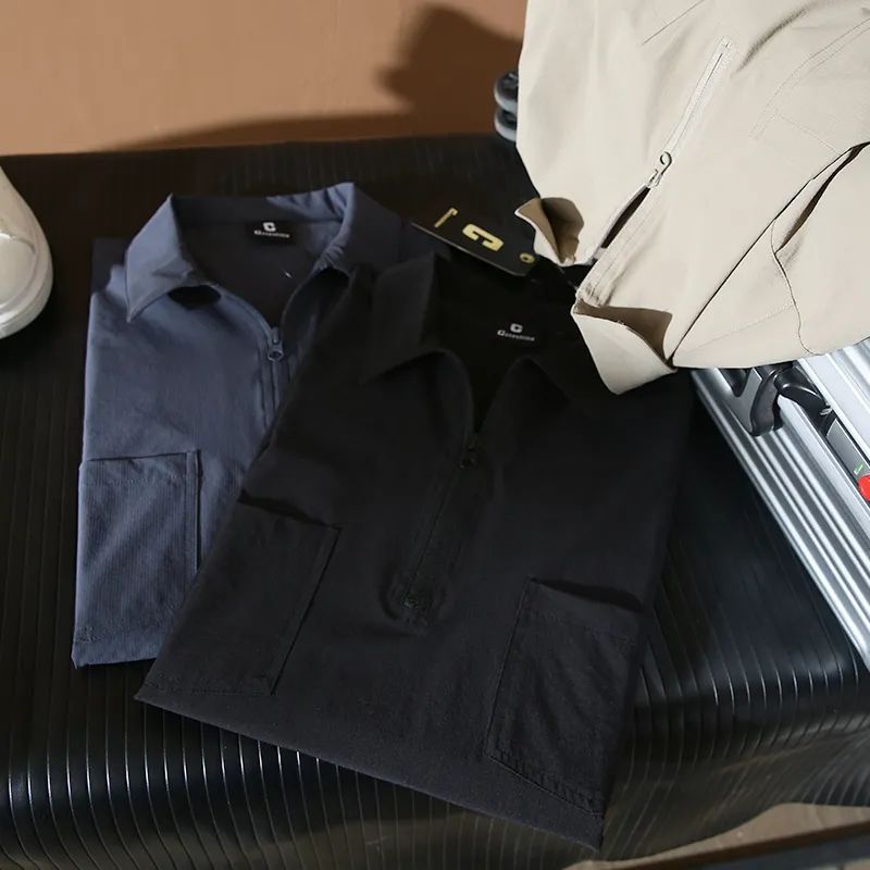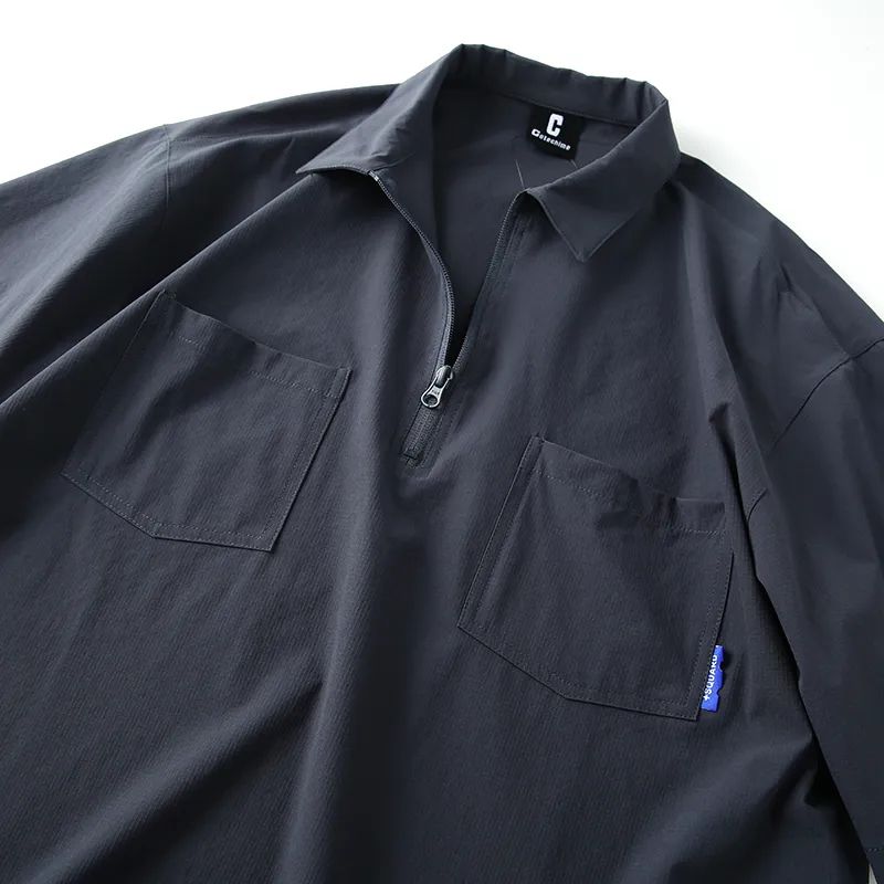 速干四面弹安格口袋半拉链翻领宽松短袖