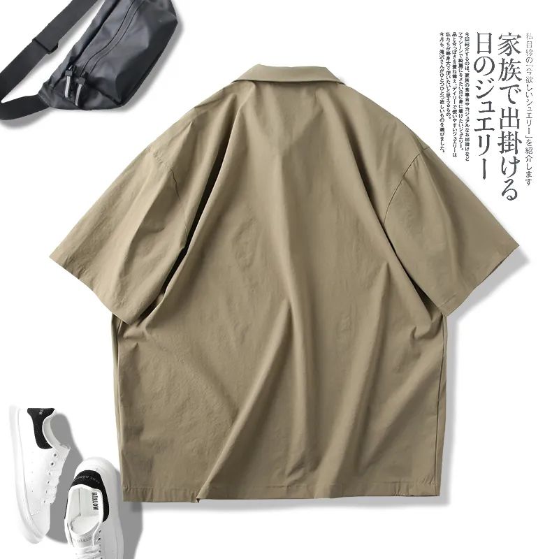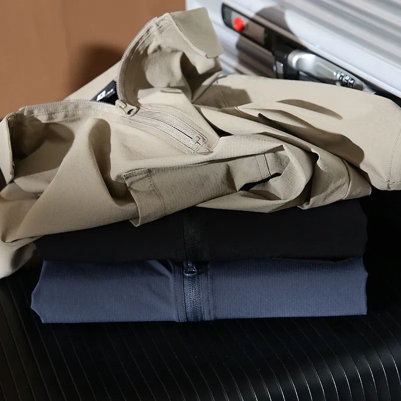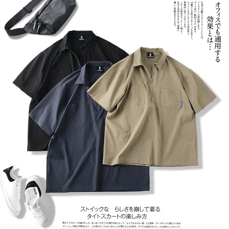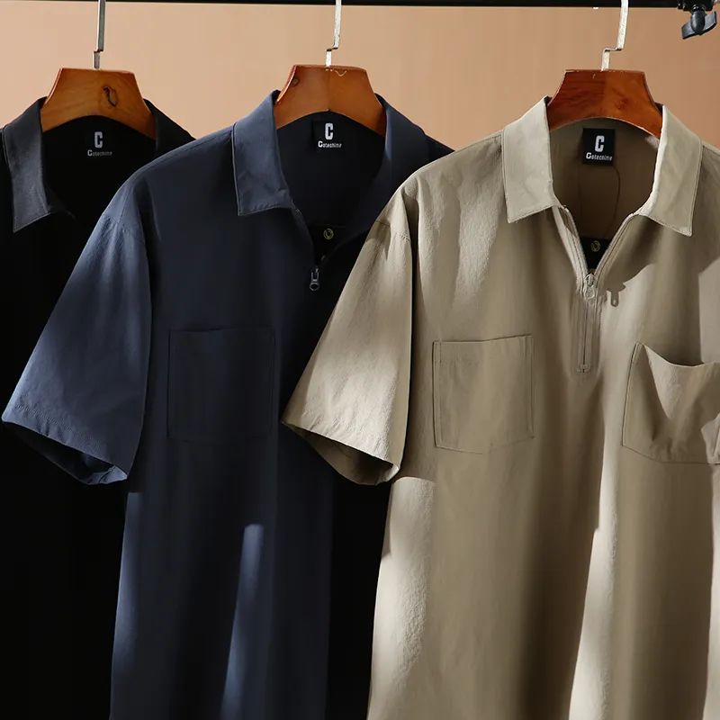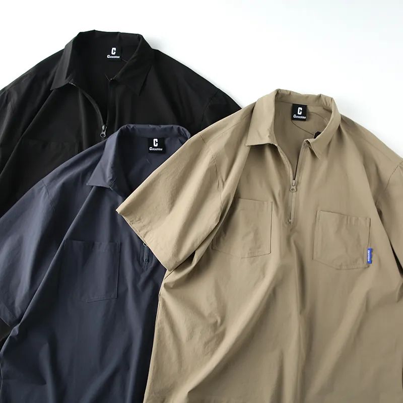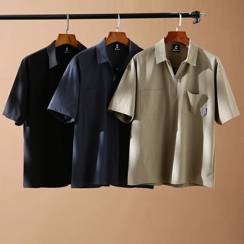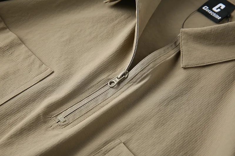 速干四面弹安格口袋半拉链翻领宽松短袖