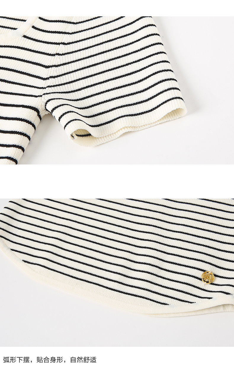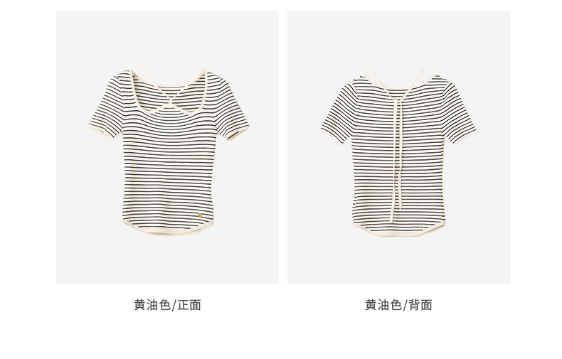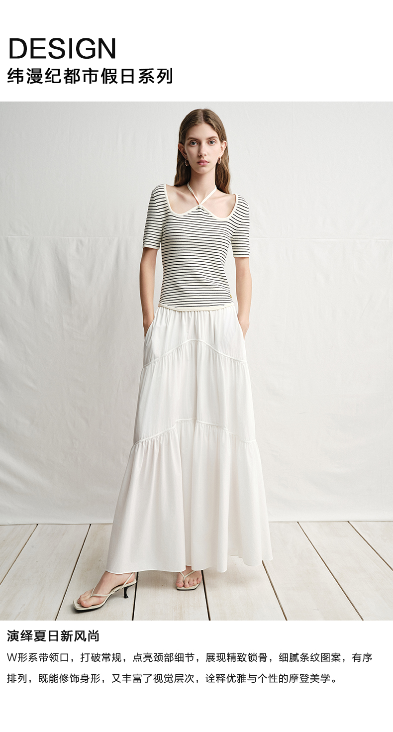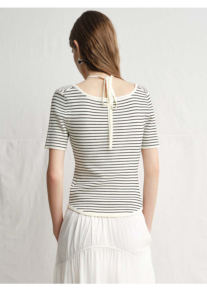 VIMAGE纬漫纪别致百搭系带修身条纹休闲短袖上衣女2025夏季新款V2301906