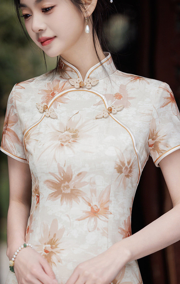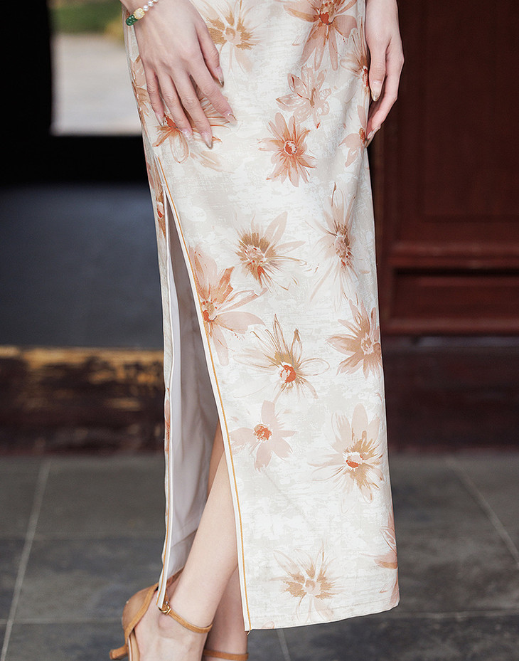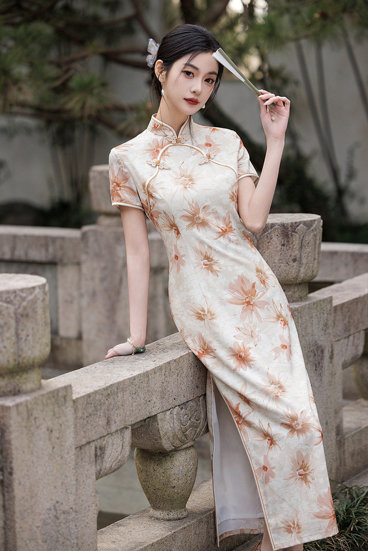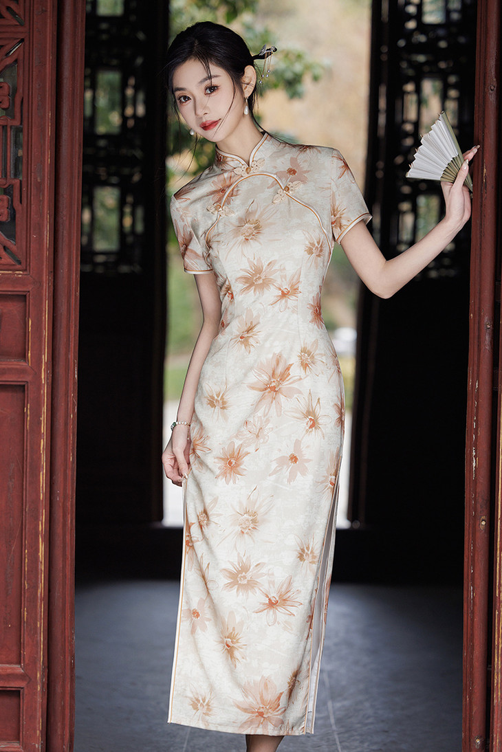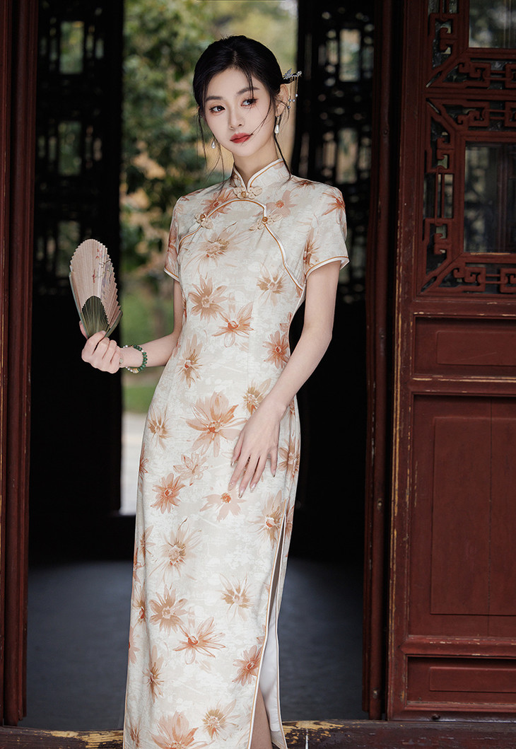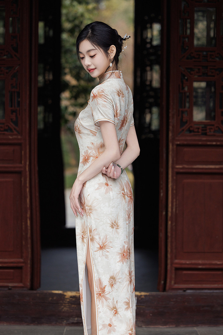 双层华尔缎长款旗袍,修身显瘦日常旗袍LJX-8146