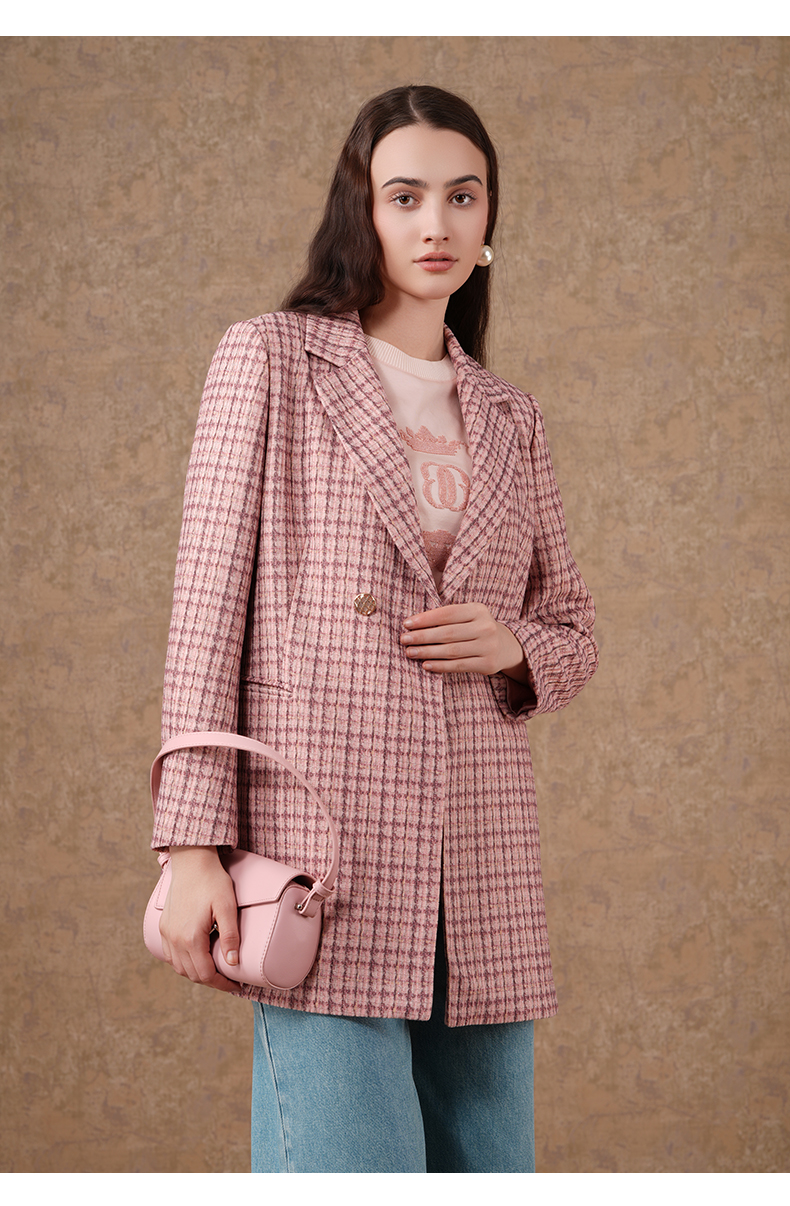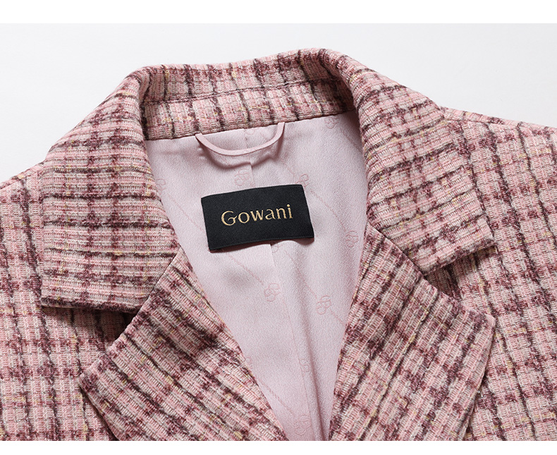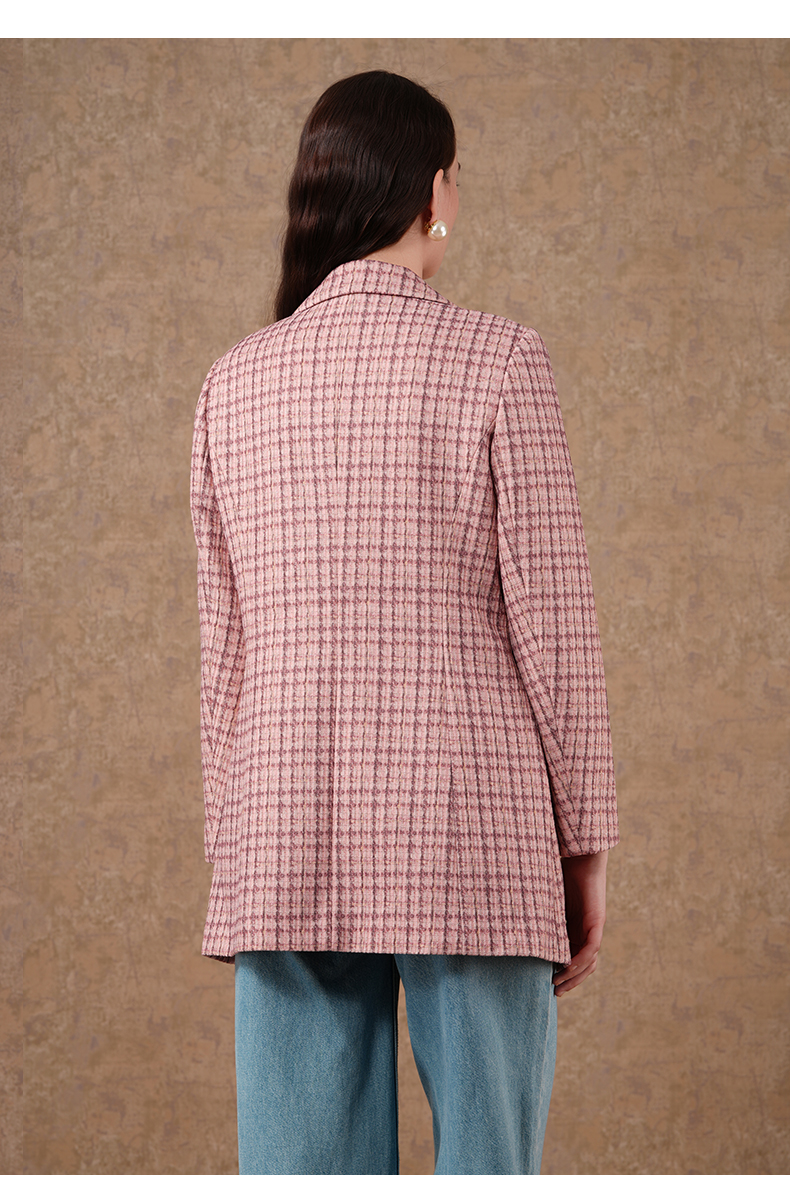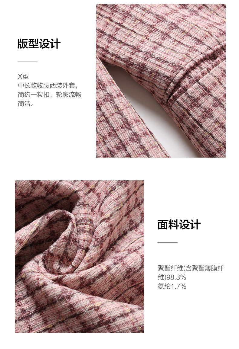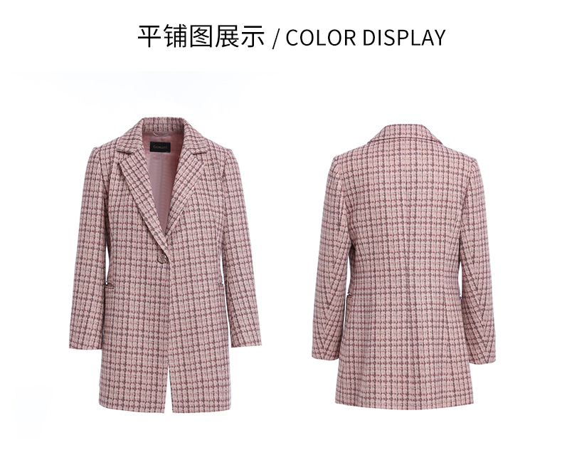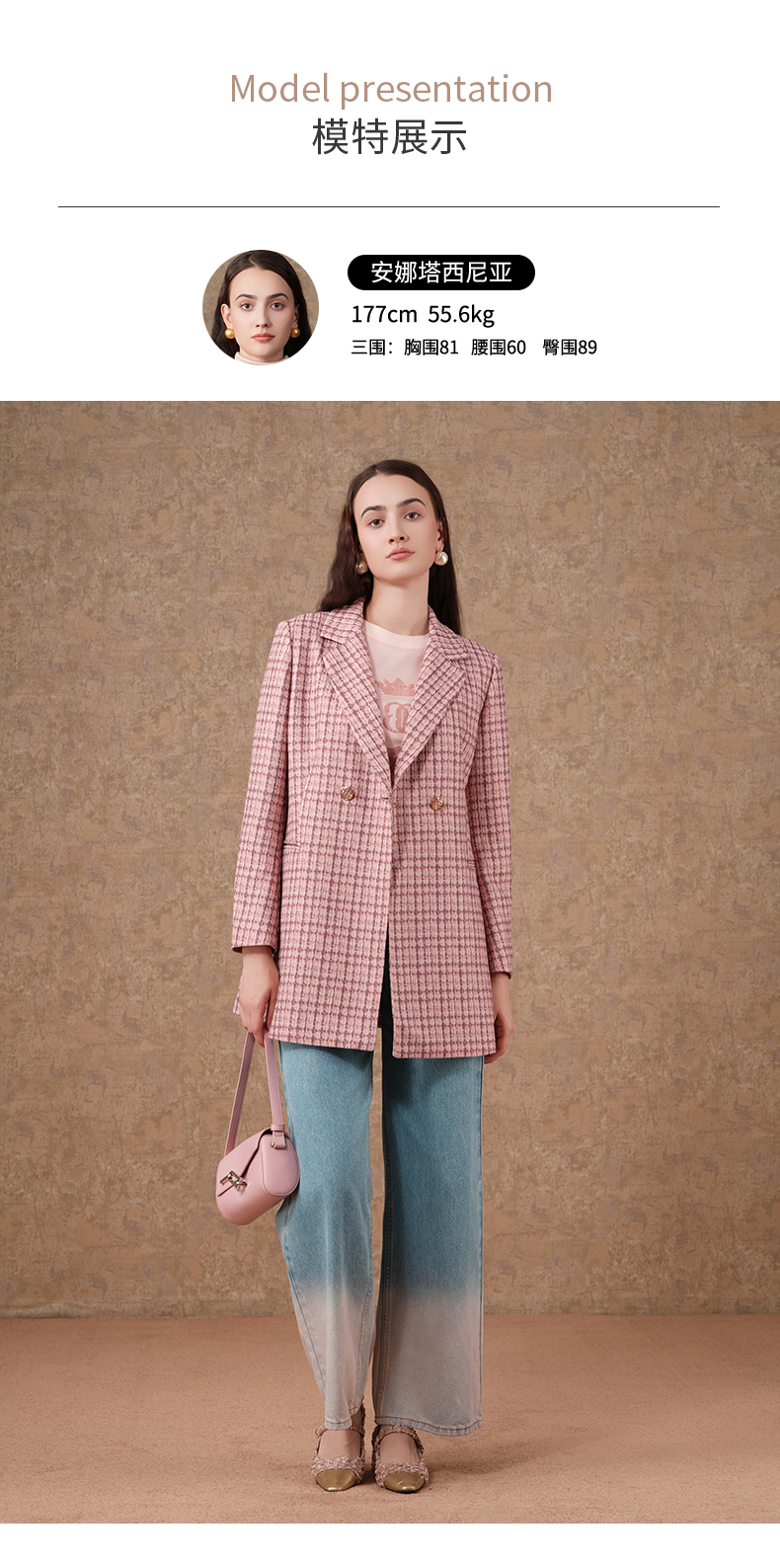 乔万尼秋新品中长款条纹格小香风西装外套ET3B610