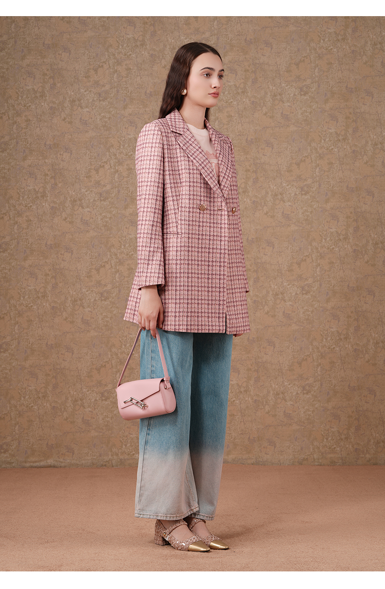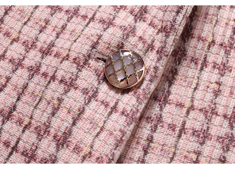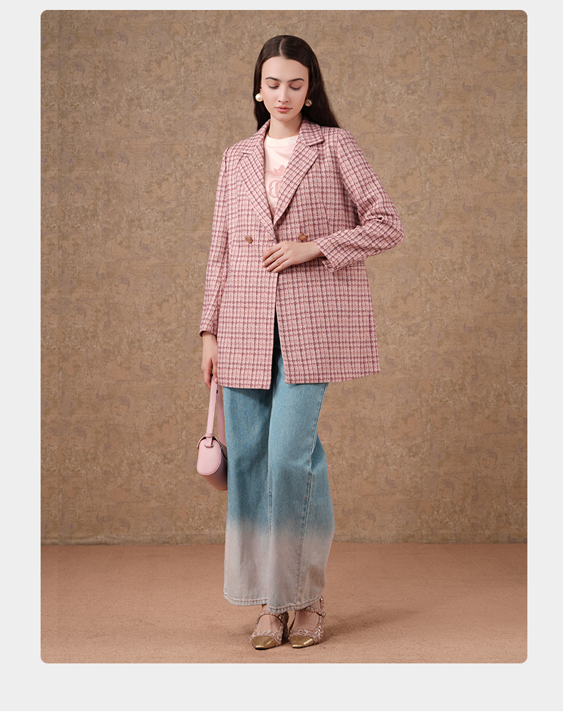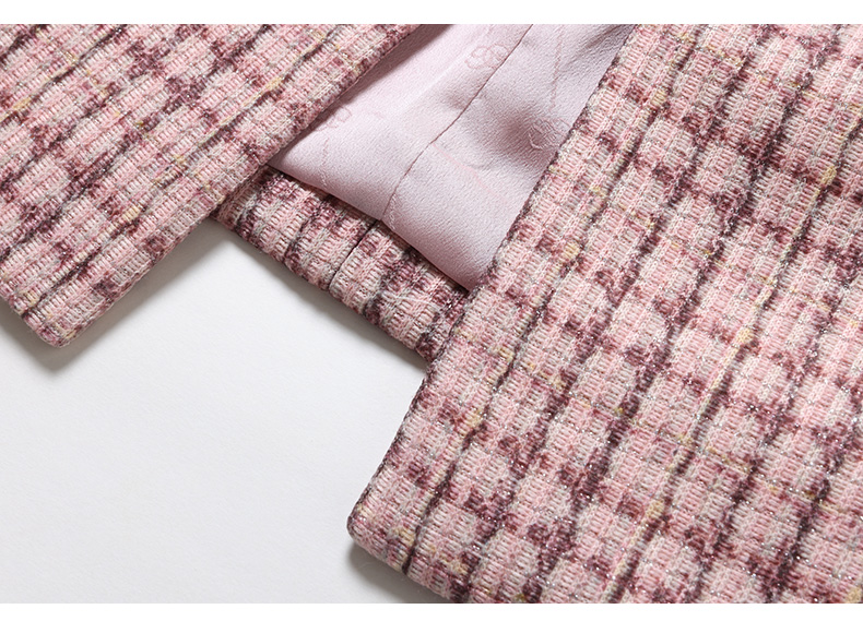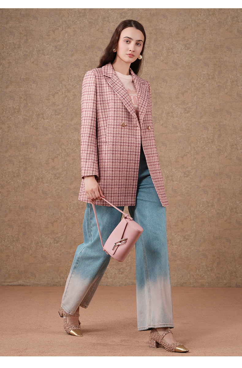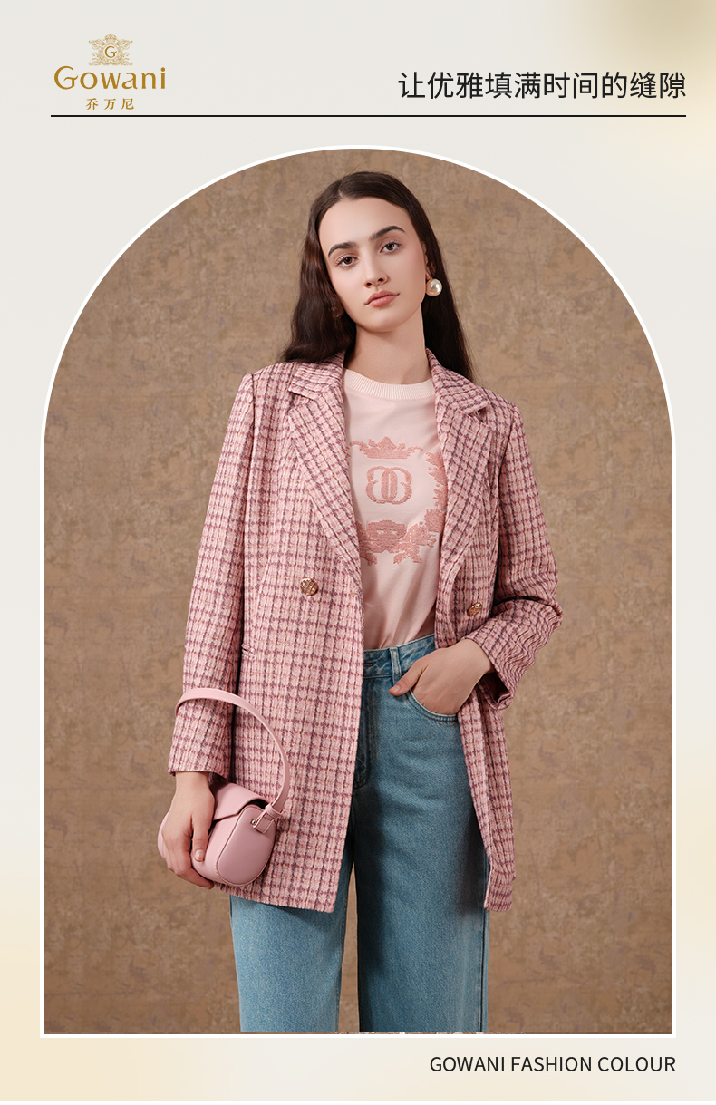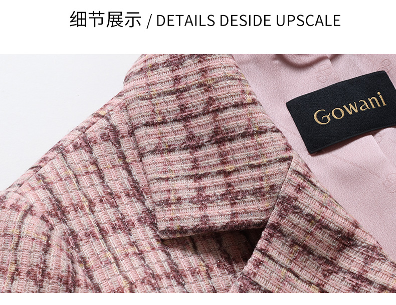 乔万尼秋新品中长款条纹格小香风西装外套ET3B610
