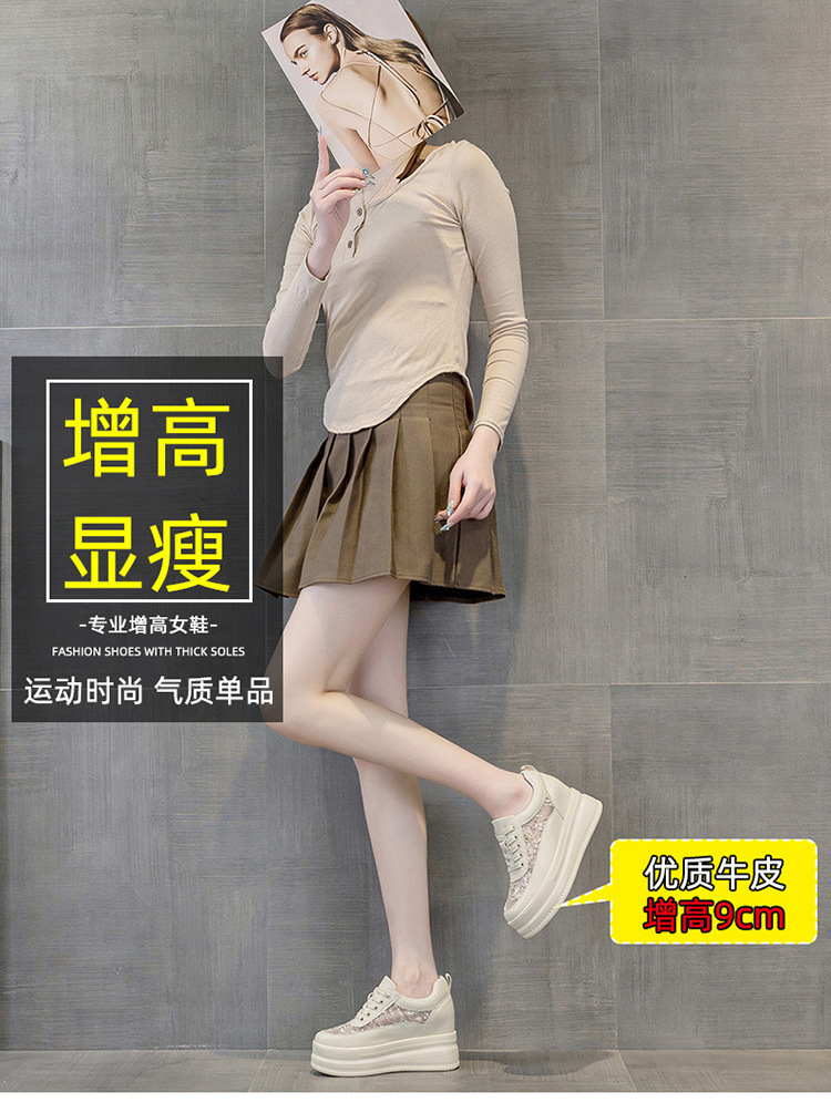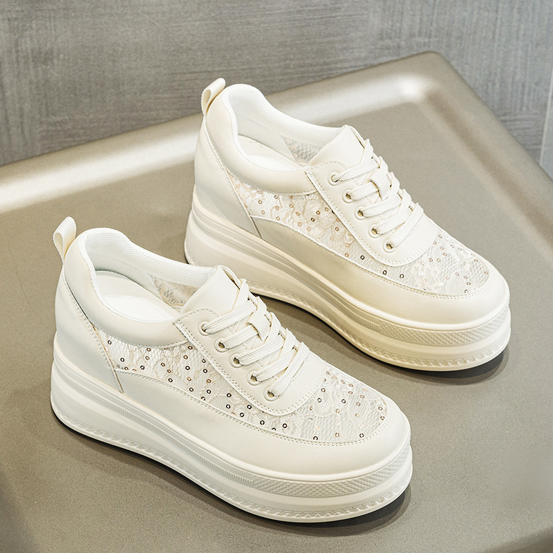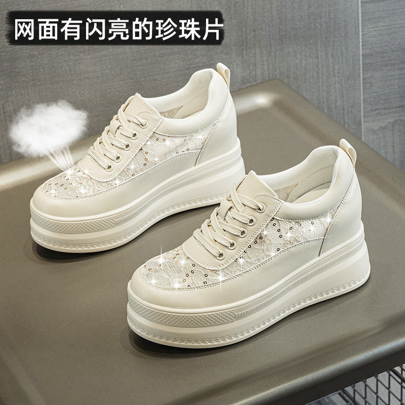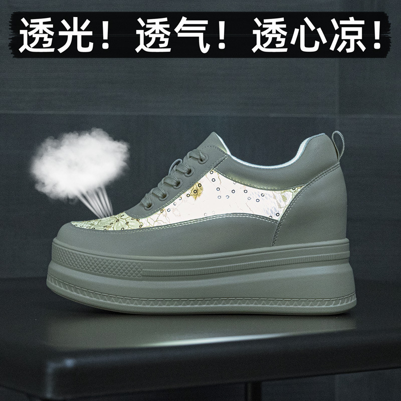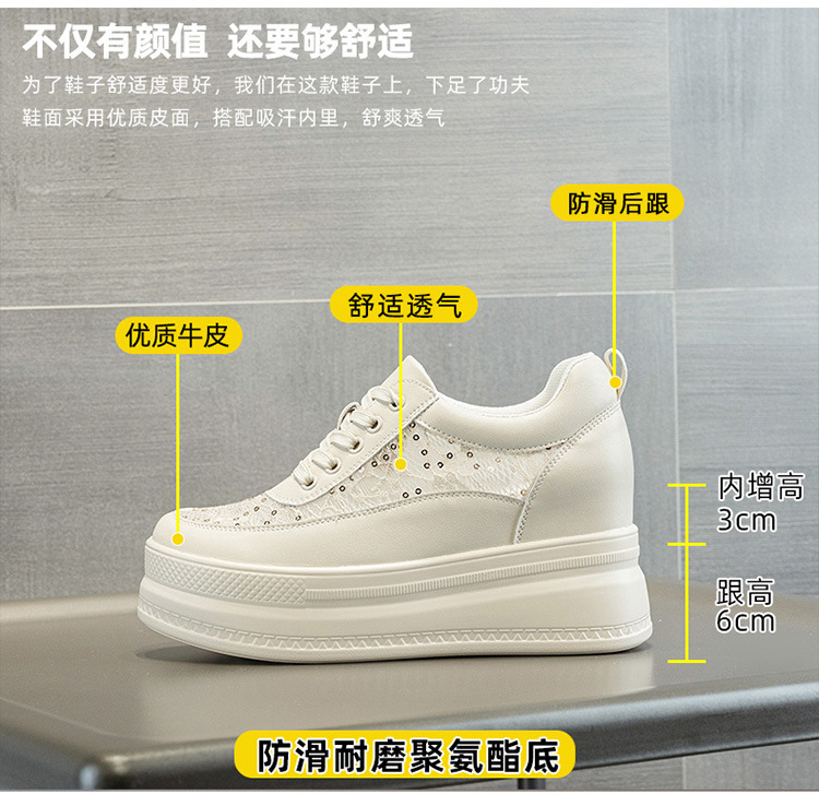 春夏女鞋新款内增高小白鞋女高跟透气网面厚底松糕底单鞋网鞋板鞋1310