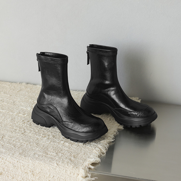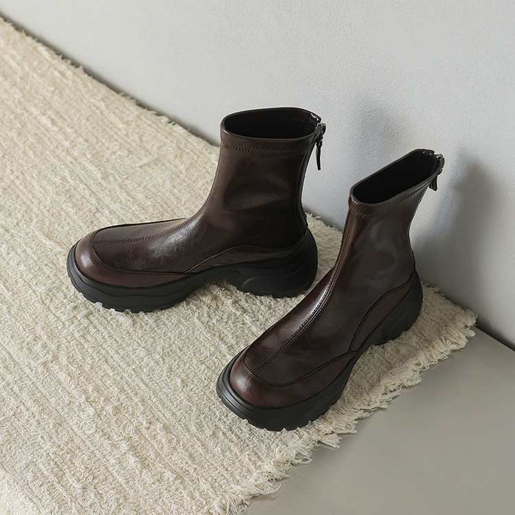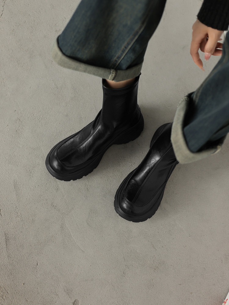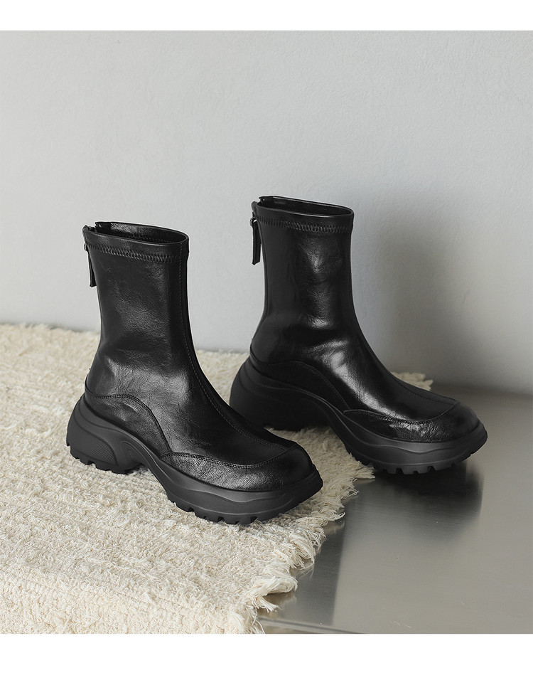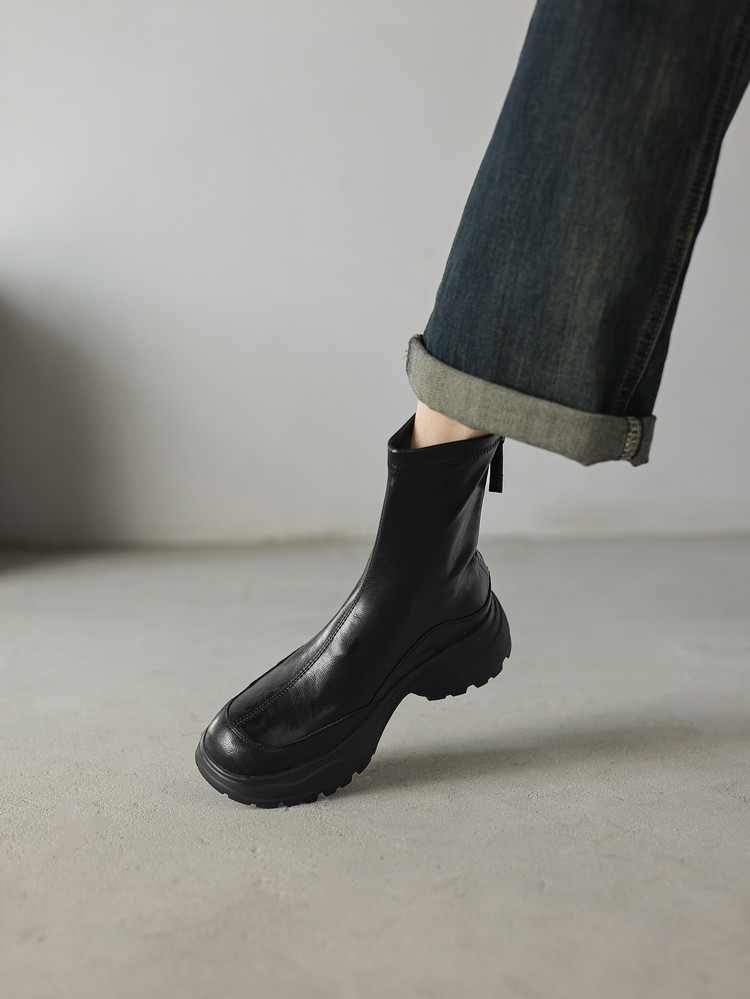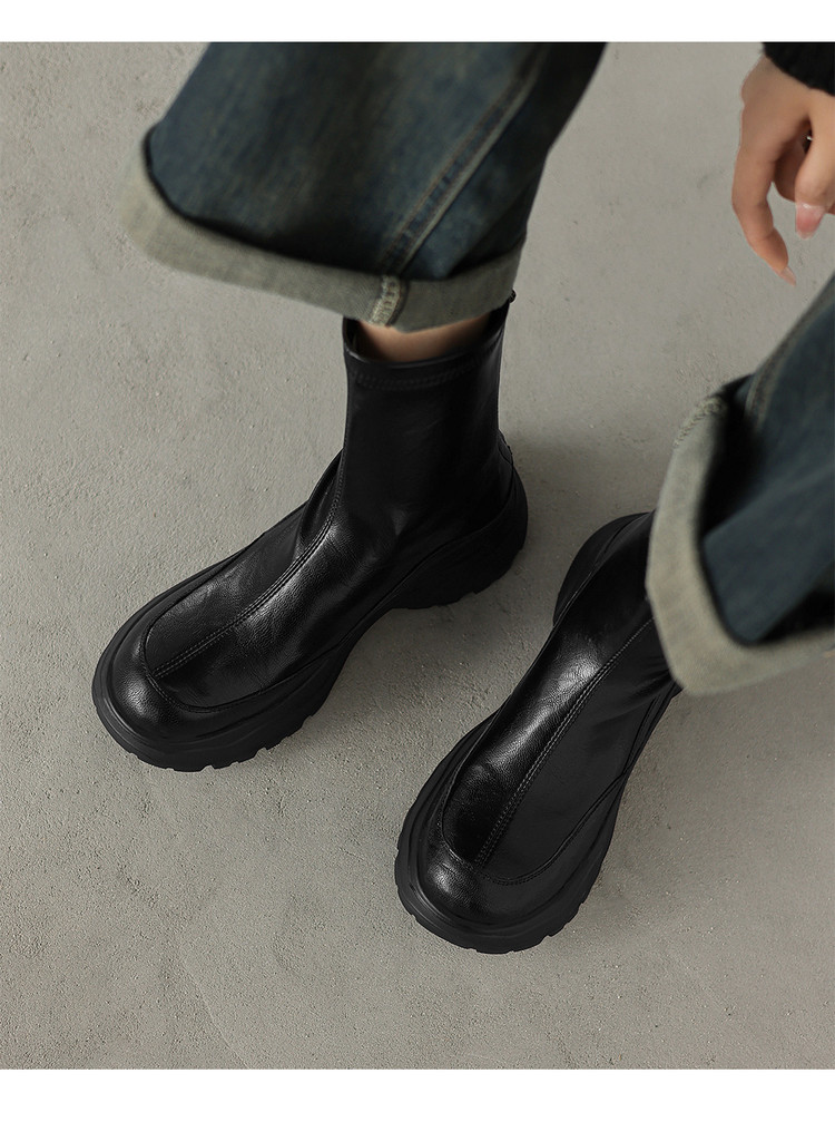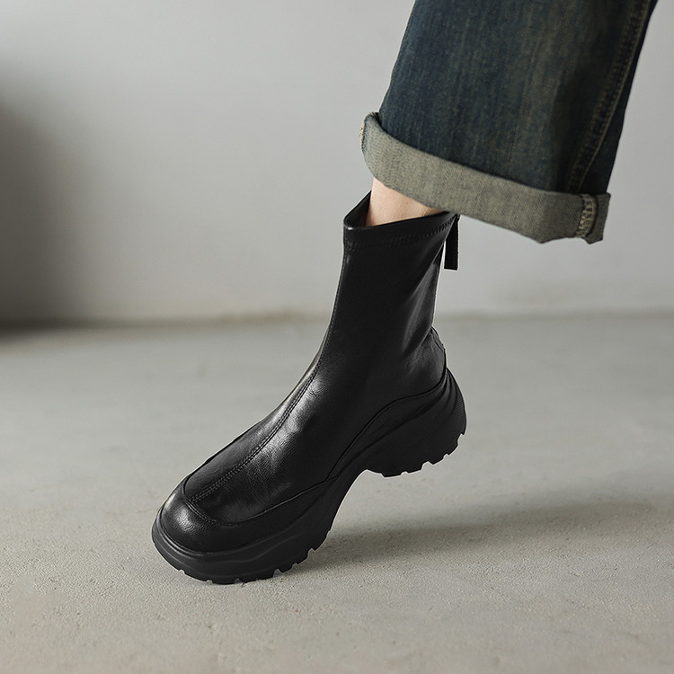 【预售5天】暴走不累舒适运动底瘦瘦靴洋气百搭厚底中跟圆头弹力短靴女DYJ&CX6012