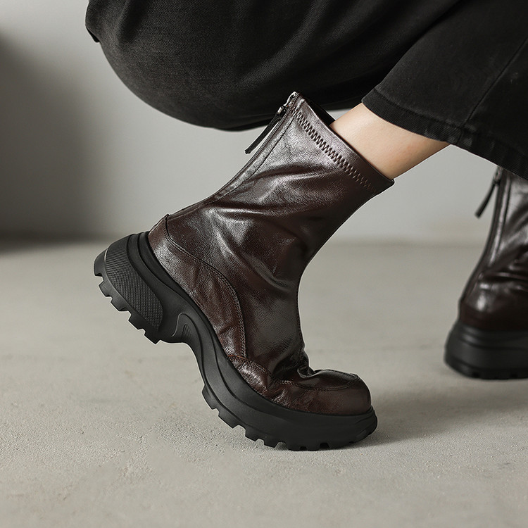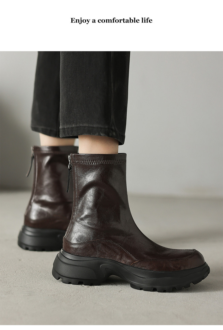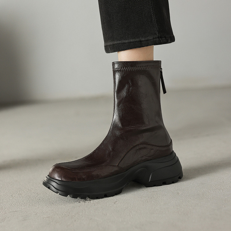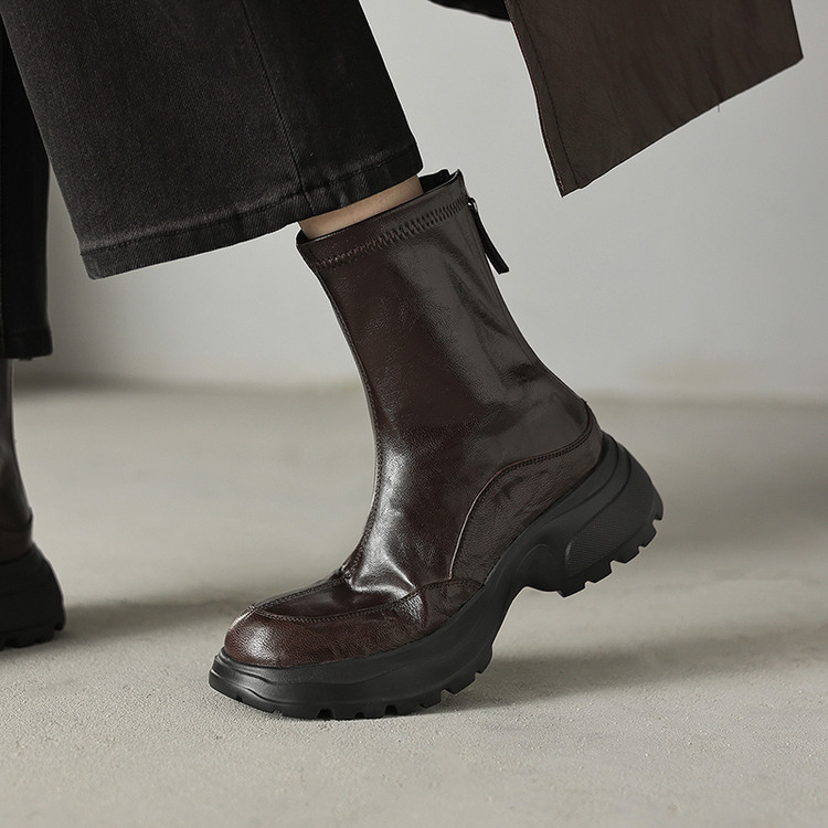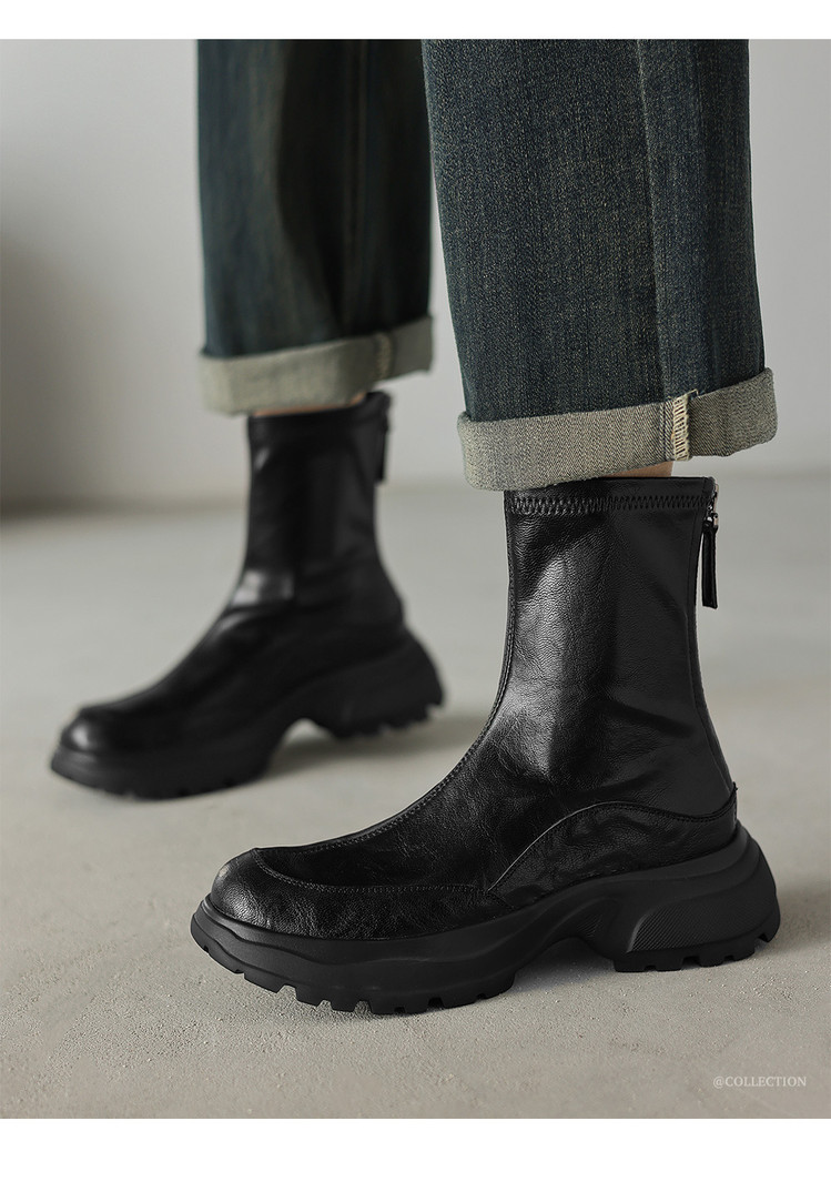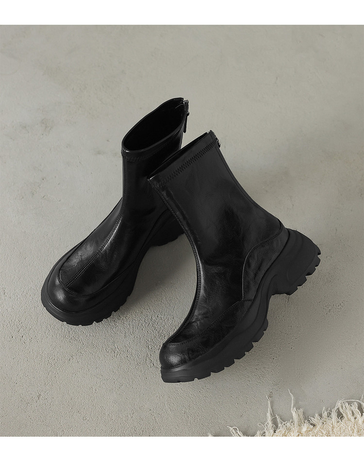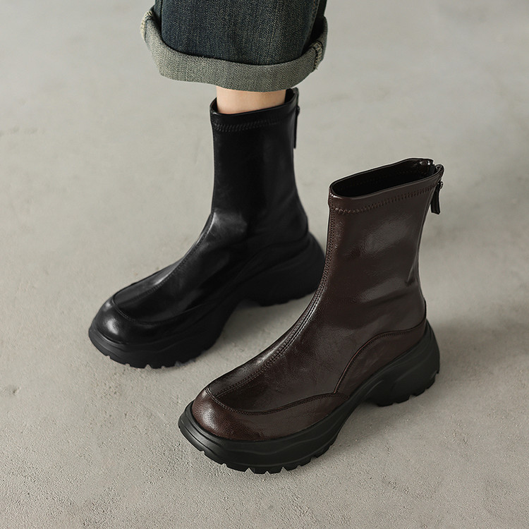 【预售5天】暴走不累舒适运动底瘦瘦靴洋气百搭厚底中跟圆头弹力短靴女DYJ&CX6012