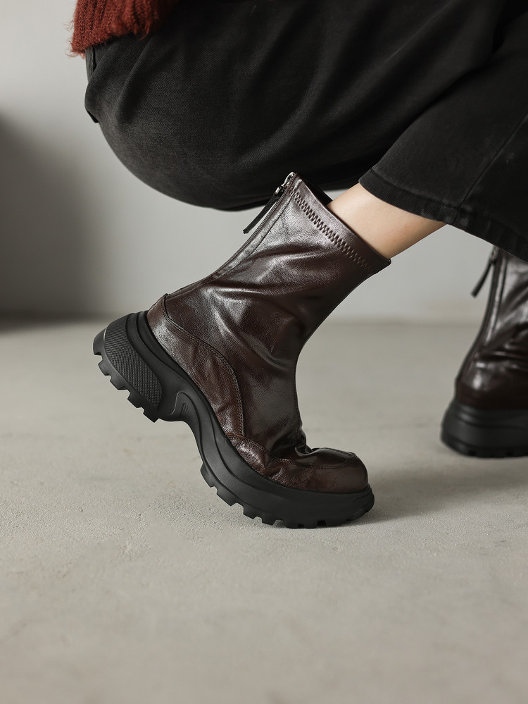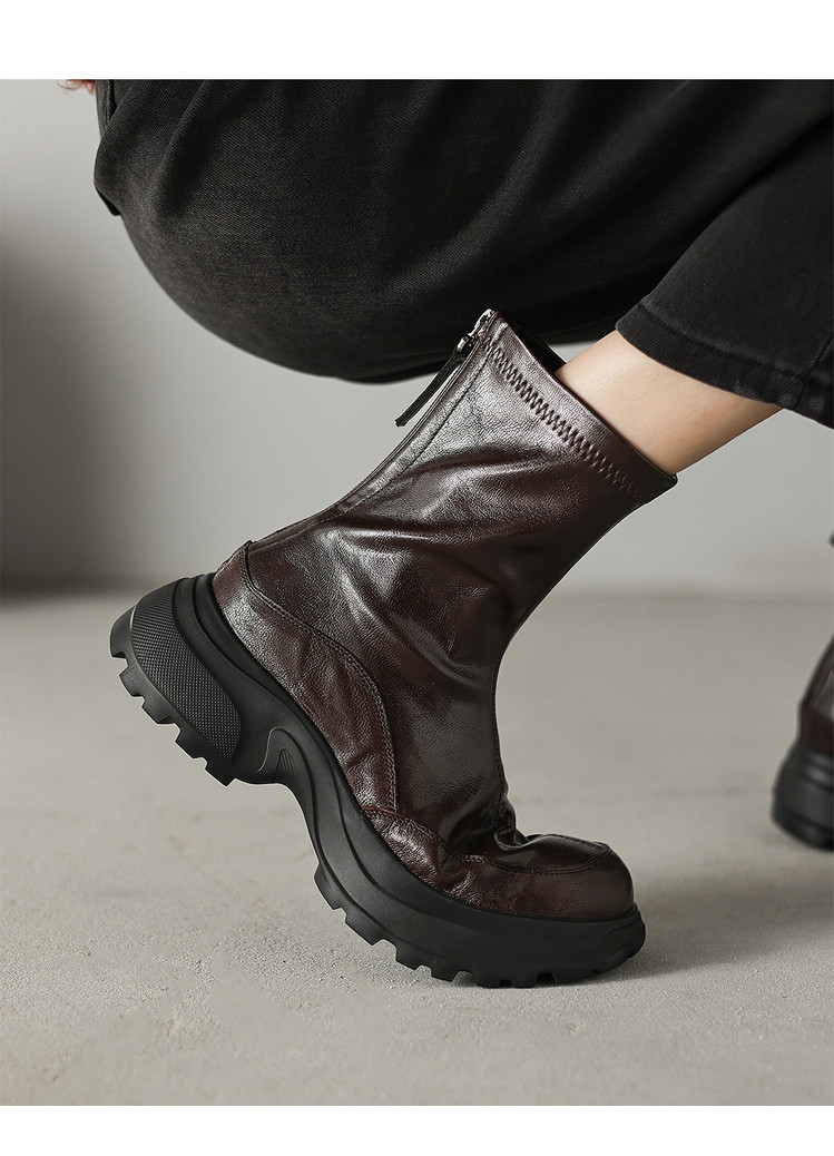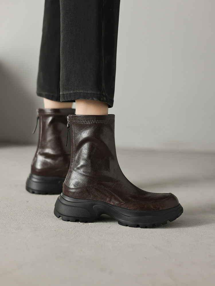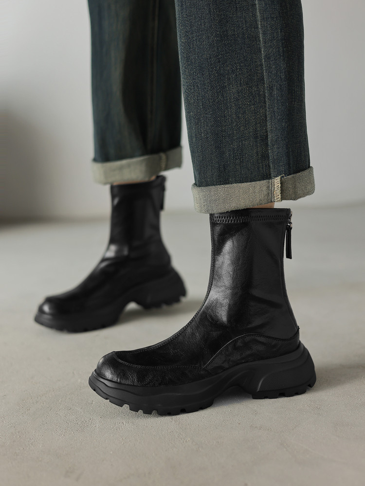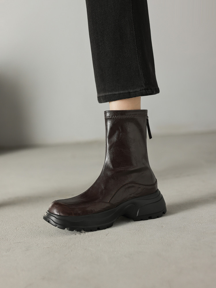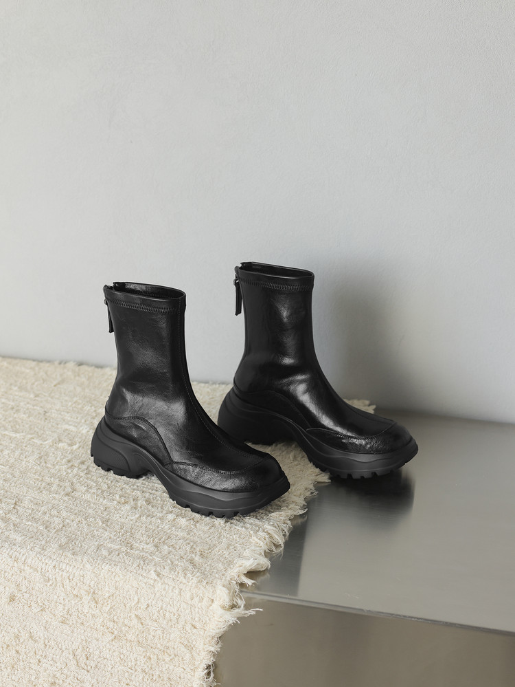 【预售5天】暴走不累舒适运动底瘦瘦靴洋气百搭厚底中跟圆头弹力短靴女DYJ&CX6012