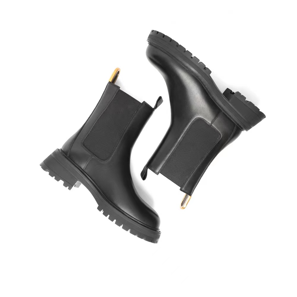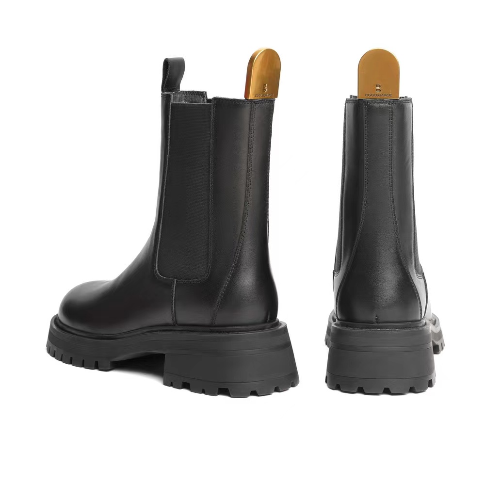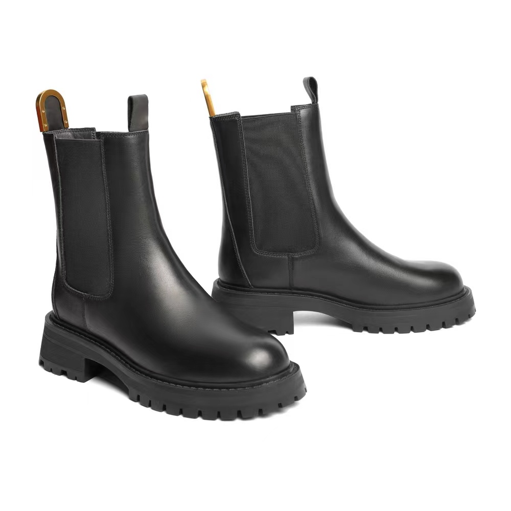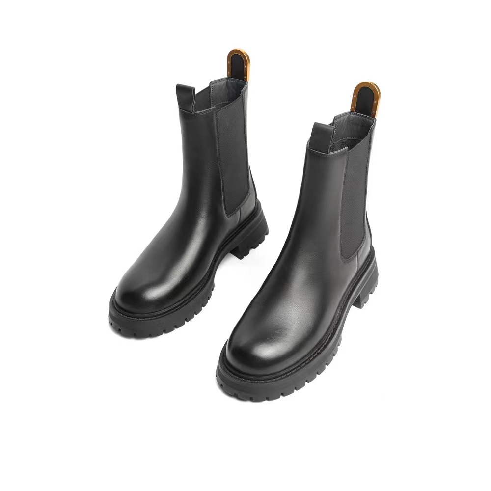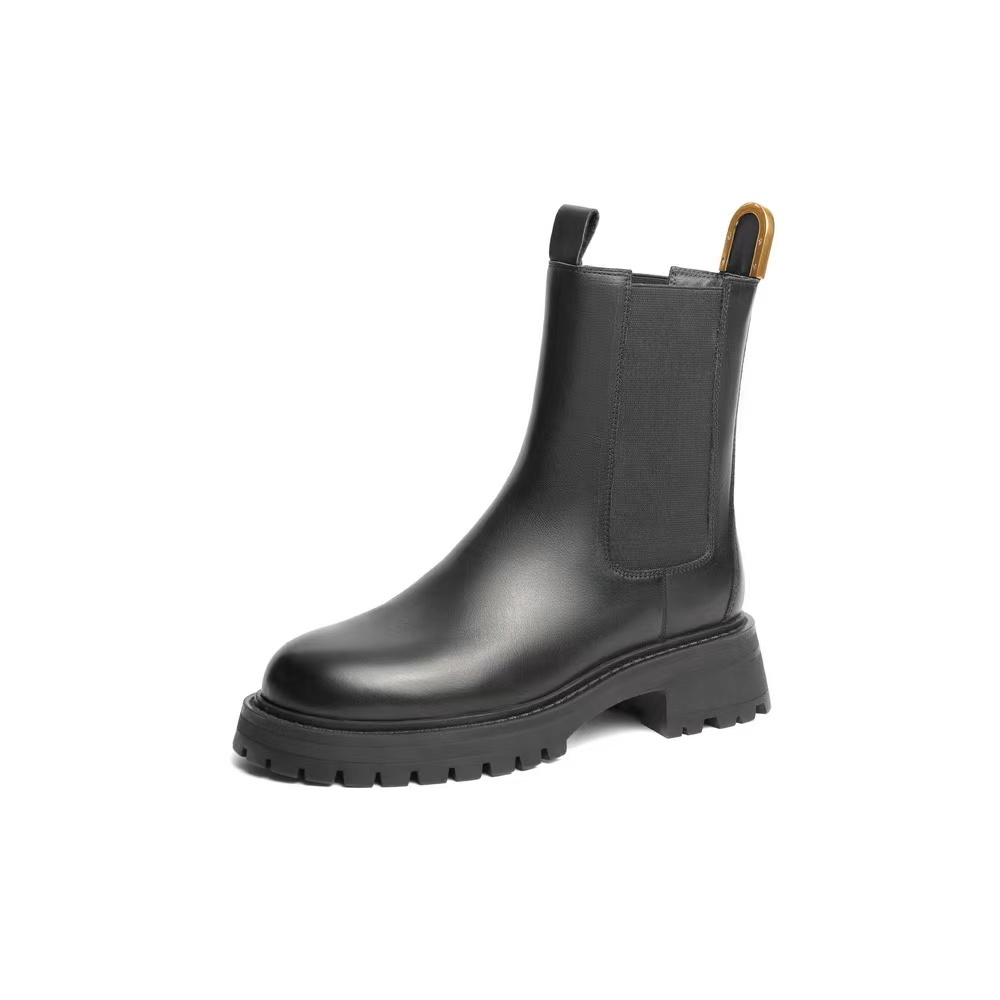烟筒切尔西靴 ,质感皮革 自然光泽柔软亲肤,品质出众,后侧金属扣装饰 打破单调,松紧带设计 穿脱方便
