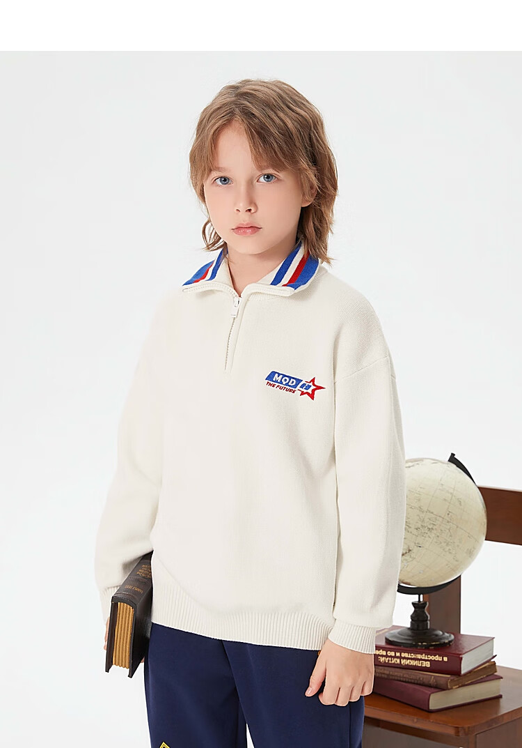 【MQD】童装男大童冬新款学院风休闲翻领毛衣