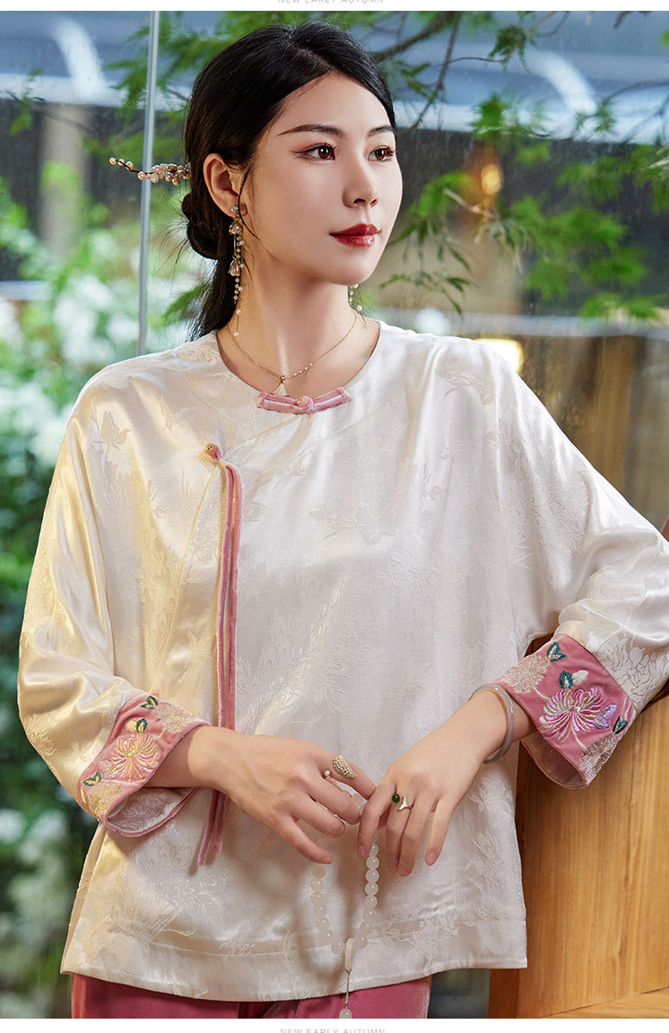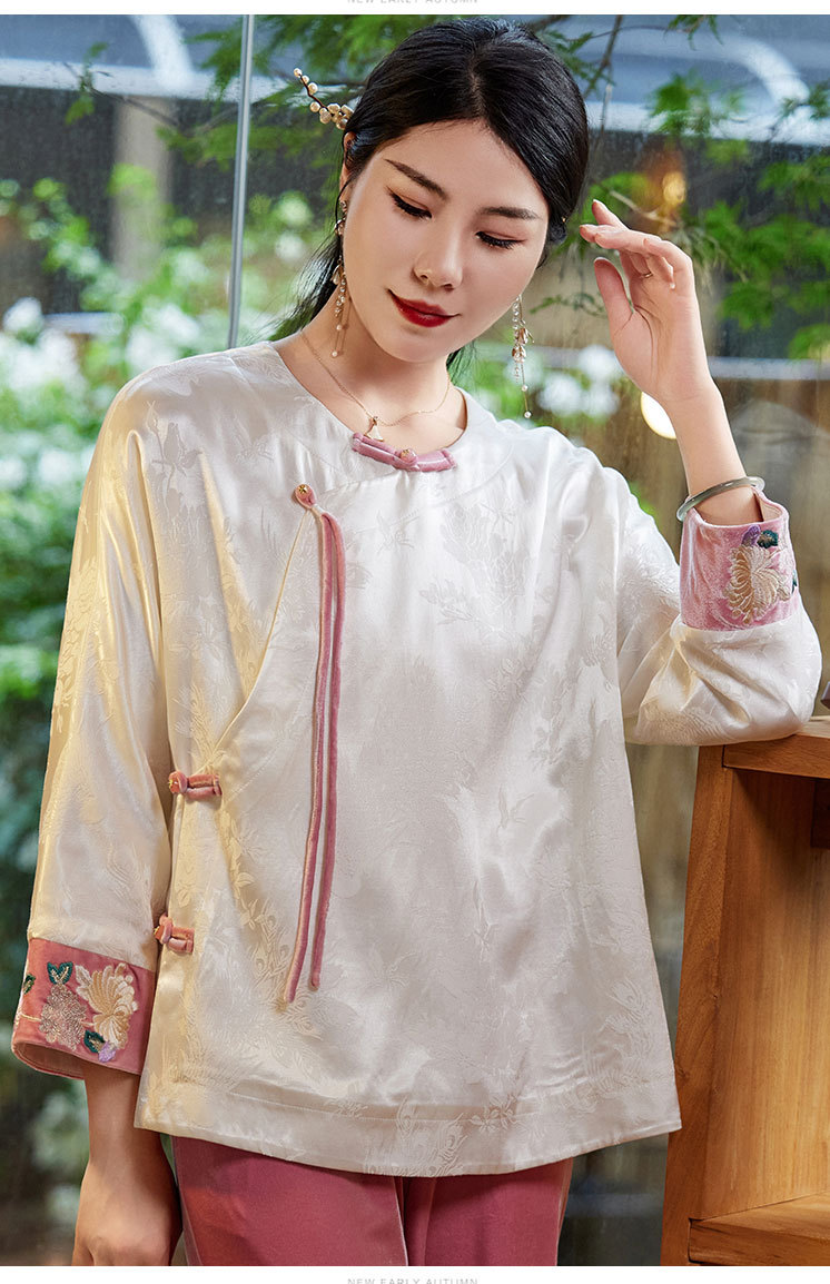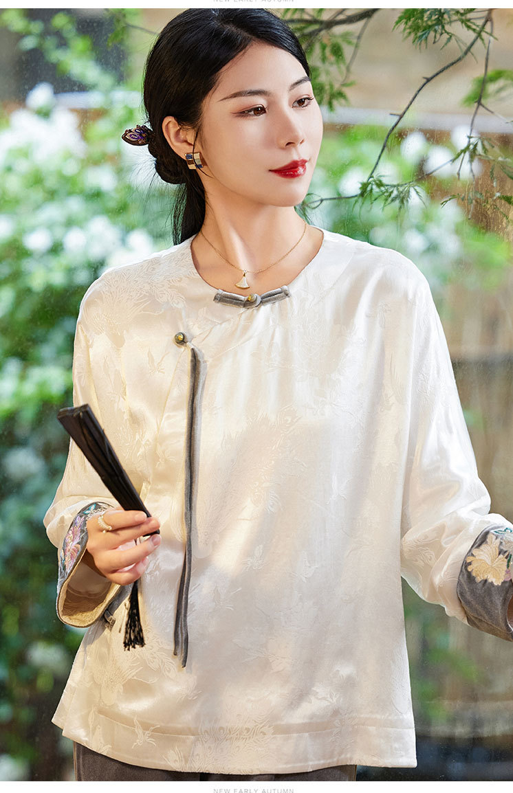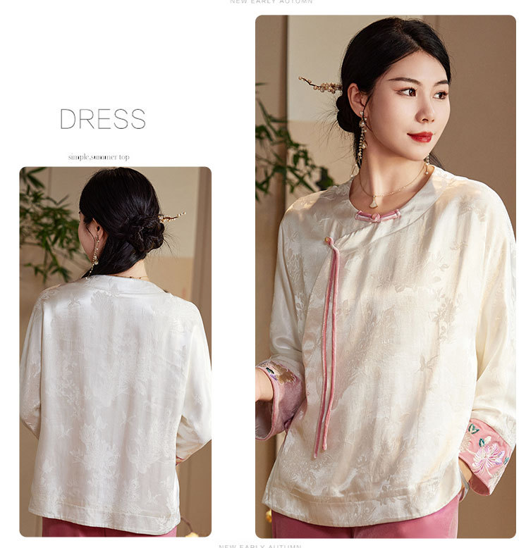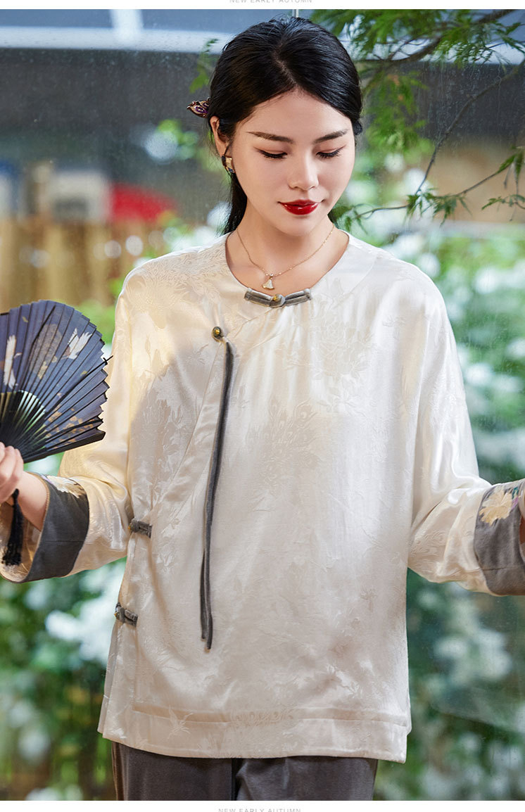 新中式国风复古盘扣,改良唐装汉服流苏衬衫OG-9498
